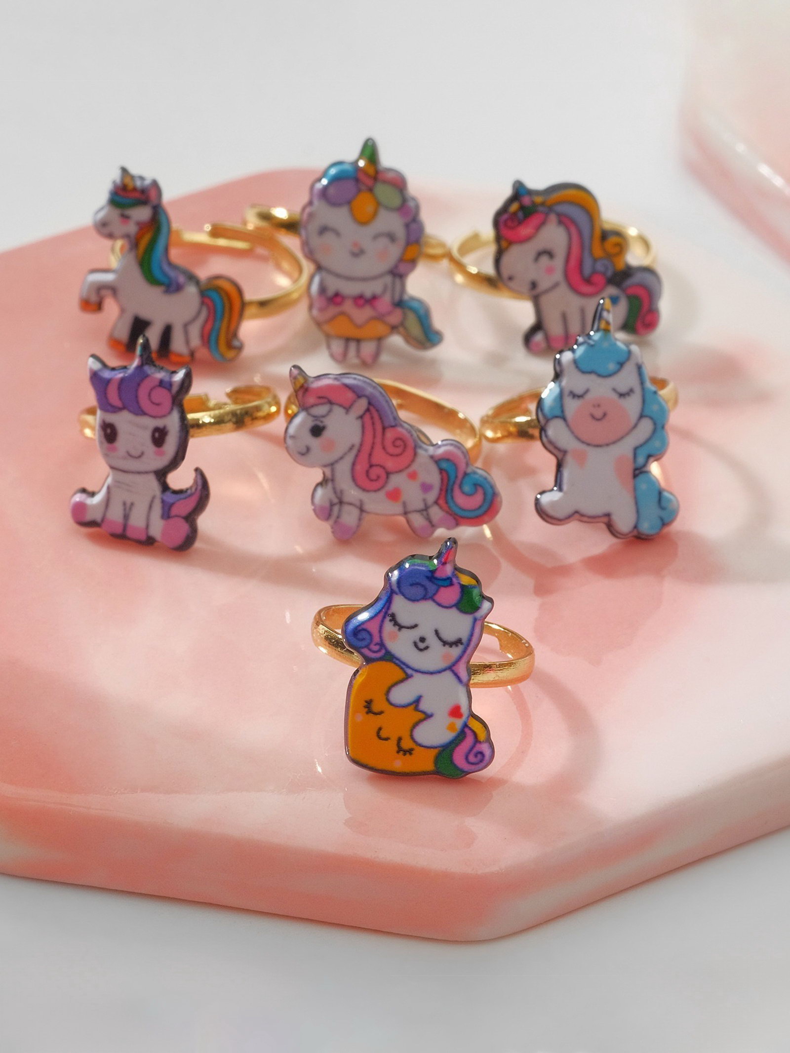 Кольцо "Единороги", форма МИКС, разноцветное, безразмерное, 1.5x1.5x1.5 см., Выбражулька, Китай