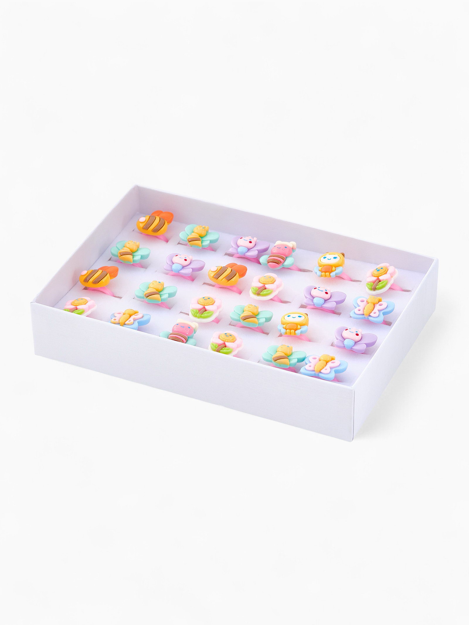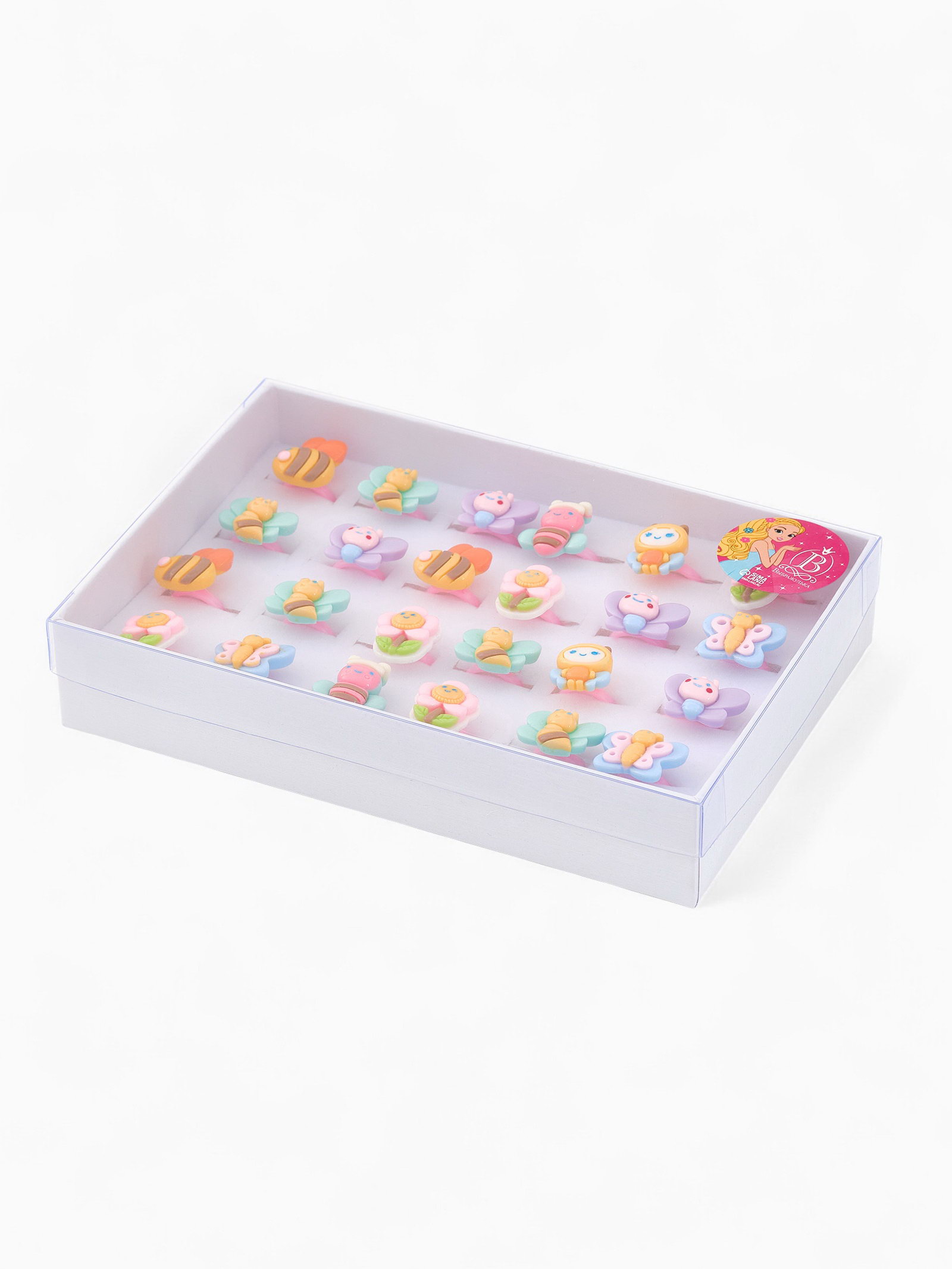 Размер упаковки: 2 x 2.5 x 2.5 см. tnved: 7117900000 Материал основания: Пластик Цвет: МИКС Вставка/Подвеска: Пластик Для кого: Для девочки Набор: Да Любовь к природе и животным проявляется в каждом ребёнке. Именно поэтому особое удовольствие доставляют аксессуары, вдохновленные миром живой природы. Предлагаем вашему вниманию детскую серию колец "Выбражулька", выполненную в форме пчелок. Это стильный и интересный аксессуар, который понравится любой девочке. Почему именно кольцо-пчелка?