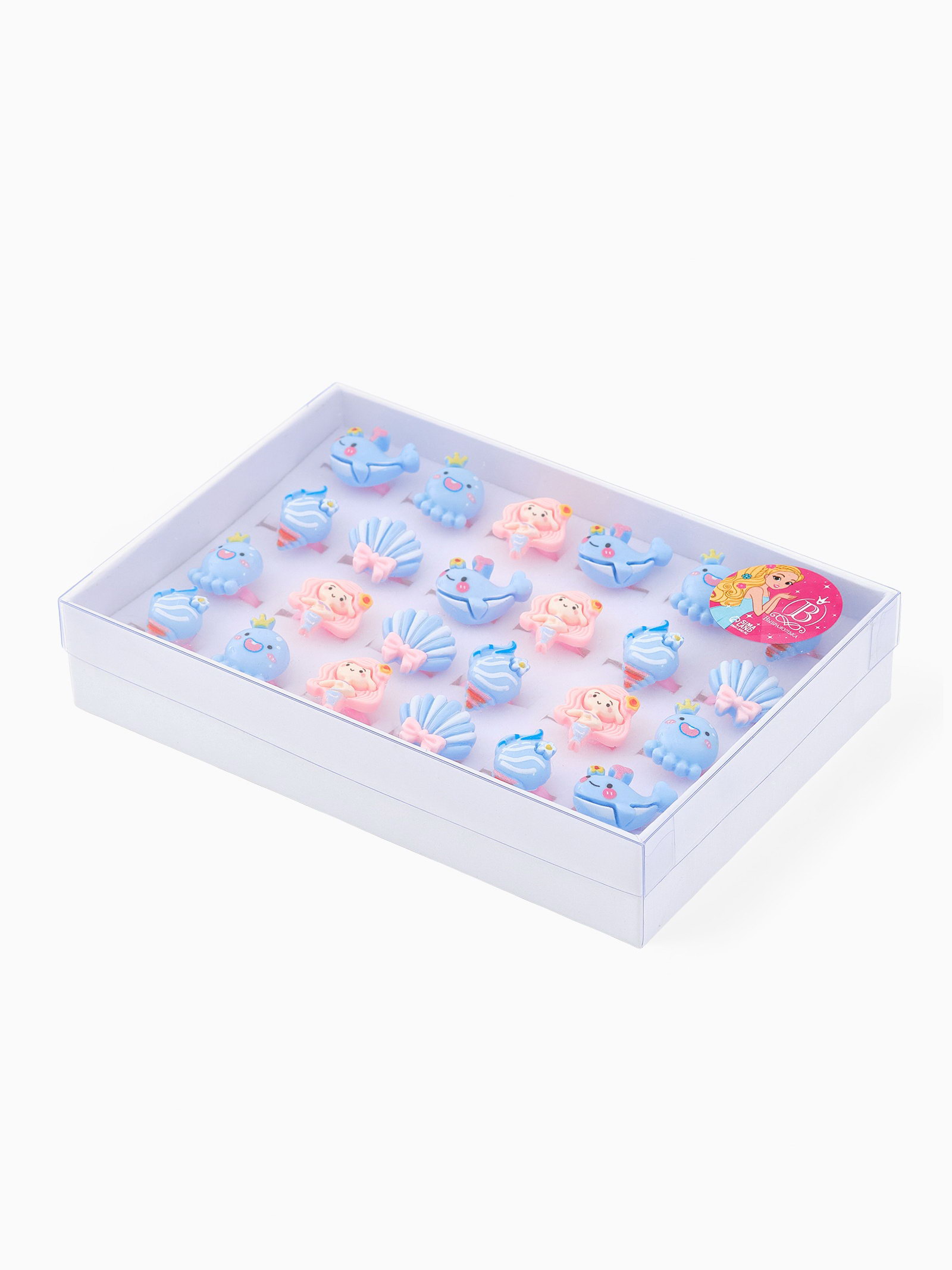 Размер упаковки: 2.1 x 2.5 x 2 см. tnved: 7117900000 Набор: Да Материал основания: Пластик Цвет: МИКС Вставка/Подвеска: Пластик Для кого: Для девочки Отправляйтесь в удивительное путешествие под воду с кольцом серии "Выбражулька", которое перенесет вас в мир русалок и океанских глубин. Обладая прекрасным дизайном и ярким исполнением, это кольцо станет идеальным компаньоном для каждой маленькой любительницы приключений и морской тематики. Его основные достоинства: