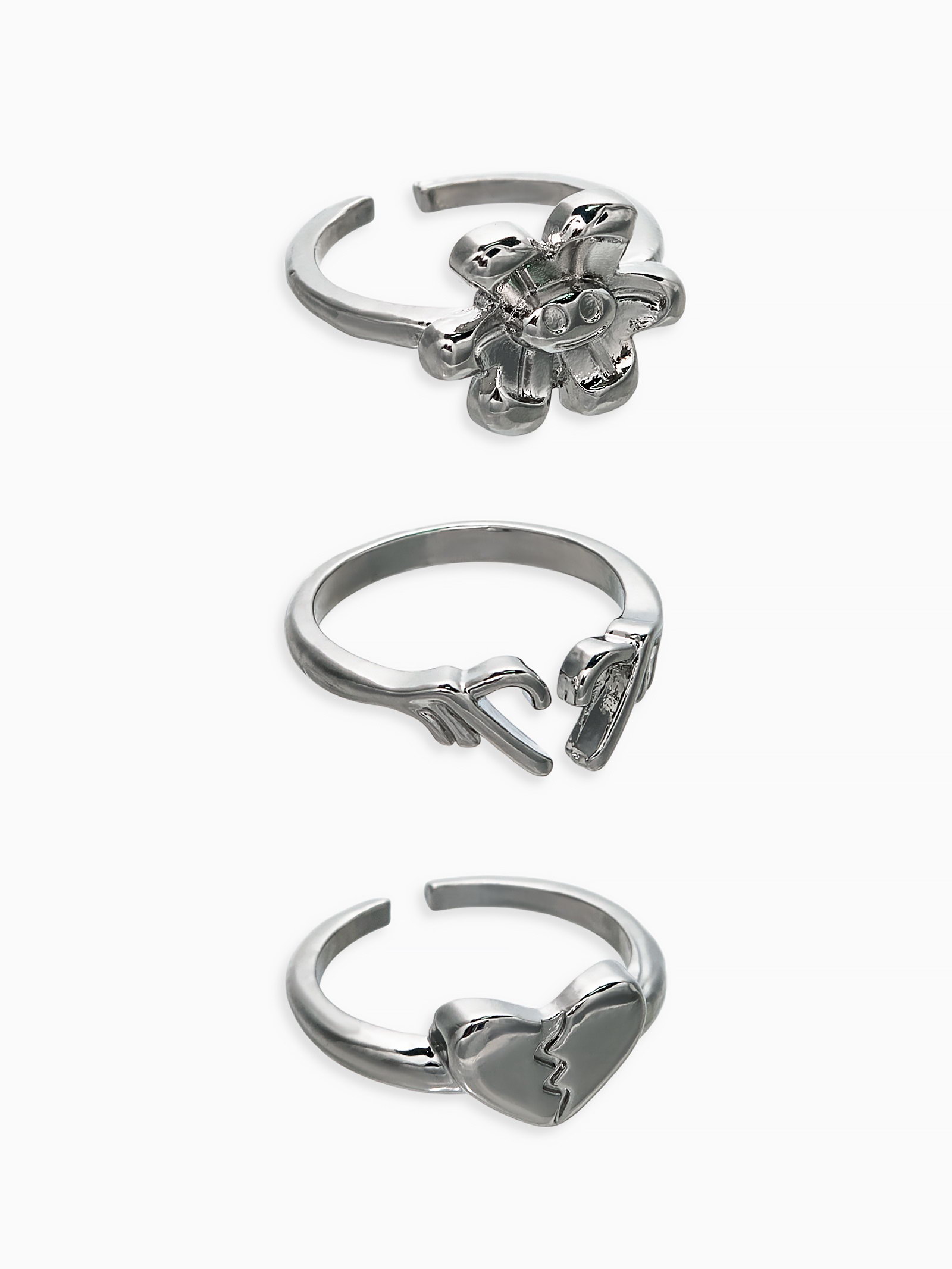 Кольцо детское "Выбражулька. Стиль", набор 3 шт. цвет серебро, 2x2x2 см., Выбражулька, Китай