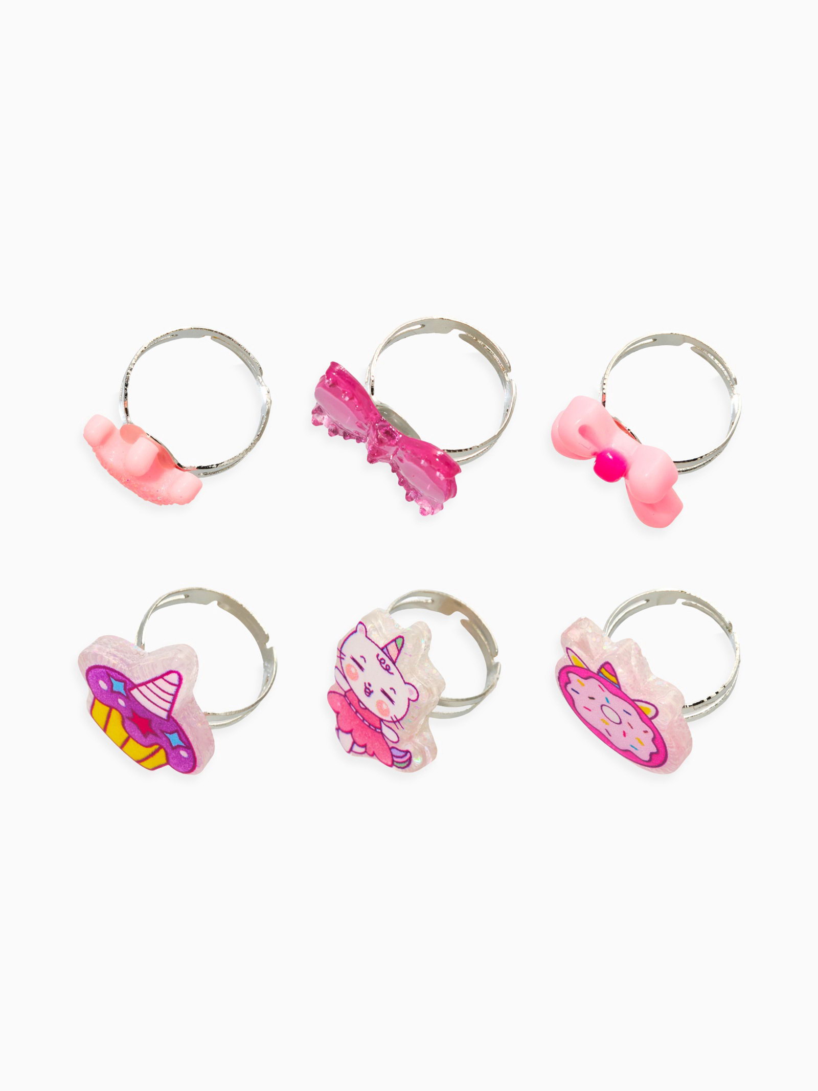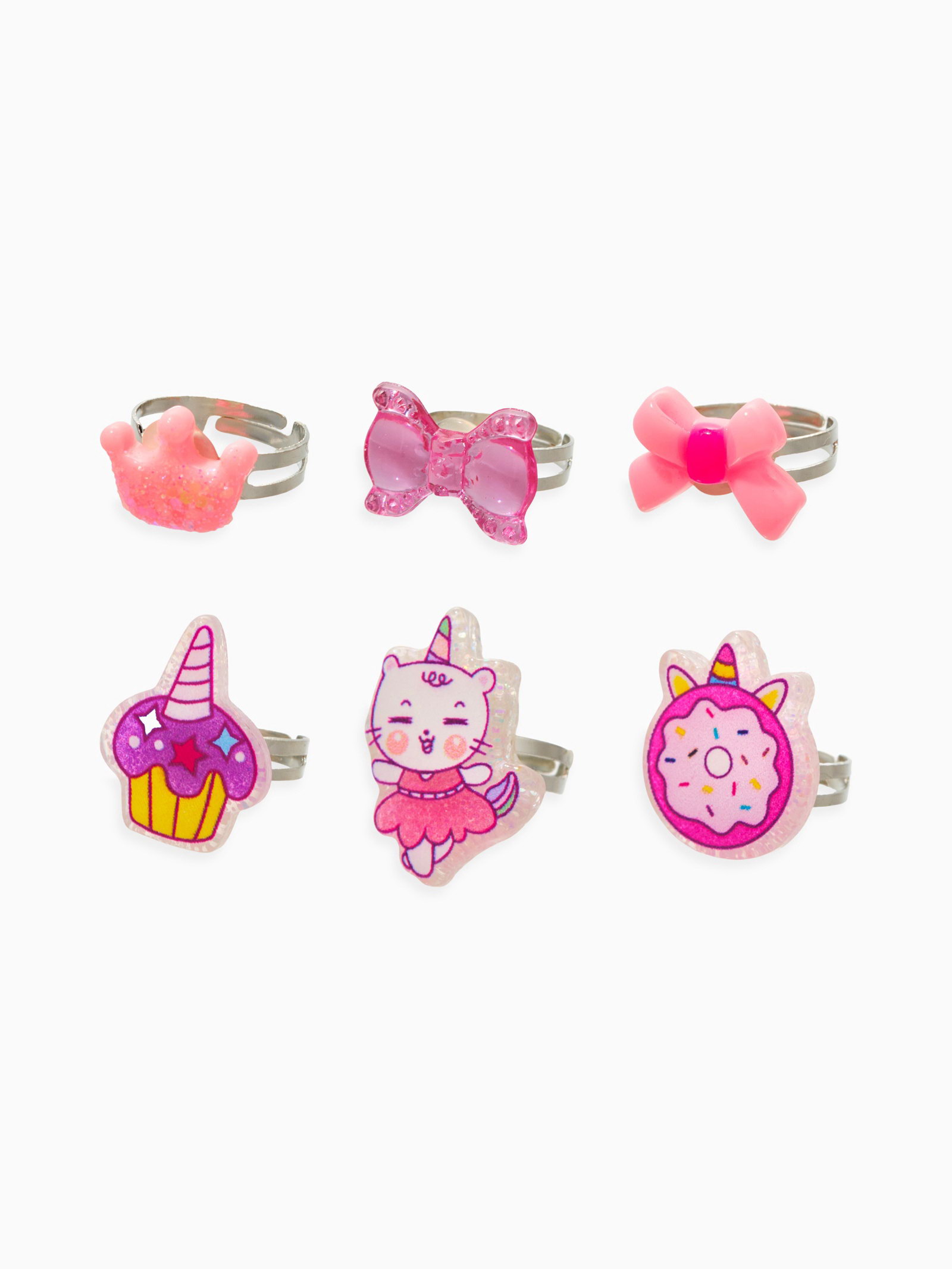 Кольца детские набор 6 шт. "Выбражулька. Котик, единорог", форма МИКС, розовый, безразмерное, Выбражулька, Китай