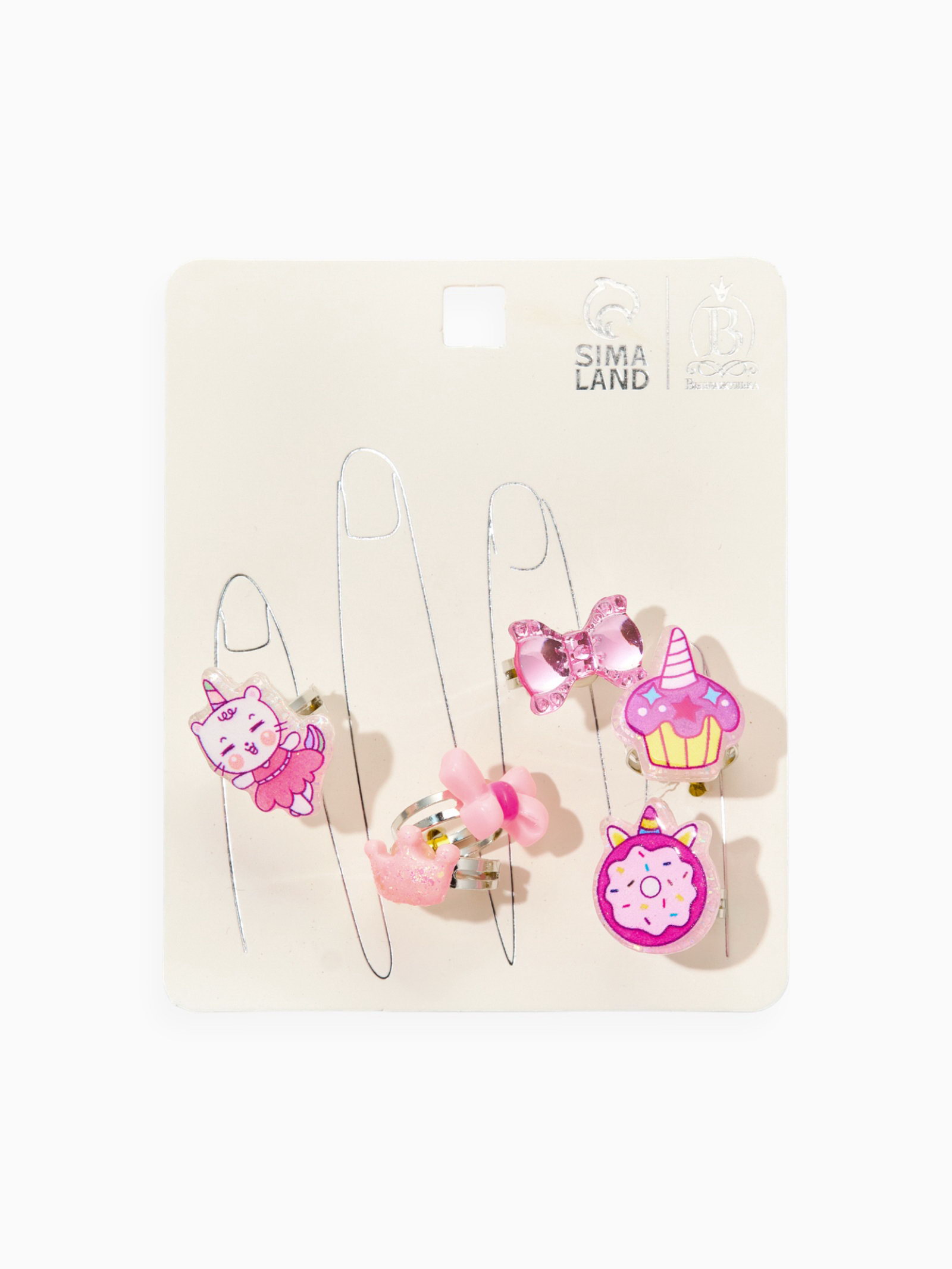 Размер упаковки: 9 x 2 x 11 см. tnved: 7117900000 Тематика: МИКС Материал основания: Металл Набор: Да Цвет фурнитуры: Серебряный Цвет: Розовый Для кого: Для девочки Вставка/Подвеска: Пластик Размер: Безразмерное см Создавайте яркие образы для маленьких модниц! Набор детских колец из 6 штук "Выбражулька. Котик и единорог" – это комплект оригинальных украшений для девочек. Каждое кольцо выполнено в форме милых фигурок и подойдет для повседневных игр и особых случаев, помогая развивать вкус и фантазию. ¶