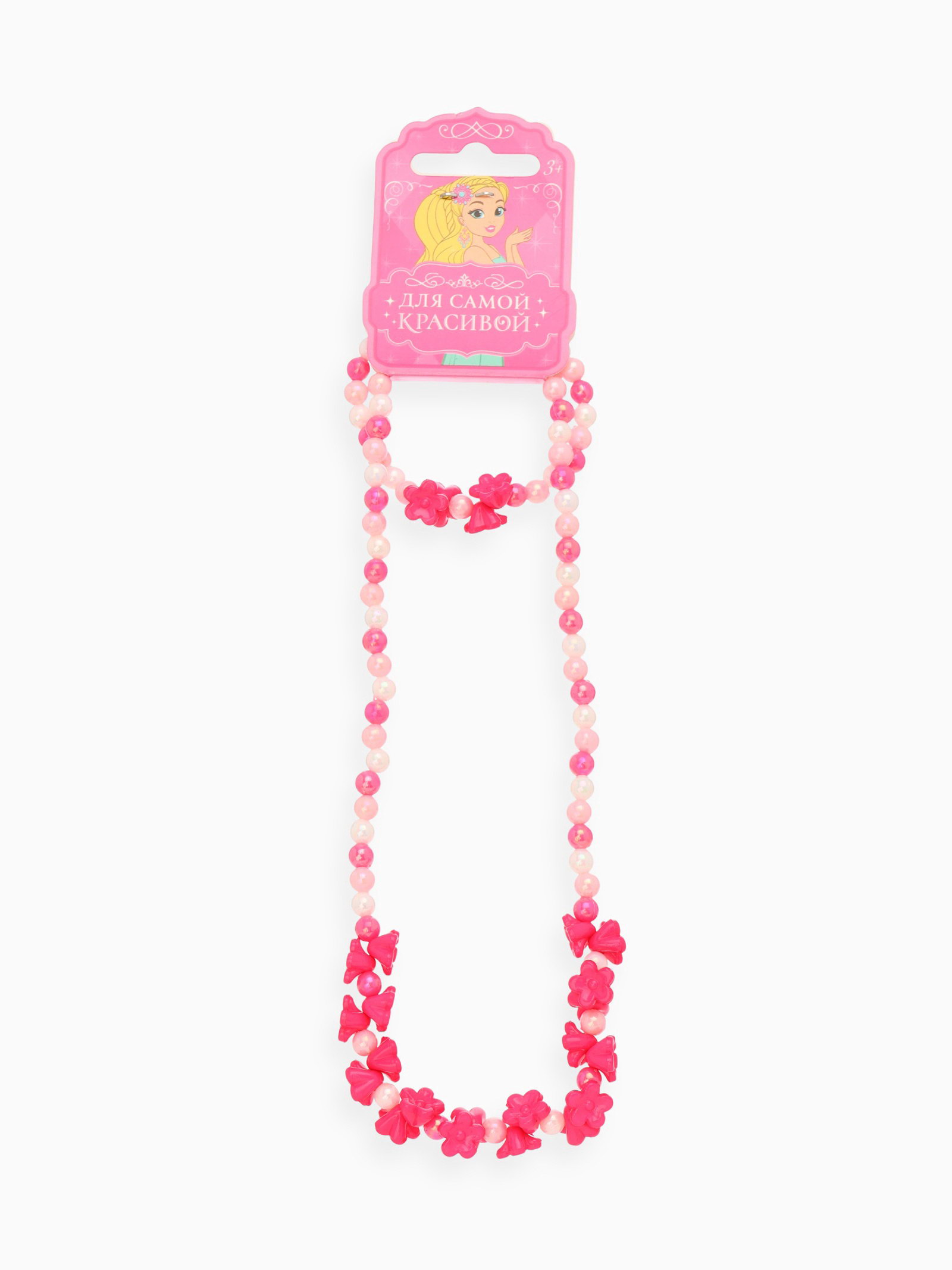 Набор детских украшений "Цветы сирени", 2 предмета: бусы, браслет d=6 см розовый, 6x1.5x40 см., Выбражулька, Китай