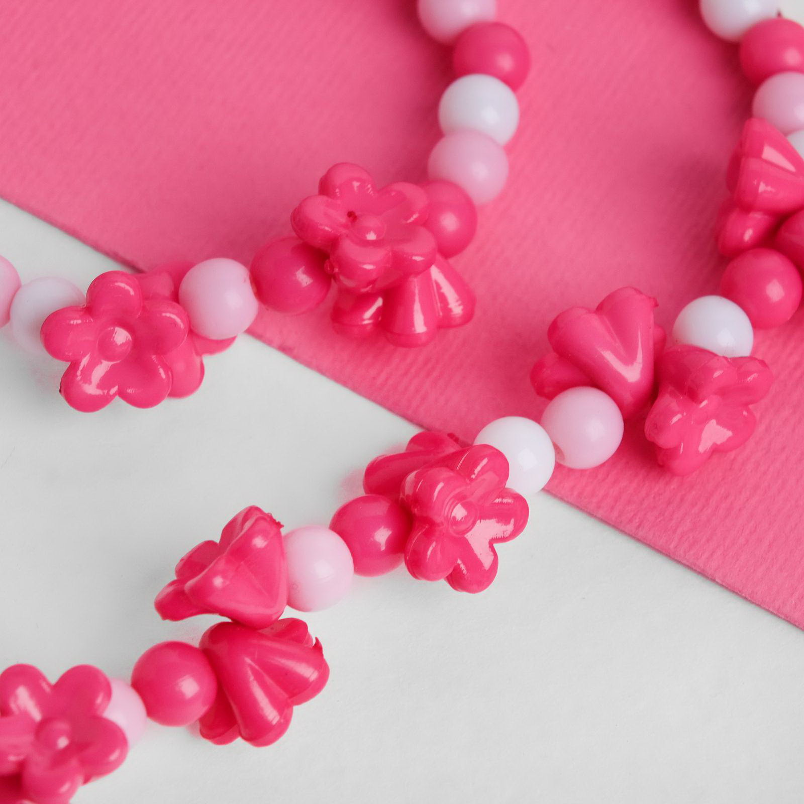 Набор детских украшений "Цветы сирени", 2 предмета: бусы, браслет d=6 см розовый, 6x1.5x40 см., Выбражулька, Китай