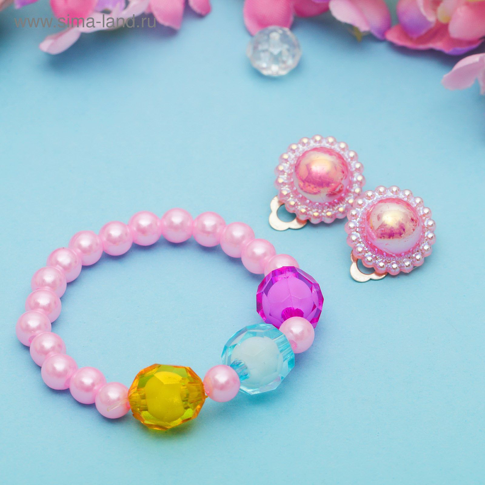 Набор детский 2 предмета: браслет, клипсы, нежность, МИКС, 1.5x6x1 см., Выбражулька, Китай