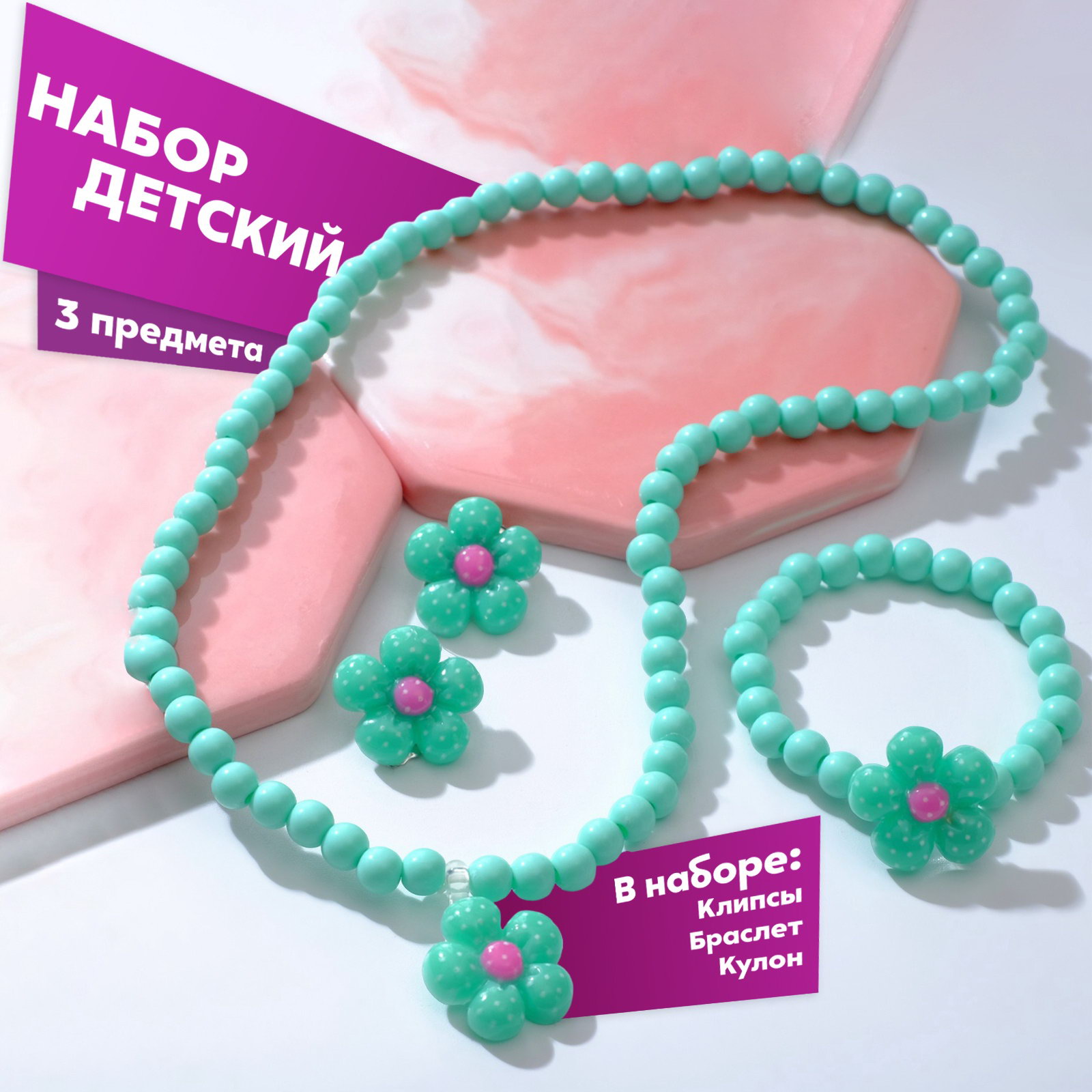 Набор детский "Ромашка" 3 предмета: клипсы, кулон, браслет d=5 см МИКС, 5x38x2 см., Выбражулька, Китай