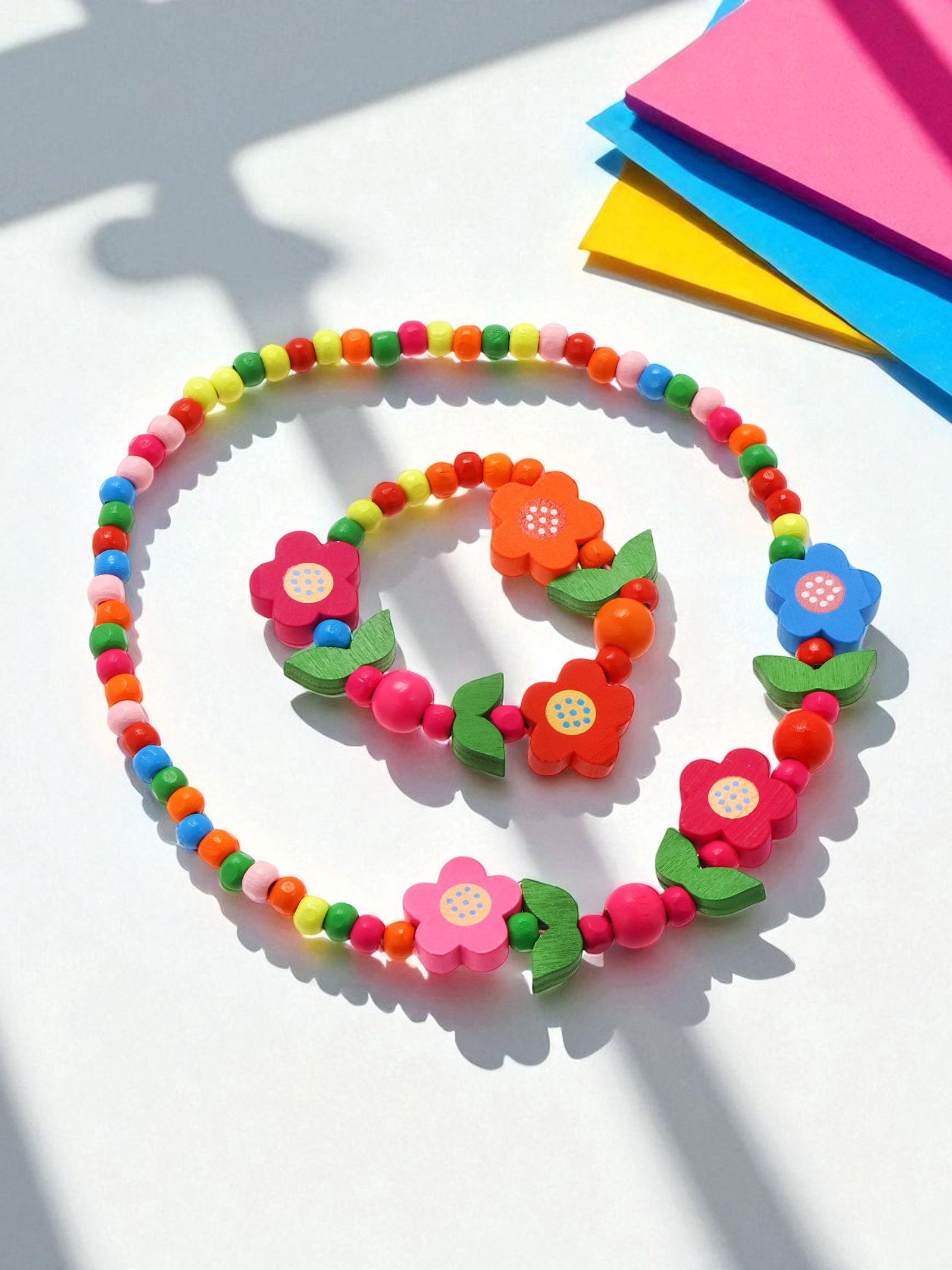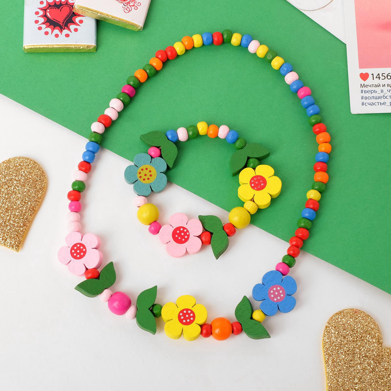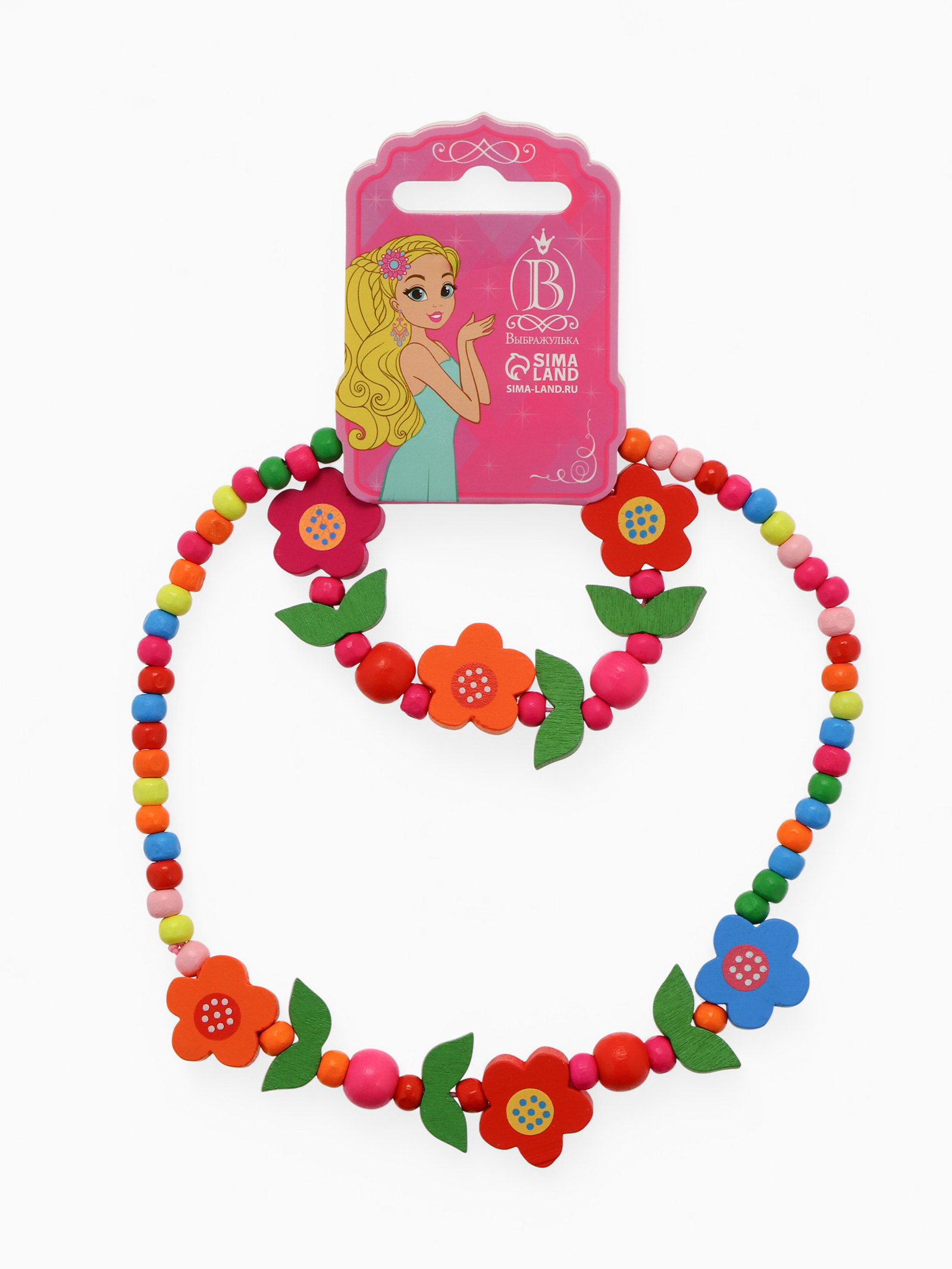 Набор детских украшений "Цветочное настроение", 2 предмета: бусы, браслет d=6 см МИКС, 6x40x2 см., Выбражулька, Китай