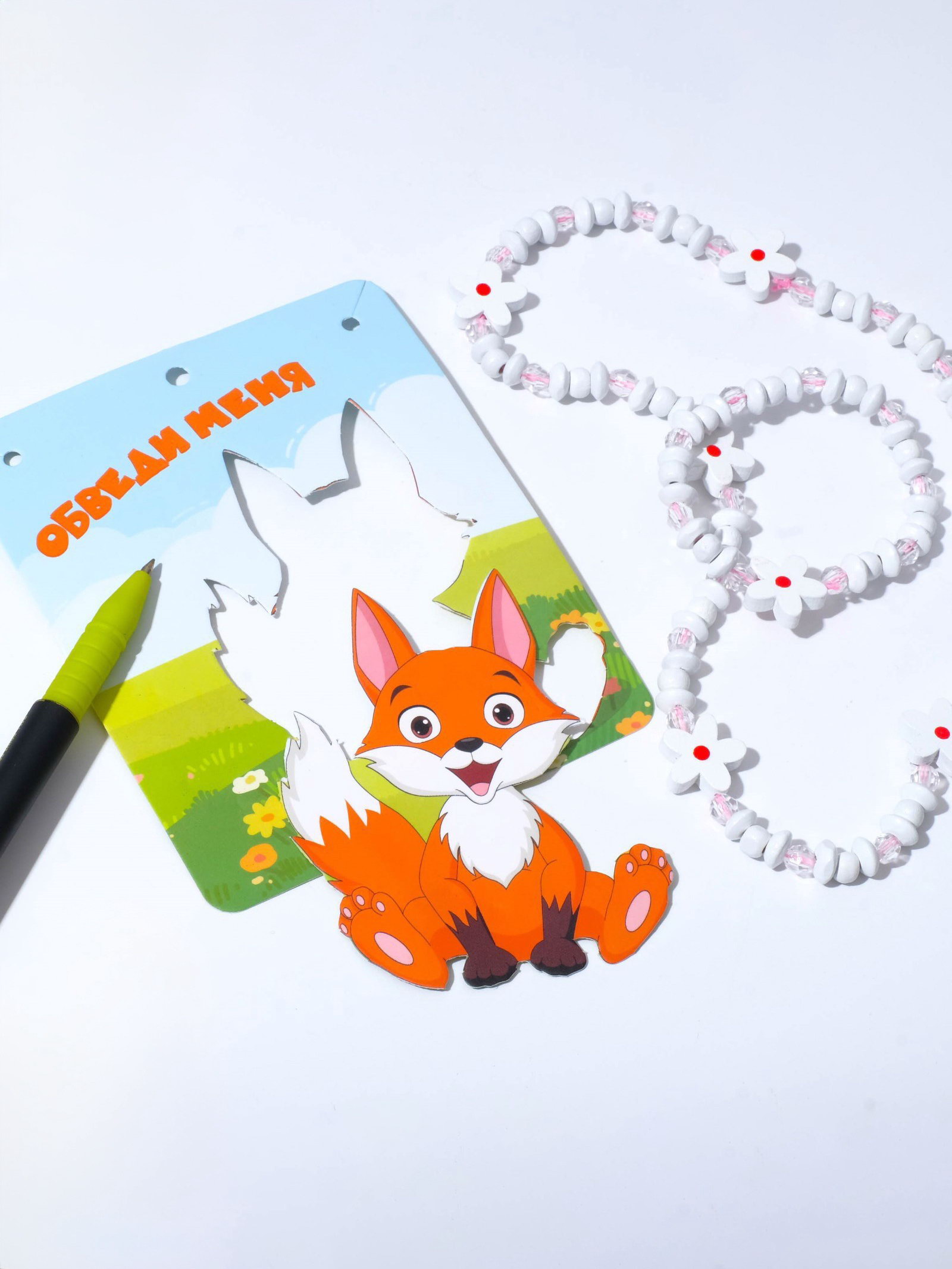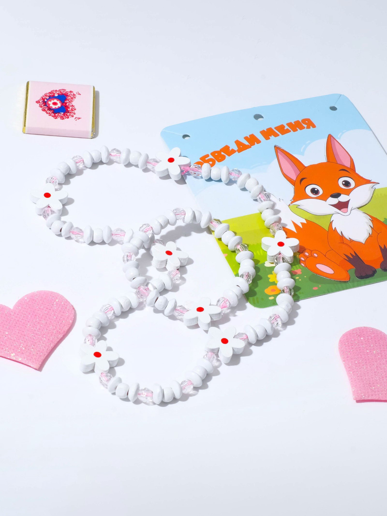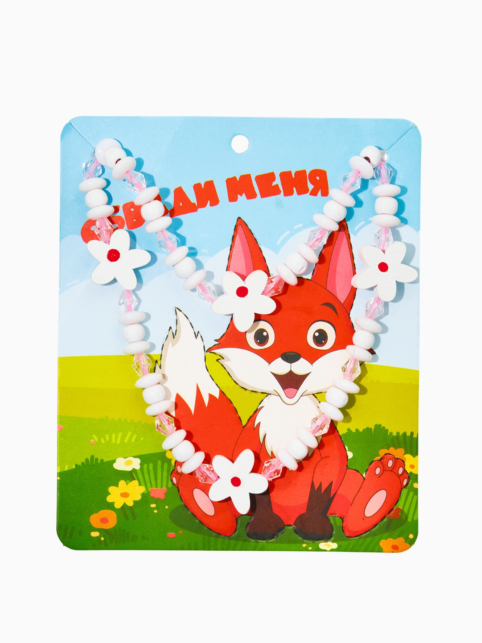 Набор детский 2 предмета: бусы, браслет, трафарет лисёнок, бело-розовый, 5x40x1.7 см., Выбражулька, Китай