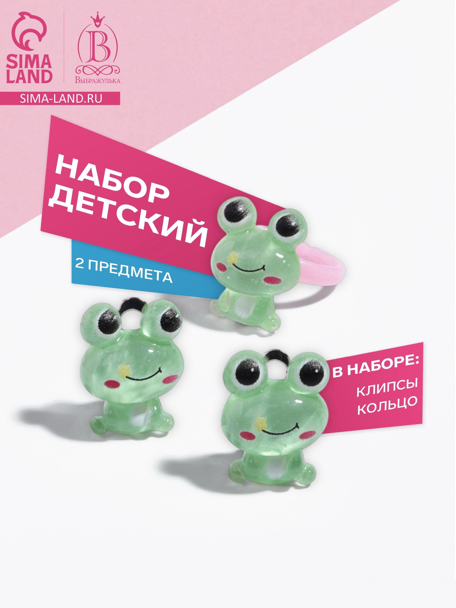Набор детский 2 предмета: клипсы, кольцо, лягушка, зеленый, 1.5x2x2 см., Выбражулька, Китай
