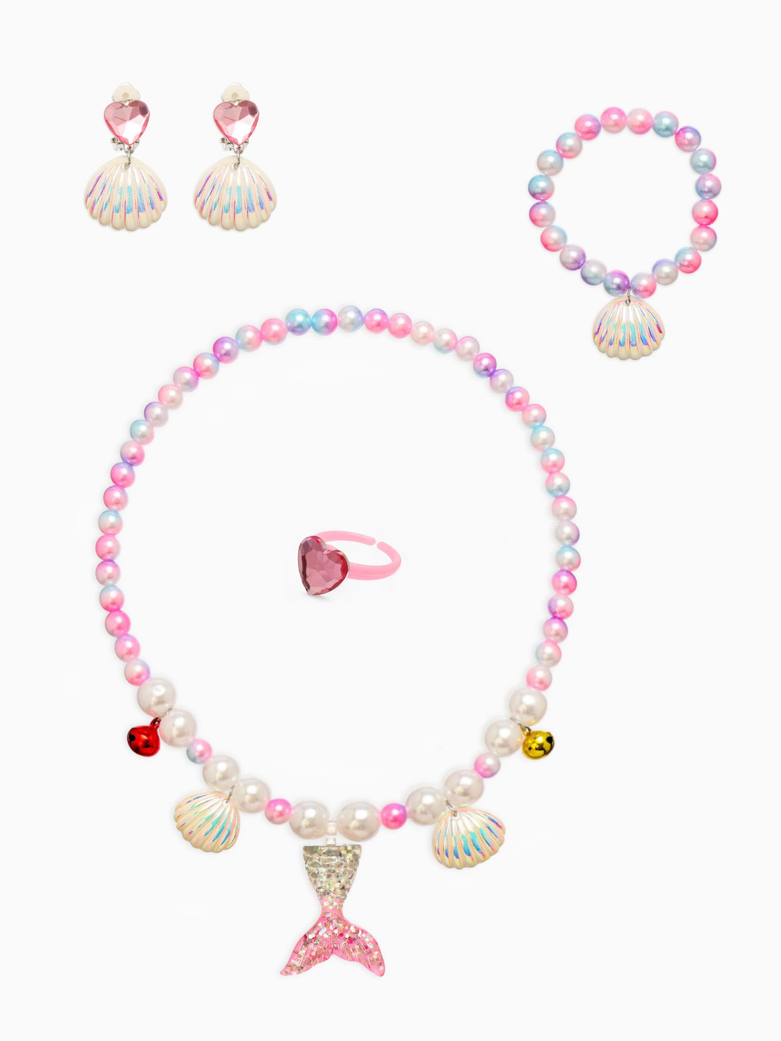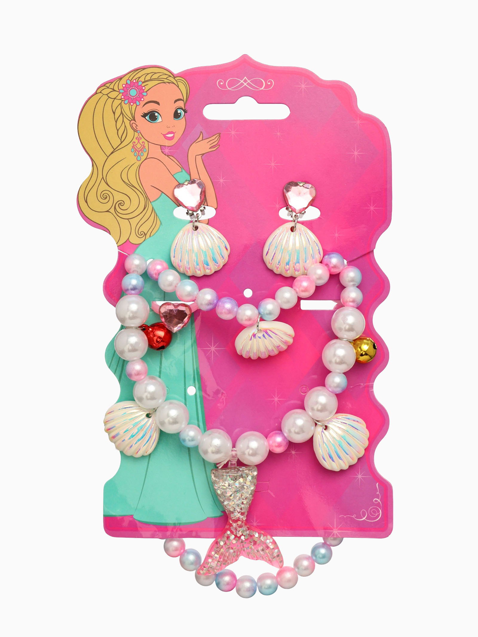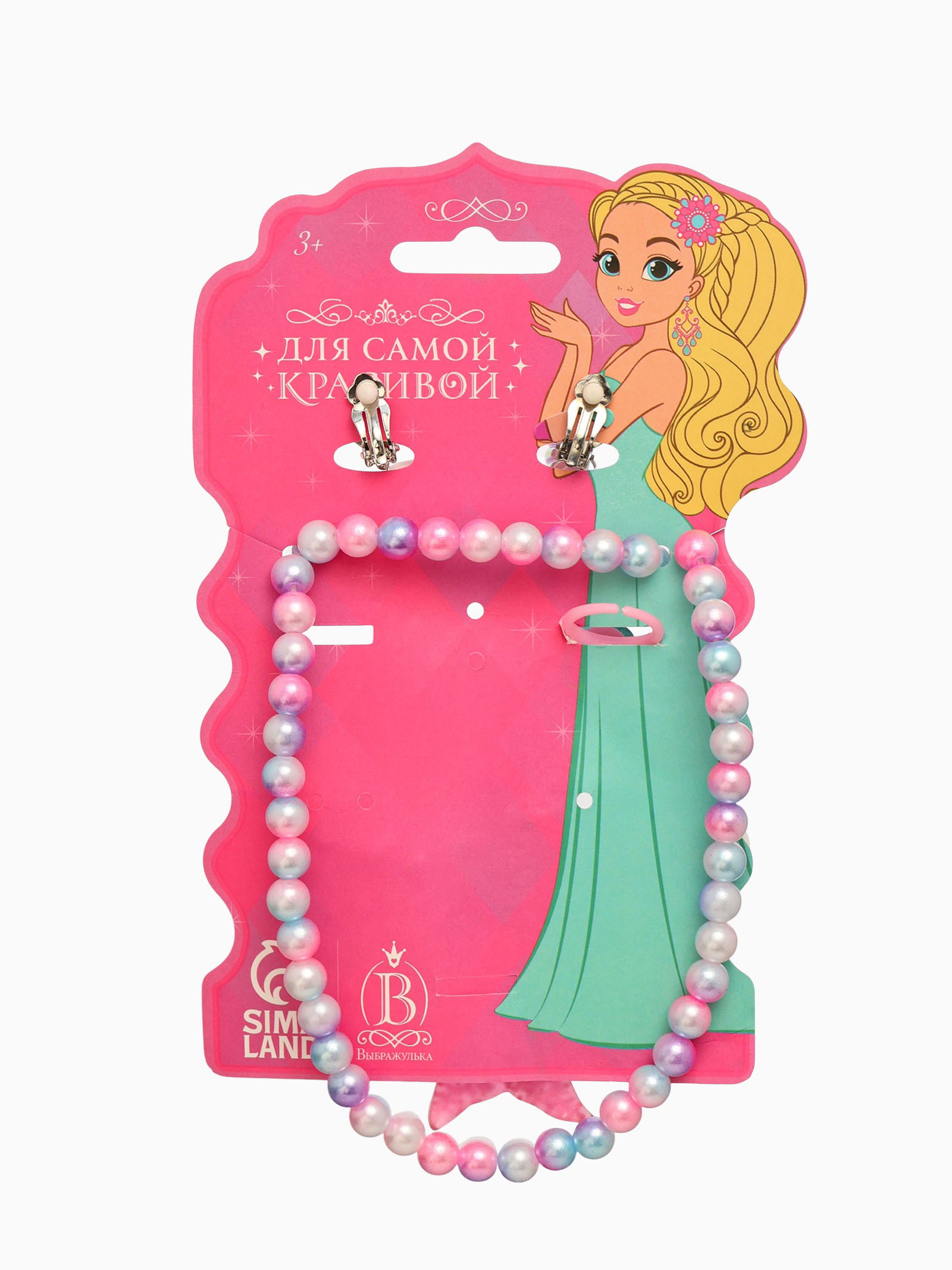Набор детский "Выбражулька. Русалочка", 4 предмета: клипсы, кольцо, браслет, бусы, бело-розовый, 4x45x1 см., Выбражулька, Китай