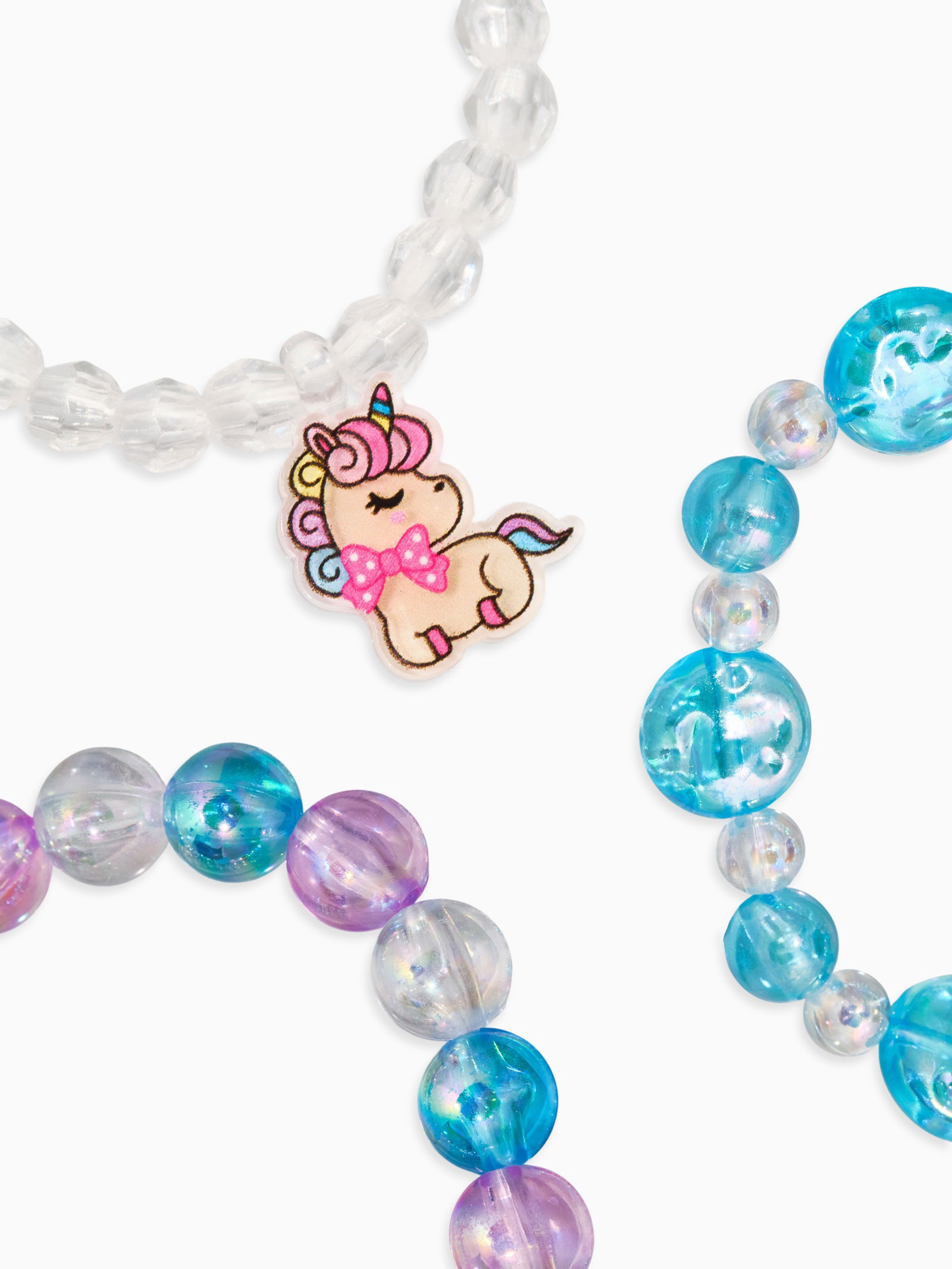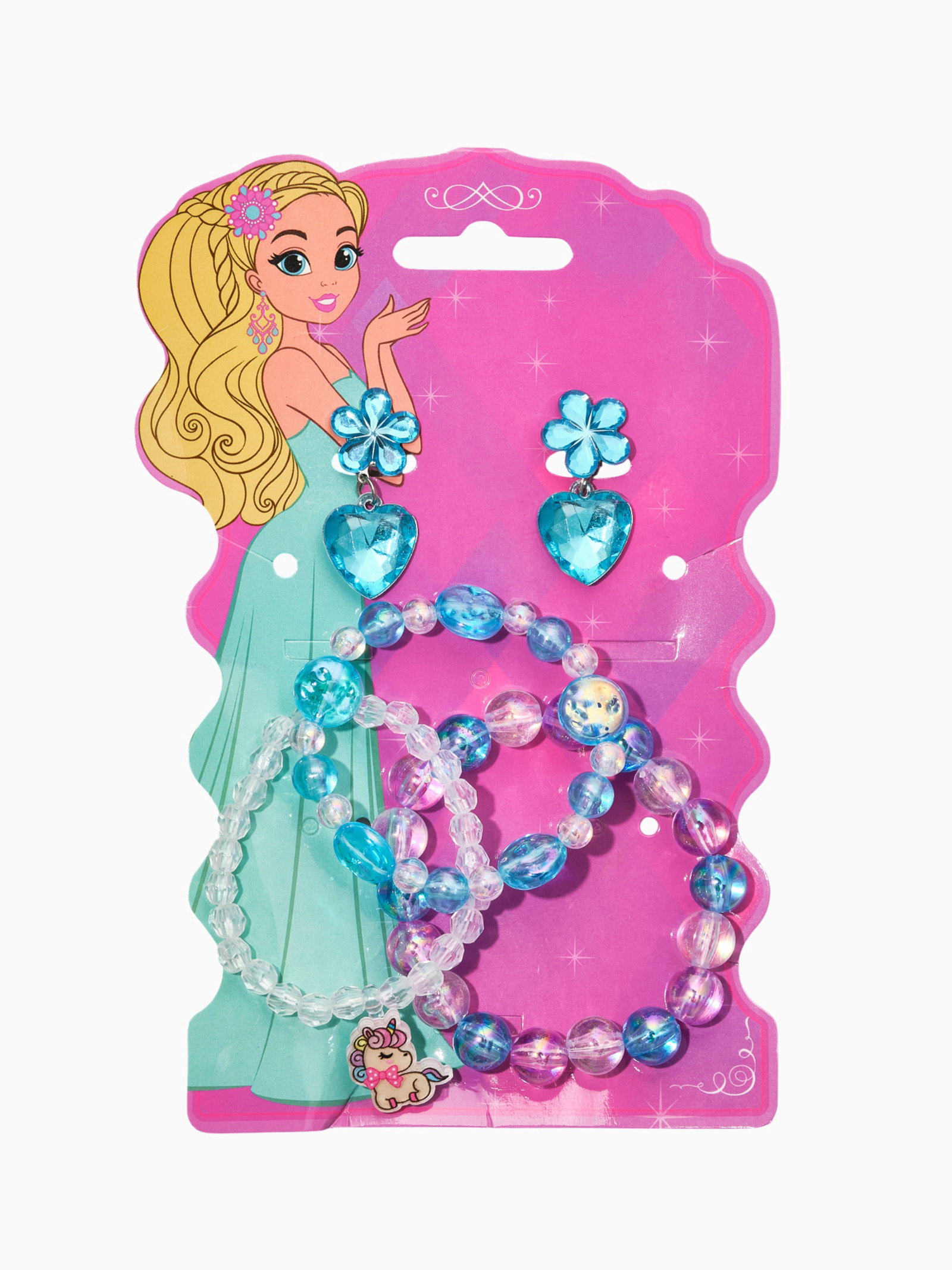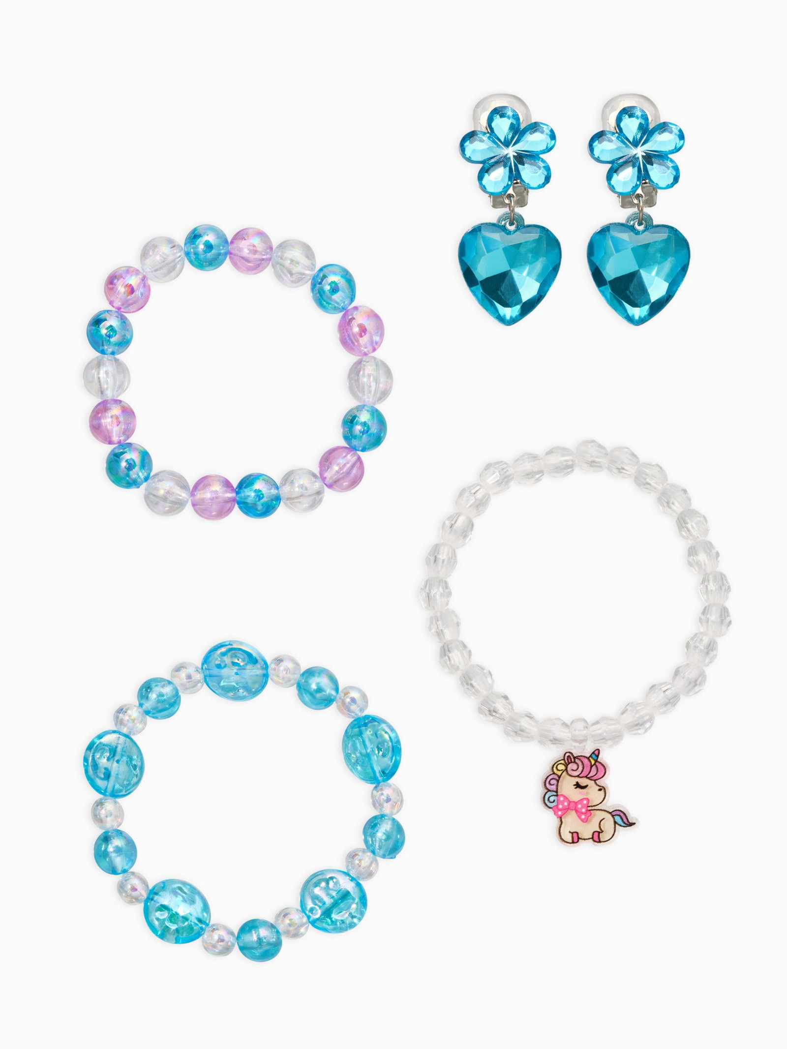 Комплект детский 4 предмета,3 браслета, 1 клипсы, единорог, сердце, цветной, 3.5x5.5x1.8 см., Выбражулька, Китай