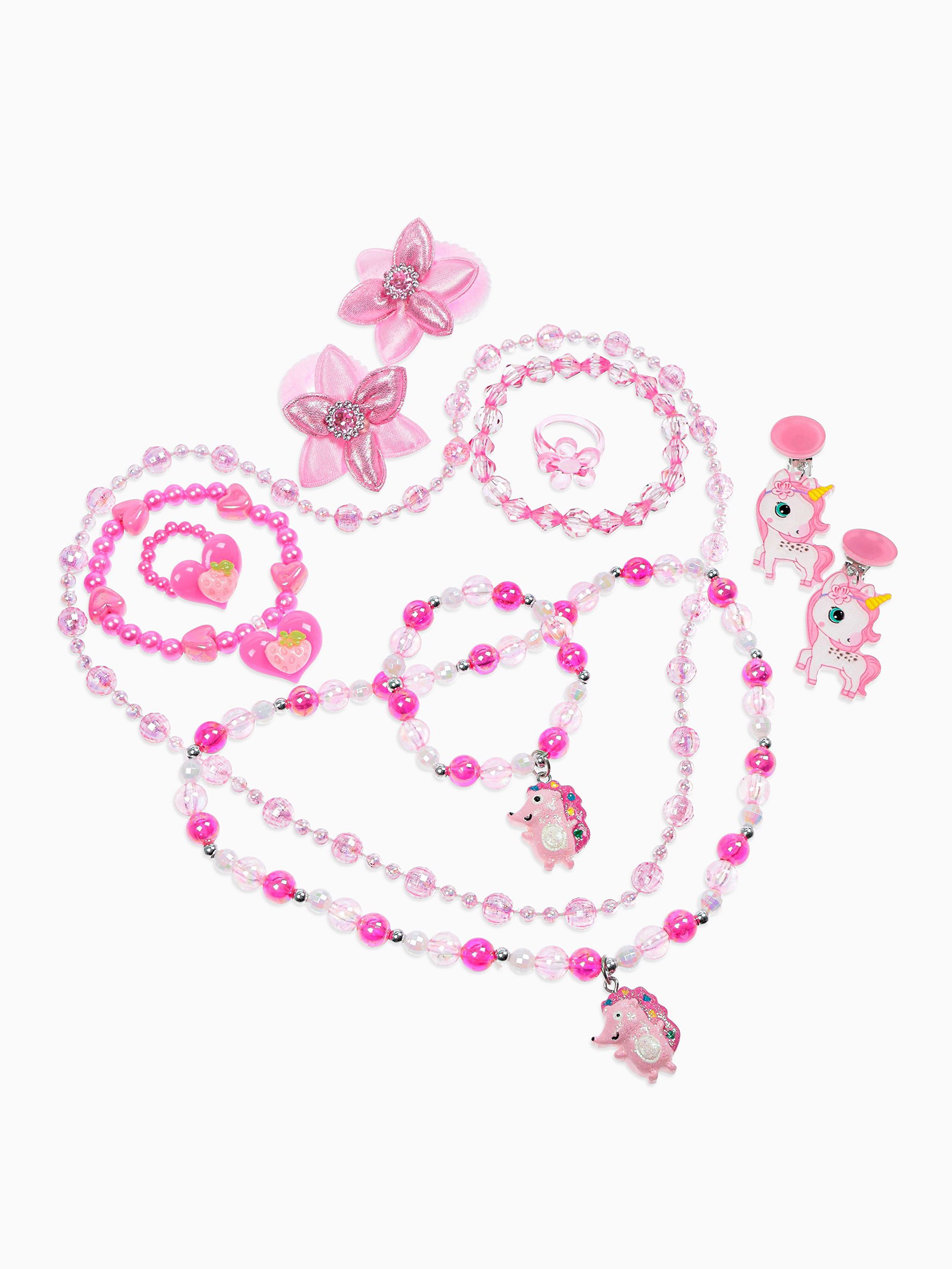 Размер упаковки: 16 x 7.5 x 23 см. tnved: 7117900000 Для кого: Для девочки Состав набора: Клипсы + Бусы + Браслет + Кольцо Цвет: Розовый В наборе, шт.: 10 Яркое воплощение мечты каждой маленькой феи очаровательный розовый набор детской бижутерии с волшебным названием "Влюбленный единорог". Девочки обожают нежные оттенки и романтические мотивы, поэтому эти аксессуары станут отличным выбором для подарков или дополнения образа. Что входит в набор: