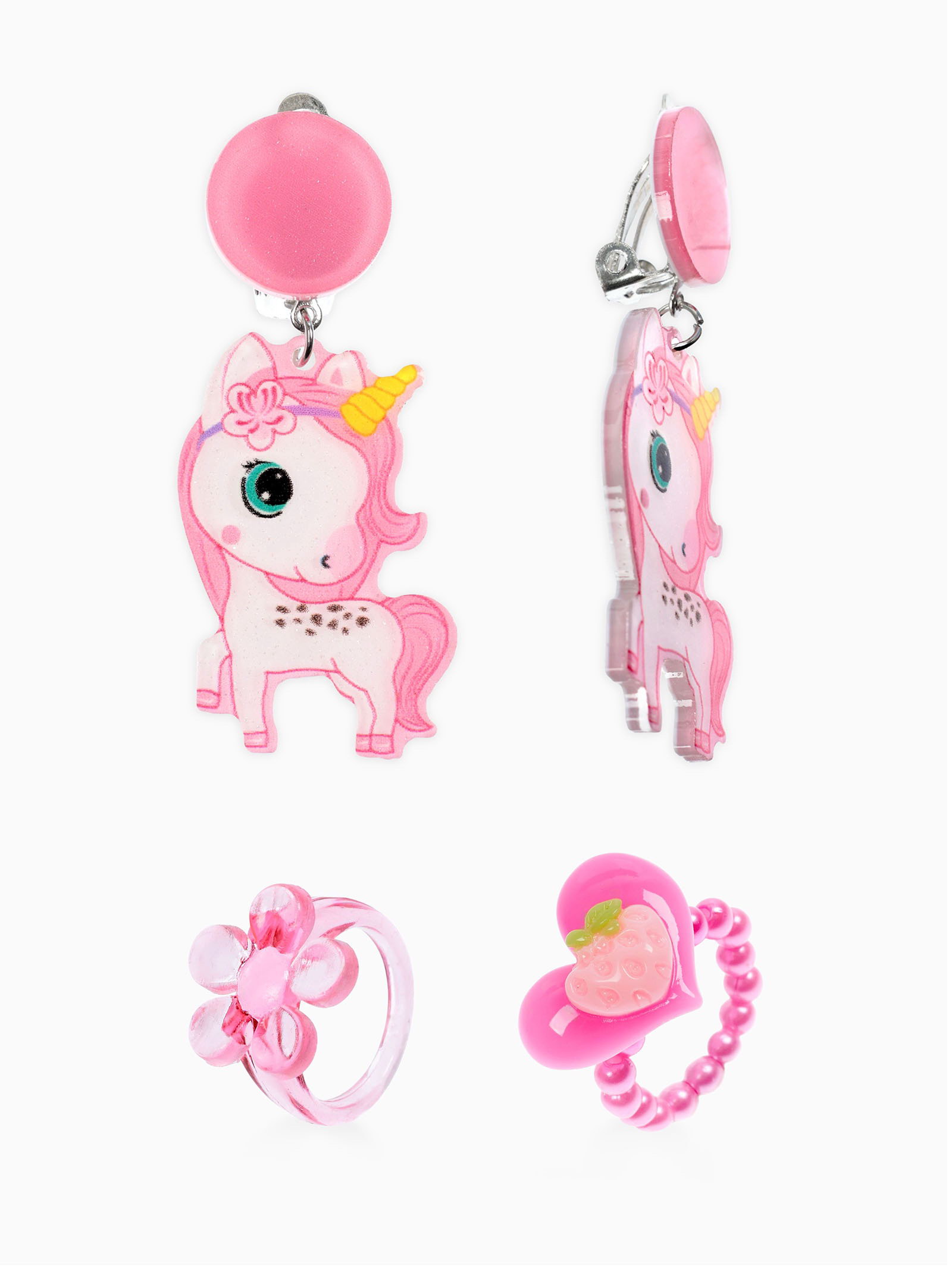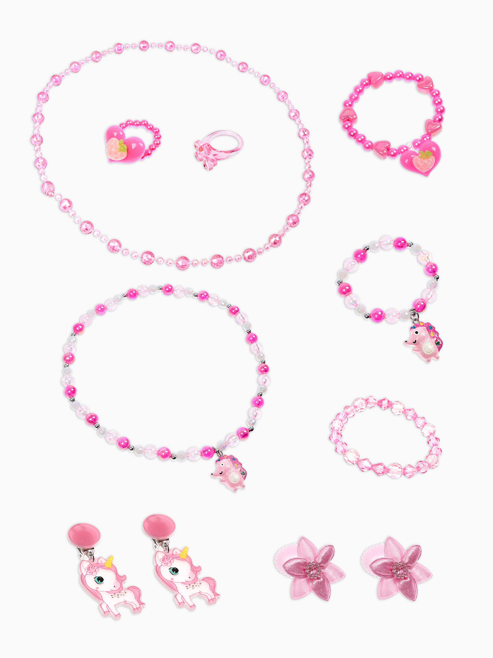Детский подарочный набор "Выбражулька. Влюблённый единорог", 10 предметов: кольца, бусы, браслеты, клипсы, резинки, розовый, 16x23x7.5 см., Выбражулька, Китай