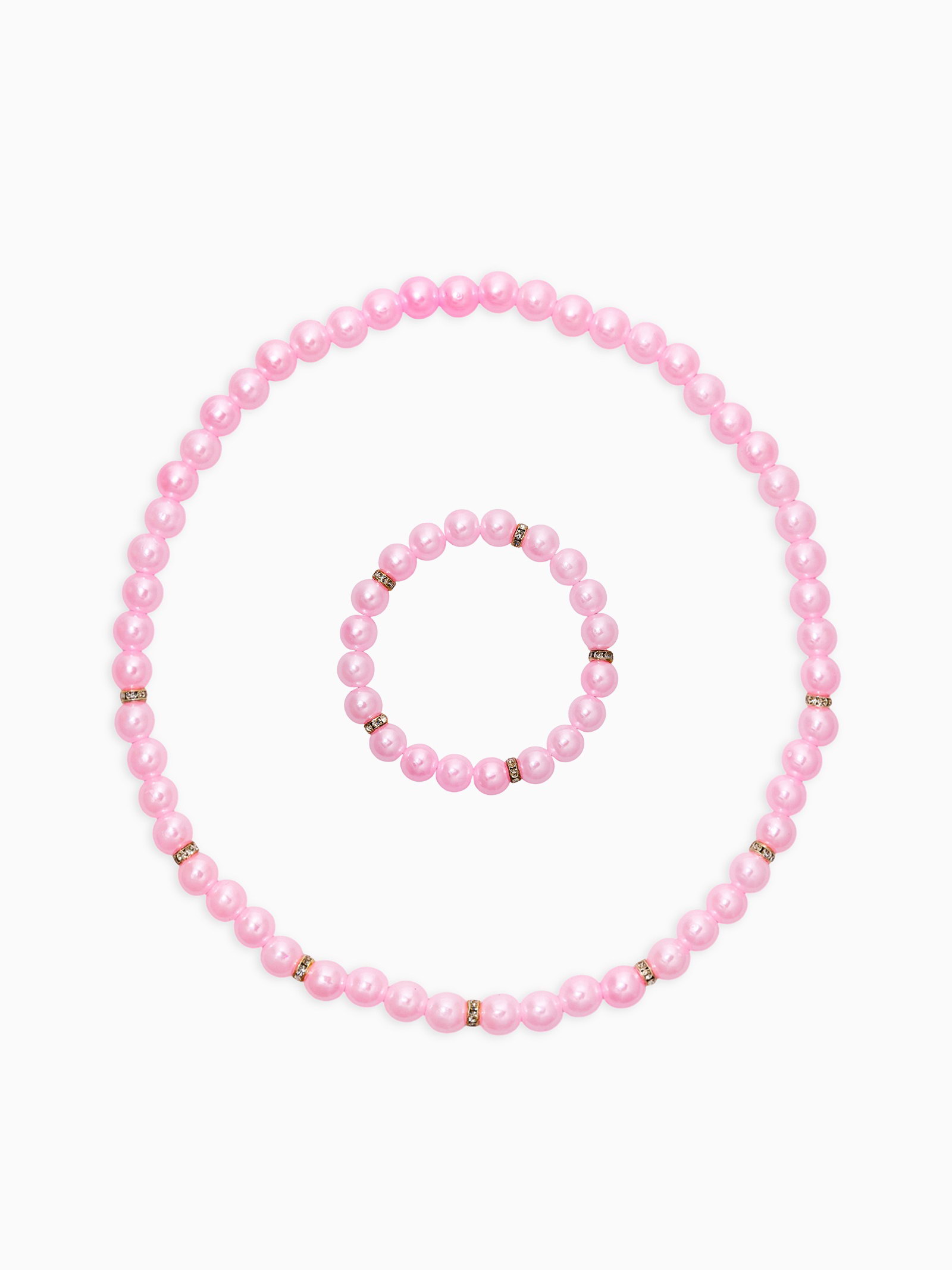 Набор детский 2 предмета: бусы, браслет, жемчуг стразы, цвет нежно-розовый, 0.8x40x0.8 см., Выбражулька, Китай