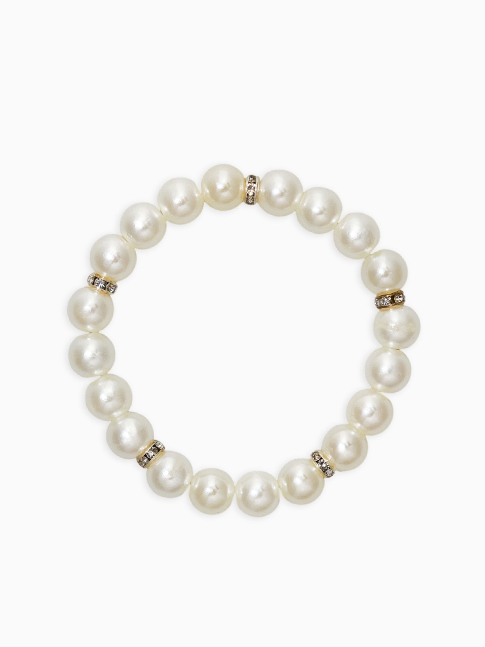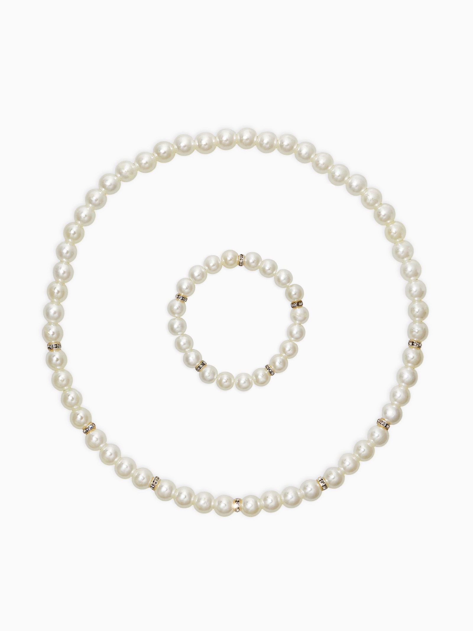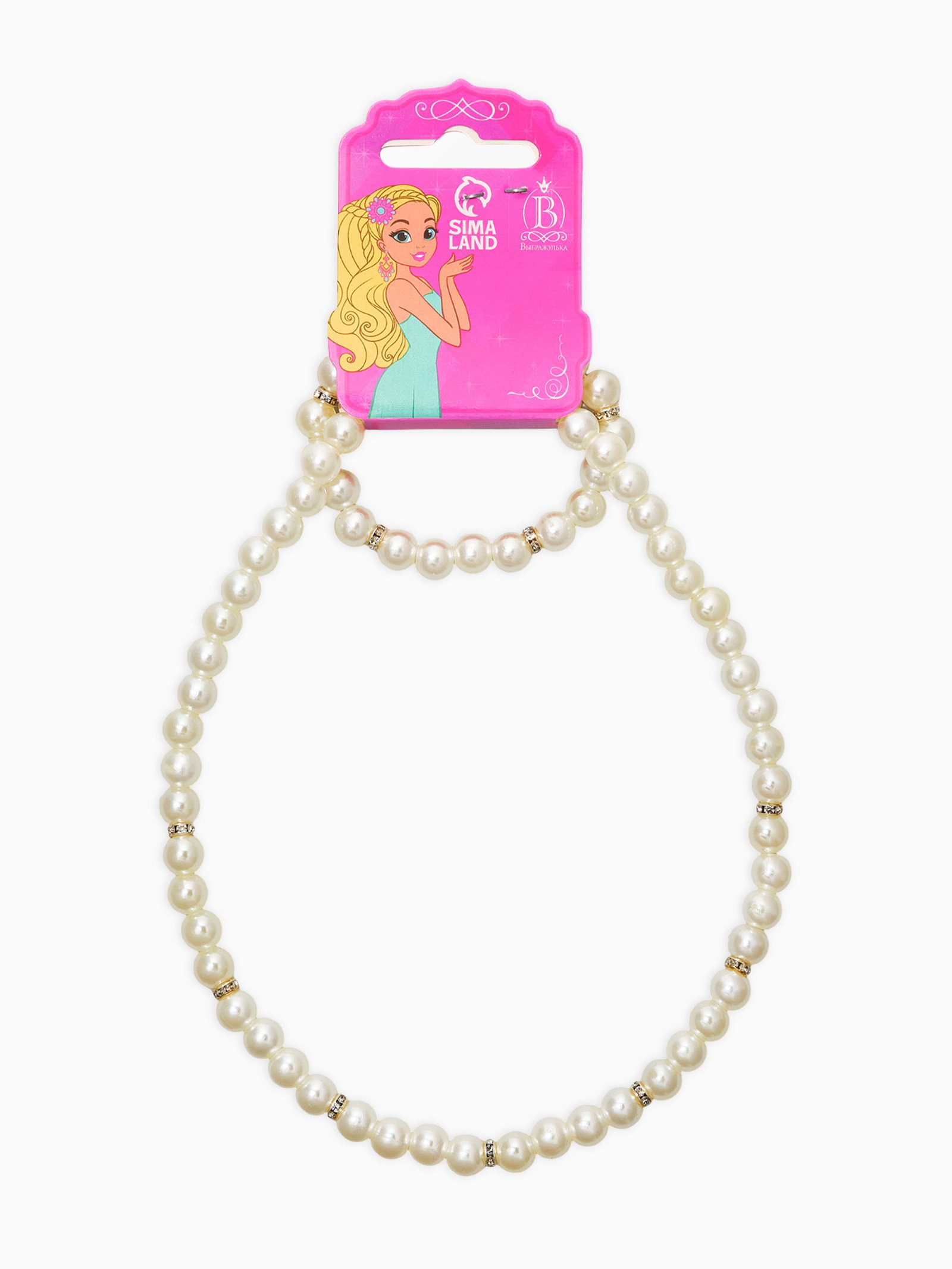 Набор детский 2 предмета: бусы, браслет, жемчуг стразы, цвет белый, 0.8x40x0.8 см., Выбражулька, Китай
