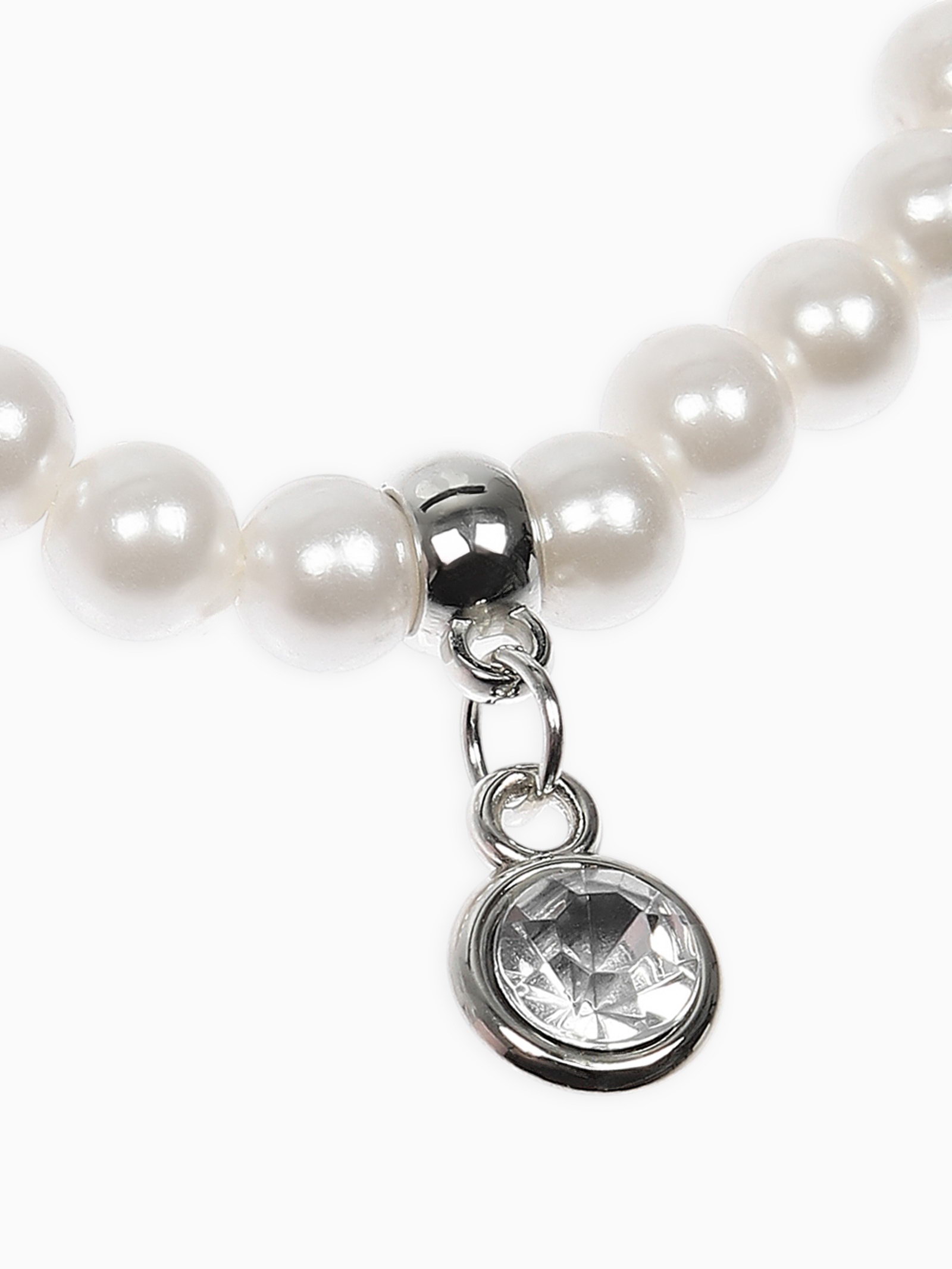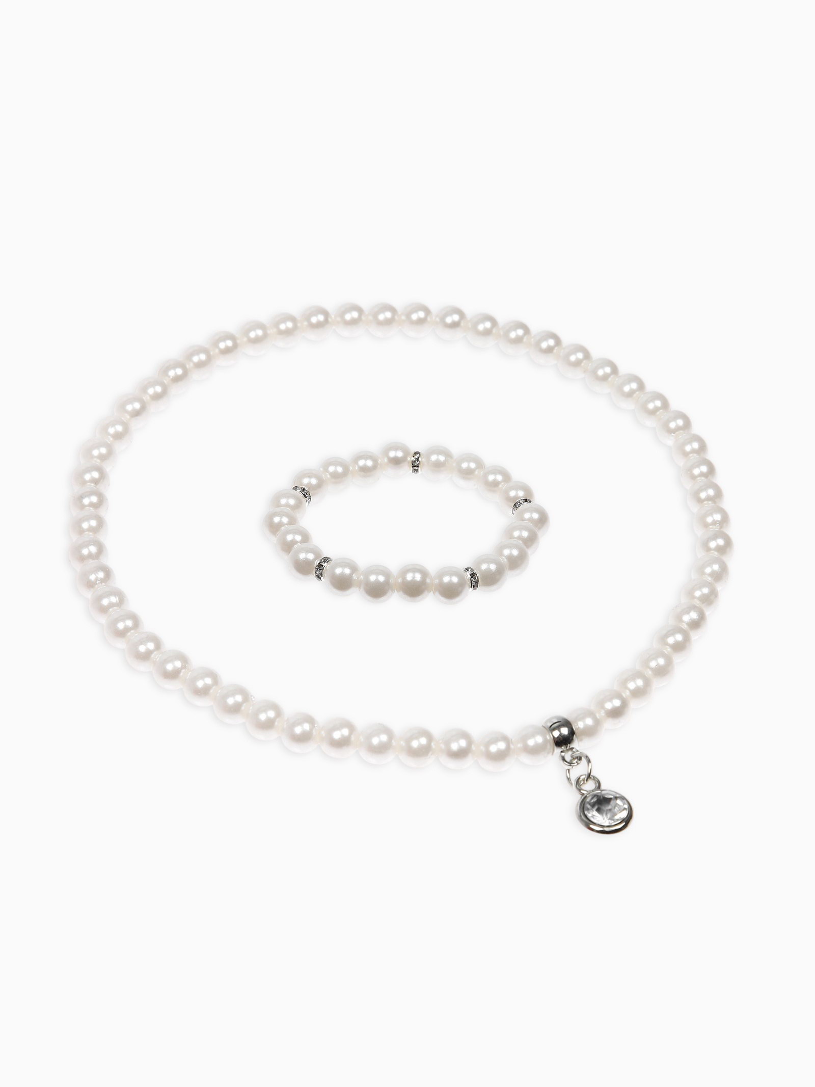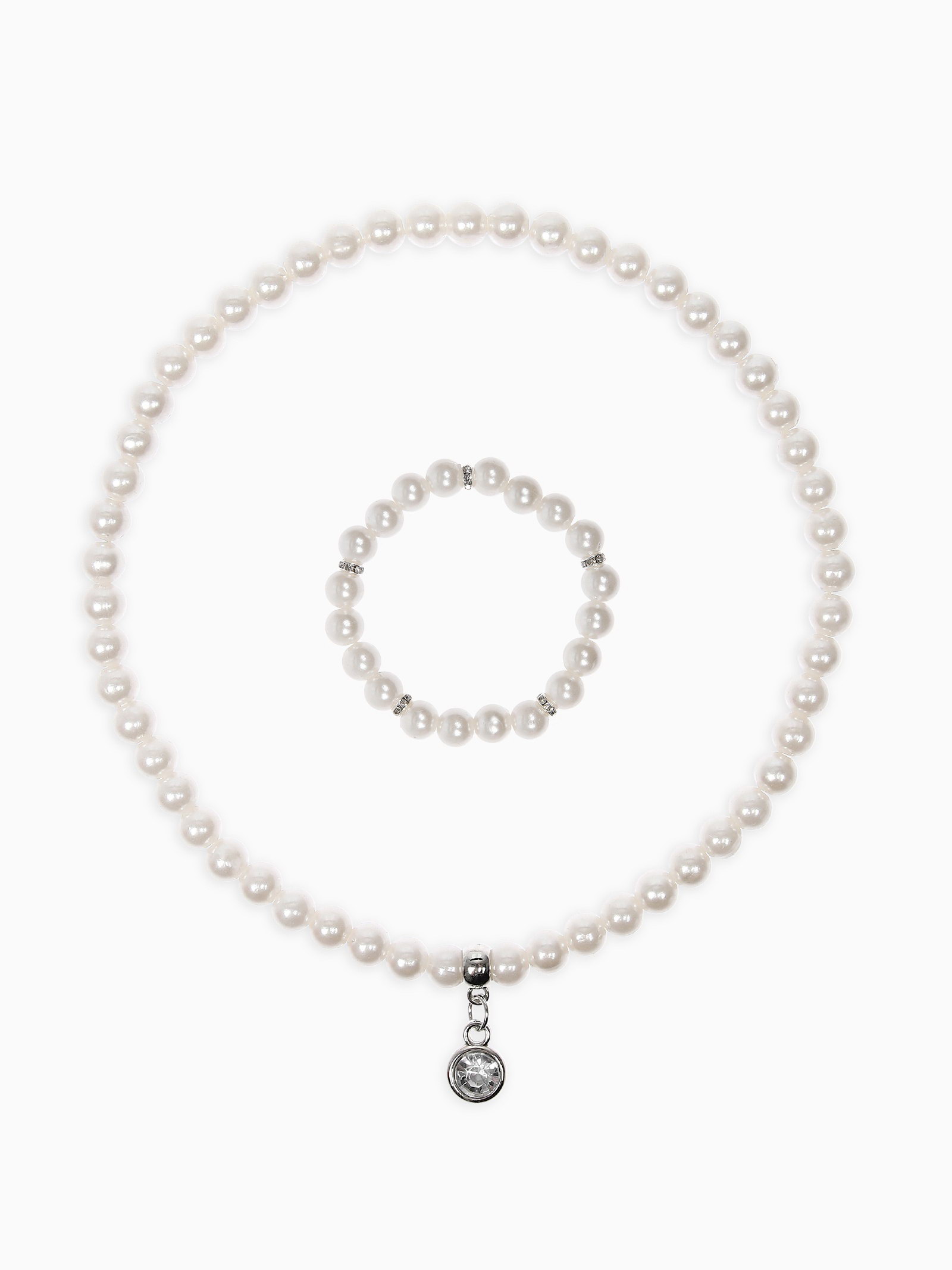 Набор детский 2 предмета: бусы, браслет d=6 см жемчуг, белый в серебре, 6x40x0.5 см., Выбражулька, Китай