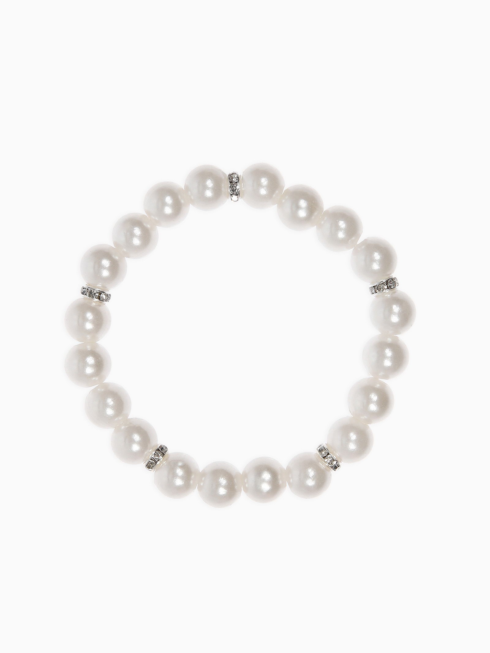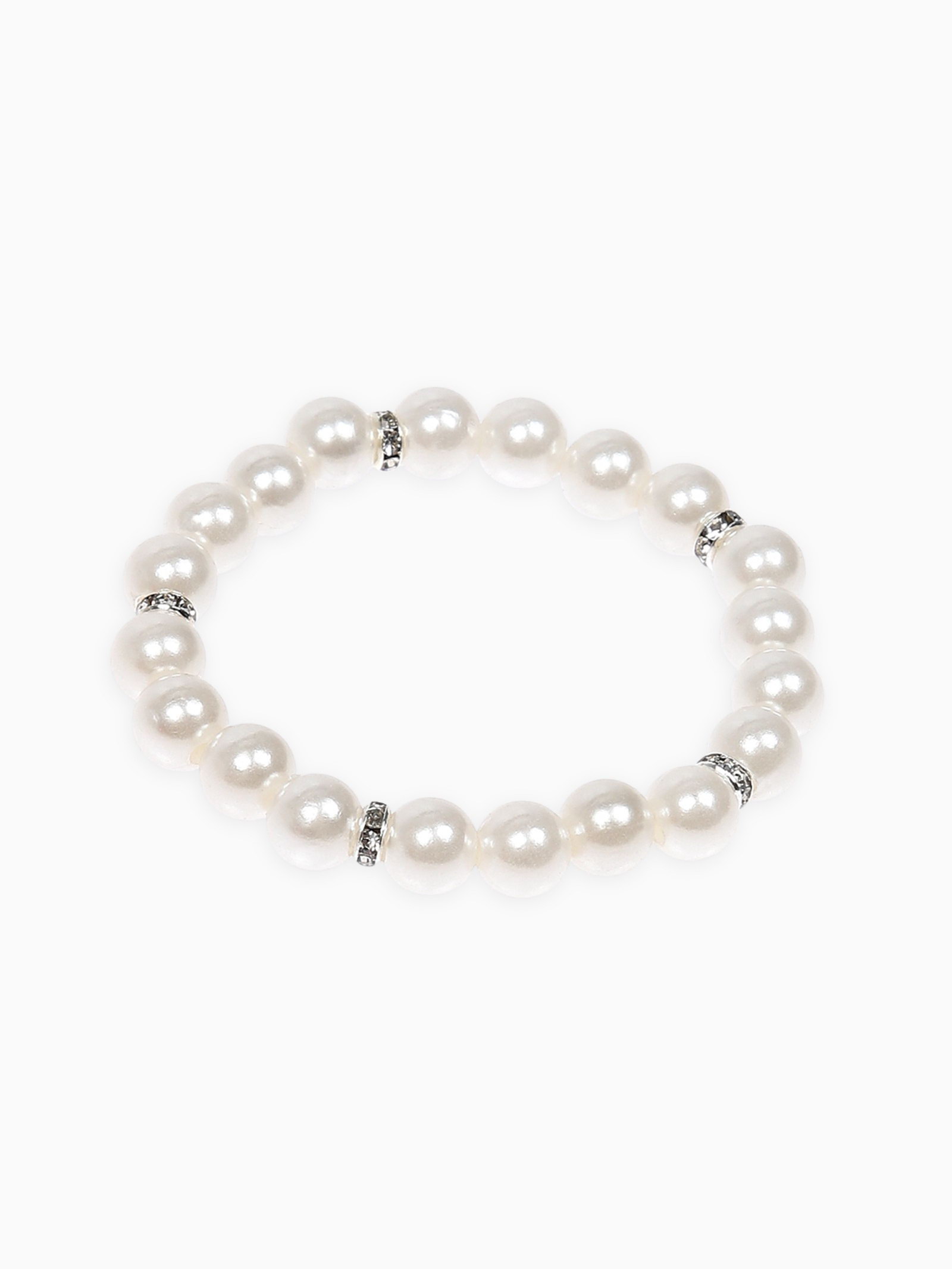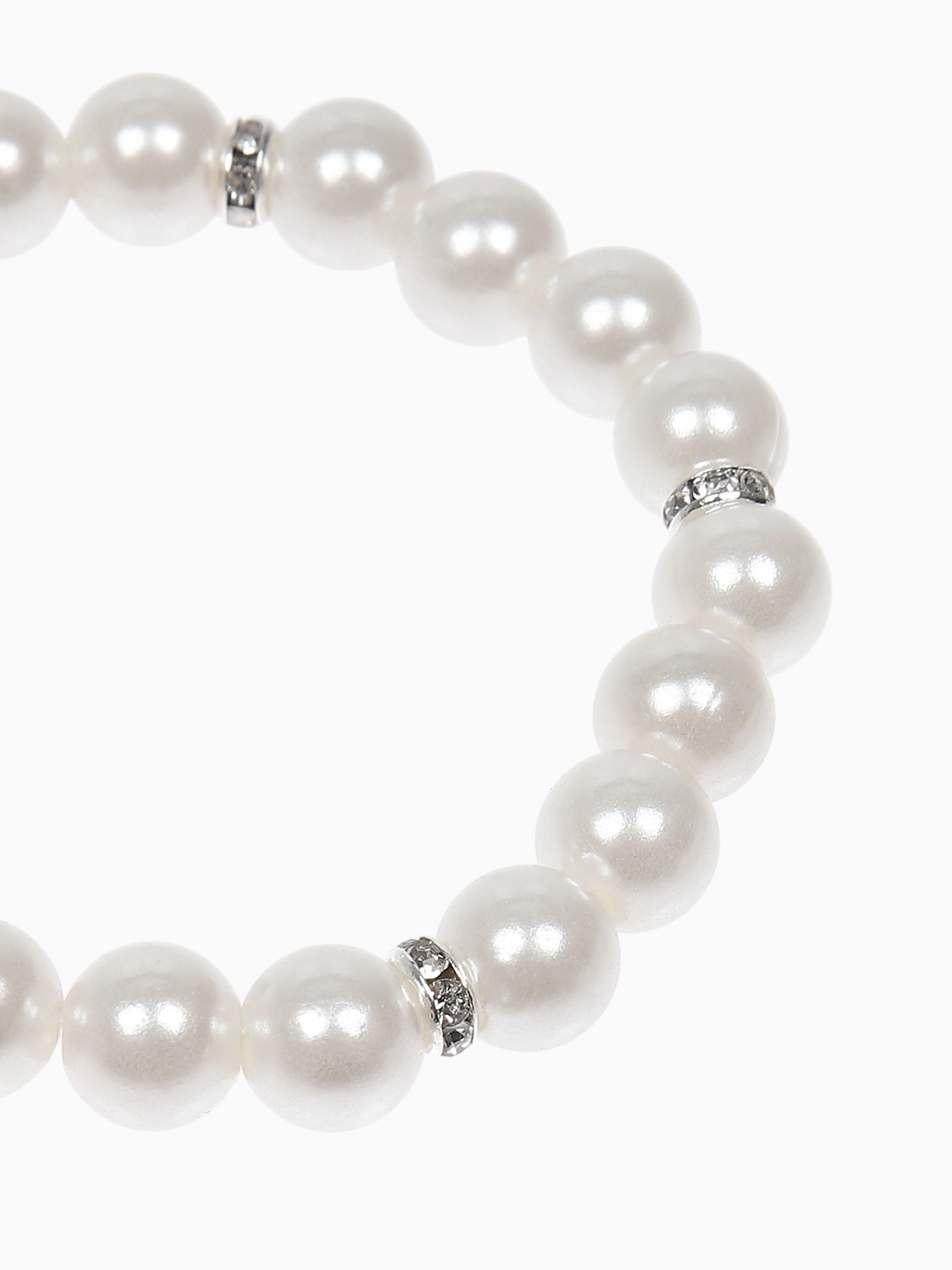 Набор детский 2 предмета: бусы, браслет d=6 см жемчуг, белый в серебре, 6x40x0.5 см., Выбражулька, Китай