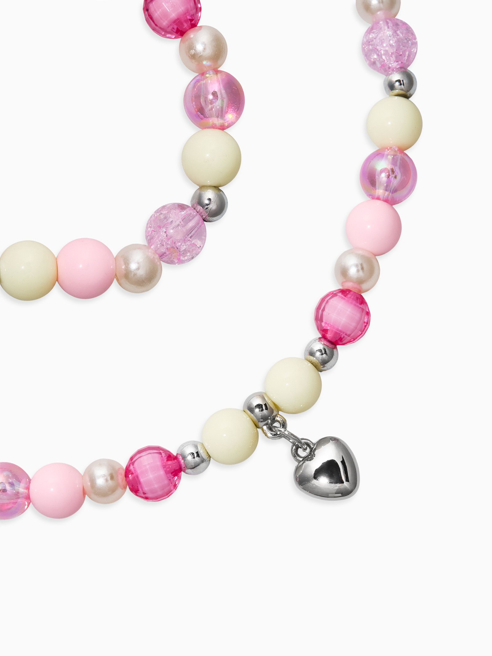 Набор детский 2 предмета: бусы, браслет d=6 см сердце, фиолетовый в серебре, 6x40x1 см., Выбражулька, Китай