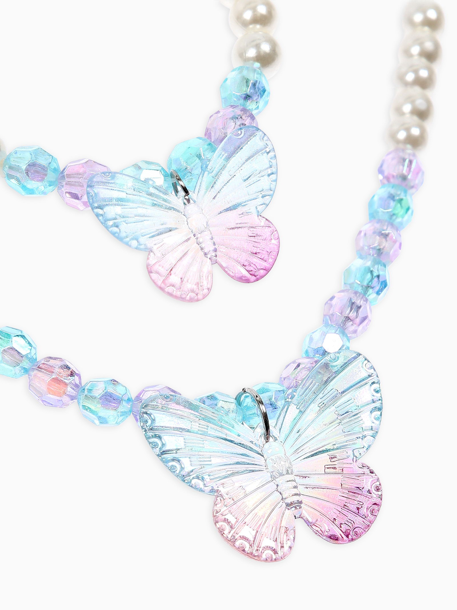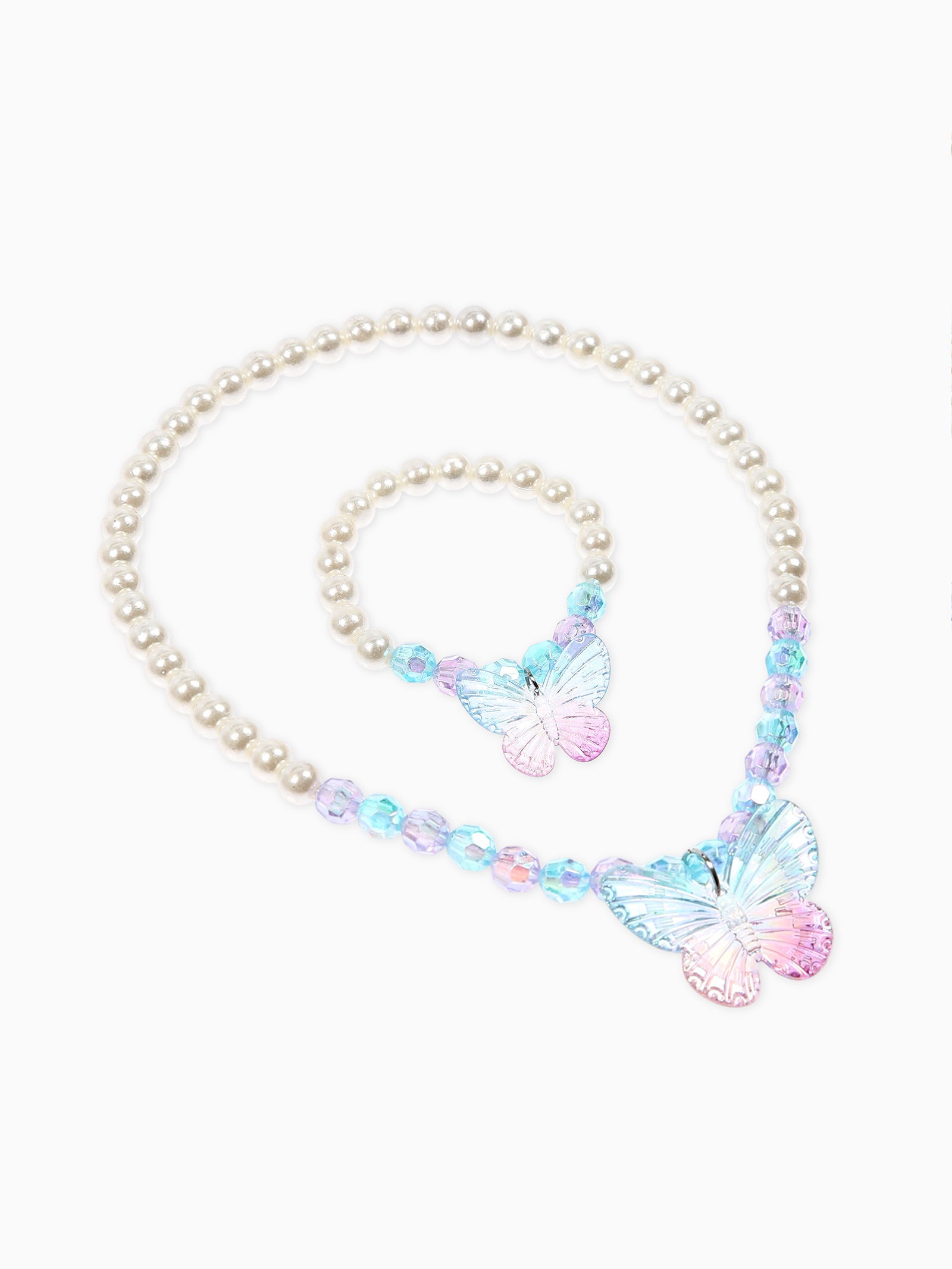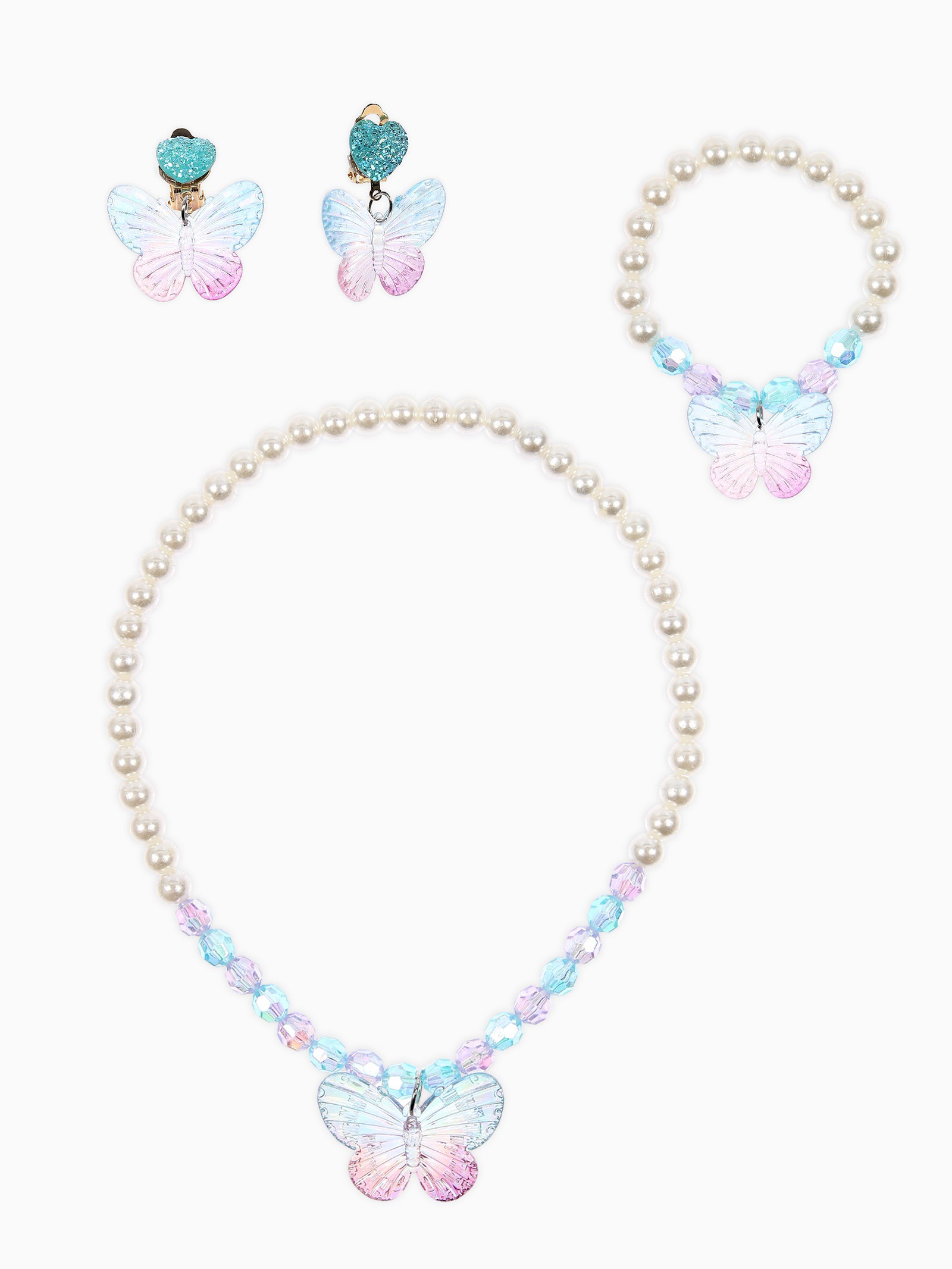 Набор детских украшений "Выбражулька. Бабочка", 3 предмета: бусы, браслет d=6 см, клипсы, белый, голубой, 6x40x1 см., Выбражулька, Китай