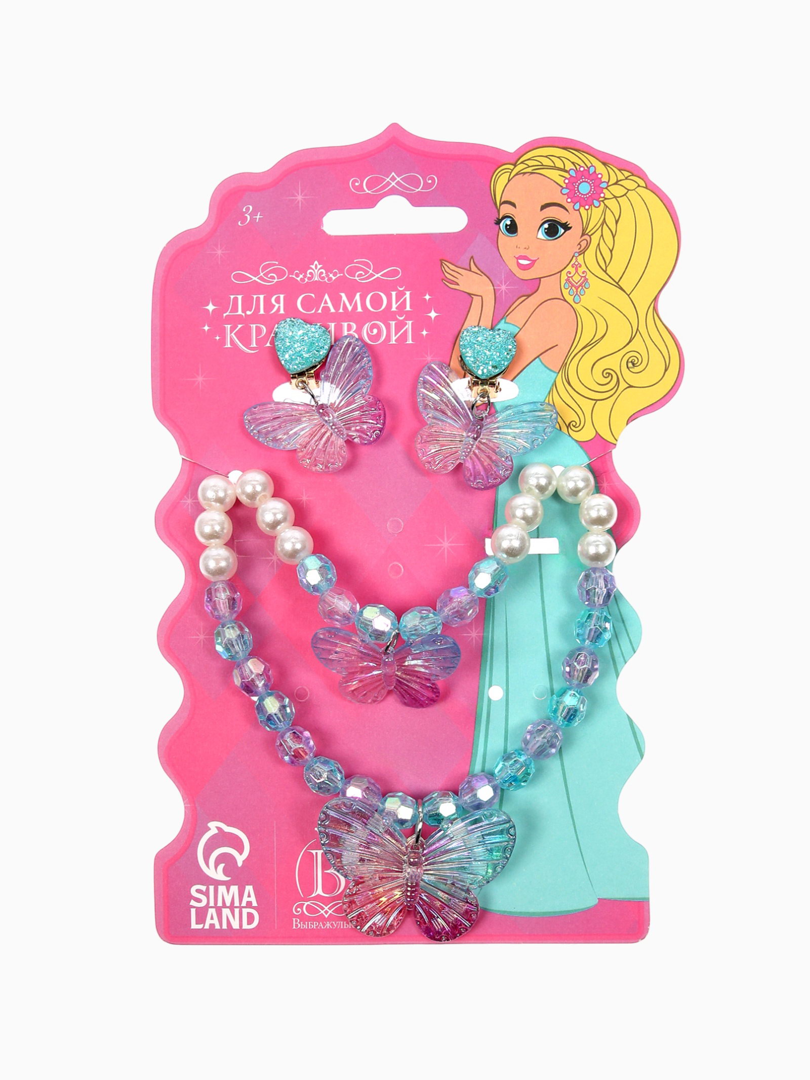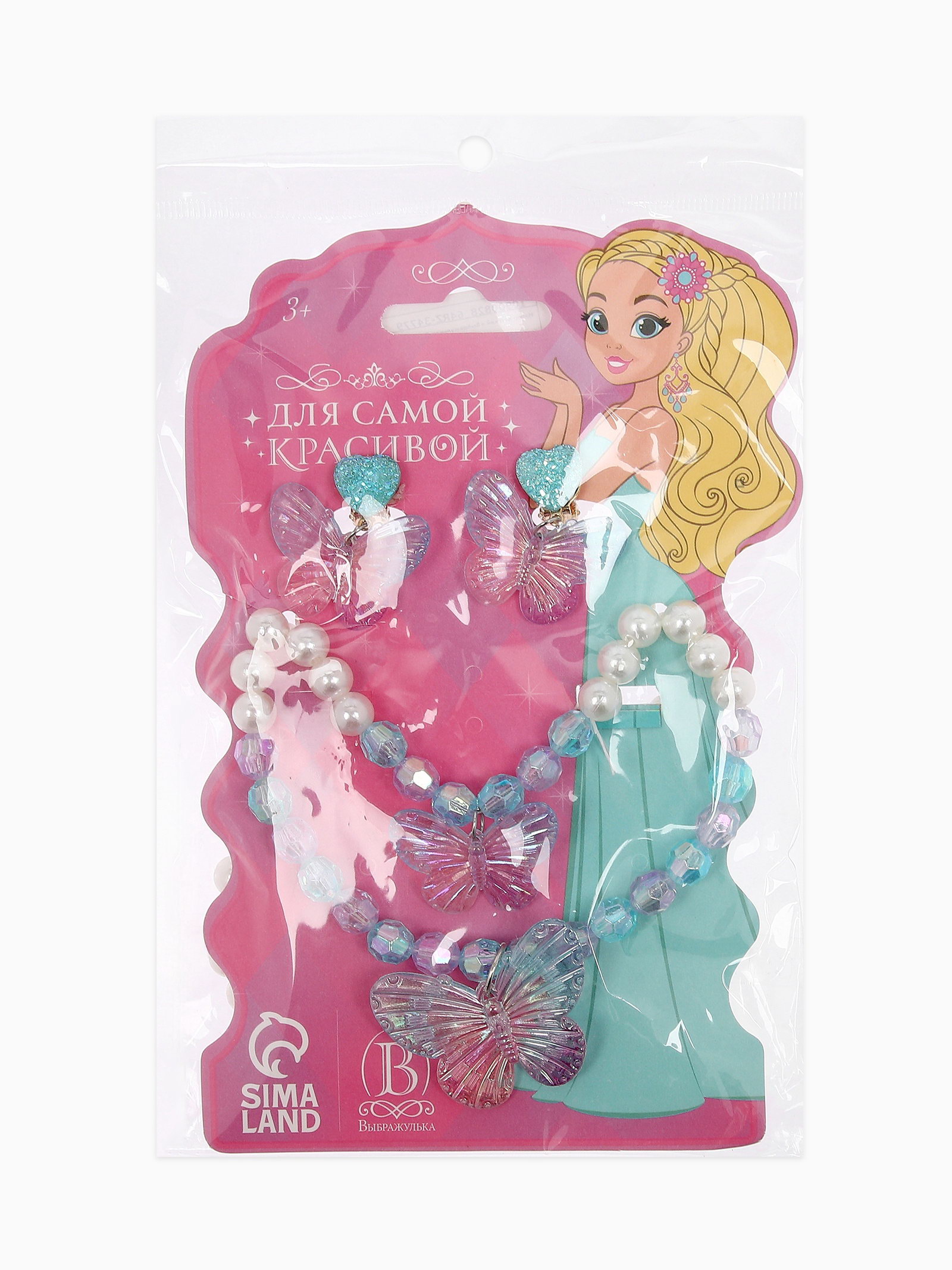 Длина, см: 6, 40 Цвет: Белый, Голубой Тематика: Жемчужная, Насекомые Размер упаковки: 12 x 0.3 x 17 см. tnved: 7117900000 Для кого: Для девочки В наборе, шт.: 3 Состав набора: Бусы + Браслет + Клипсы Цвет фурнитуры: Золотой Ваша маленькая принцесса полюбит дарить стиль своим нарядам с милым детским набором украшений "Выбражулька". Девчачий комплект включает два украшения в едином розовом цвете: нежные бусы и небольшой браслет, выполненные в виде веселого бантика. Особенности набора:
