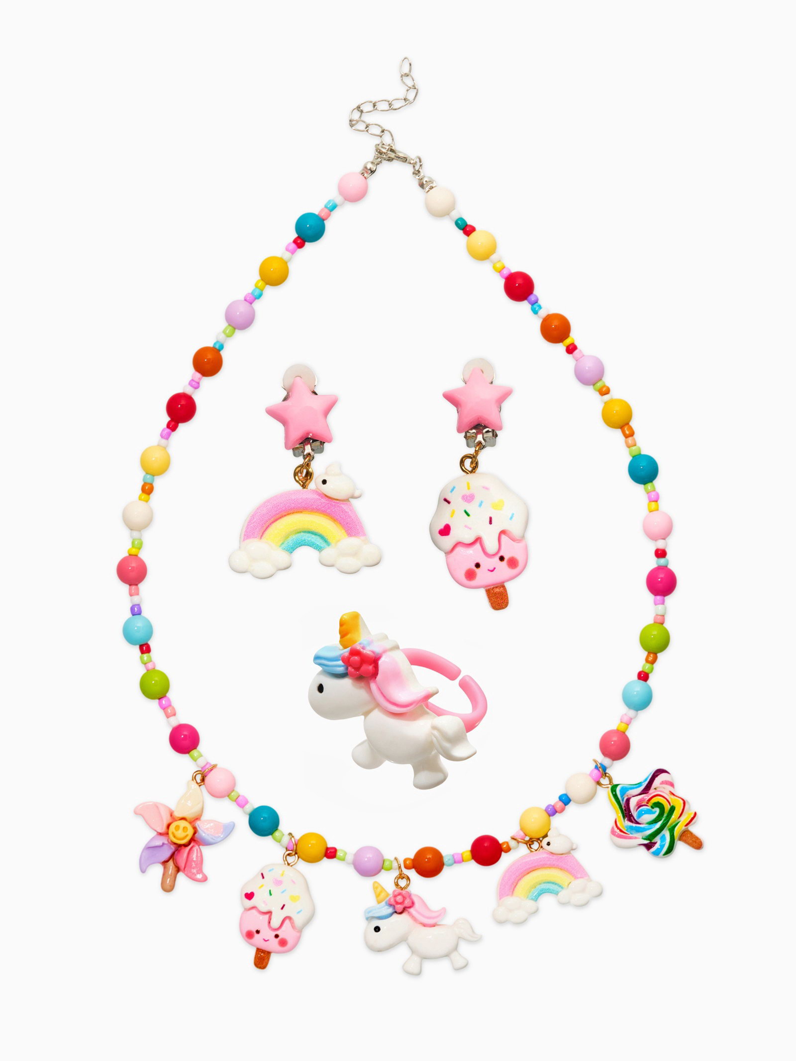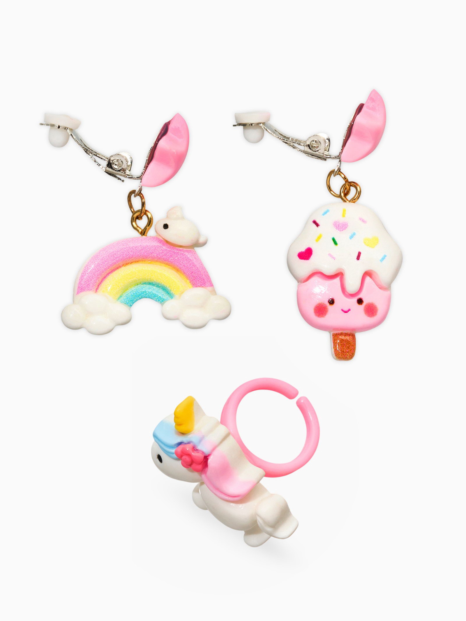 Набор детских украшений "Выбражулька. Единорог", сладости, 3 предмета: клипсы, кольцо, бусы, 2x40x2 см., Выбражулька, Китай