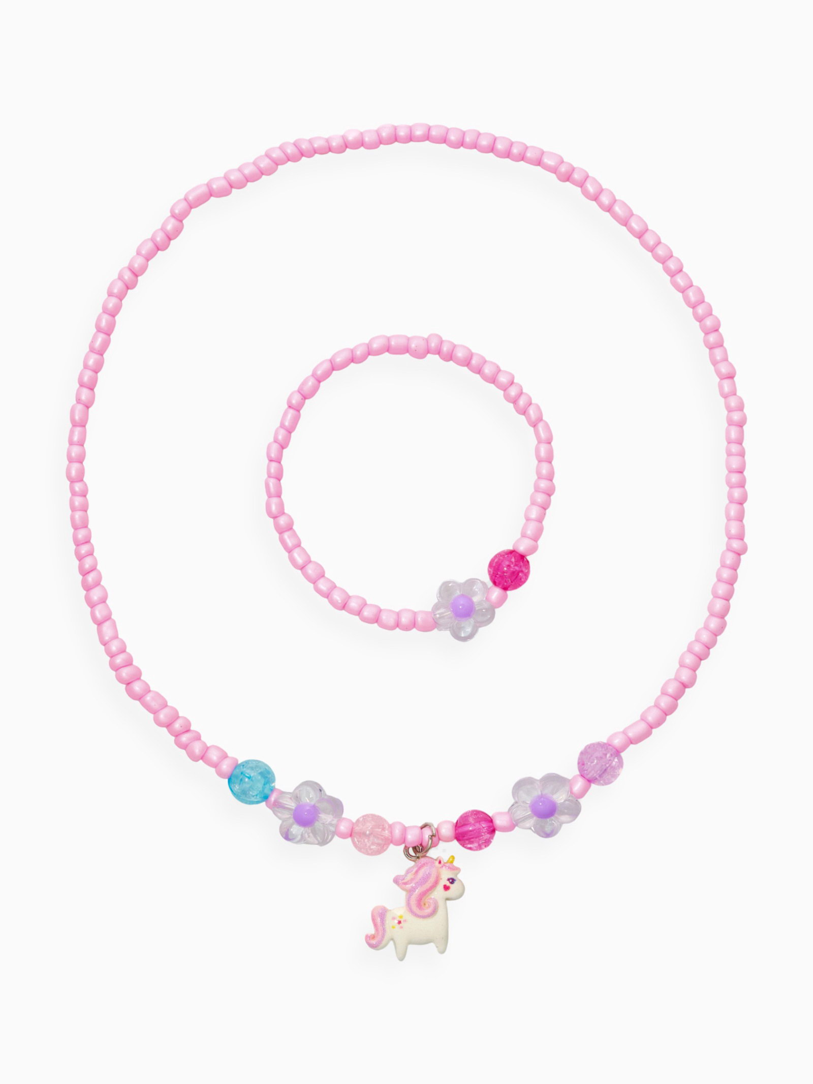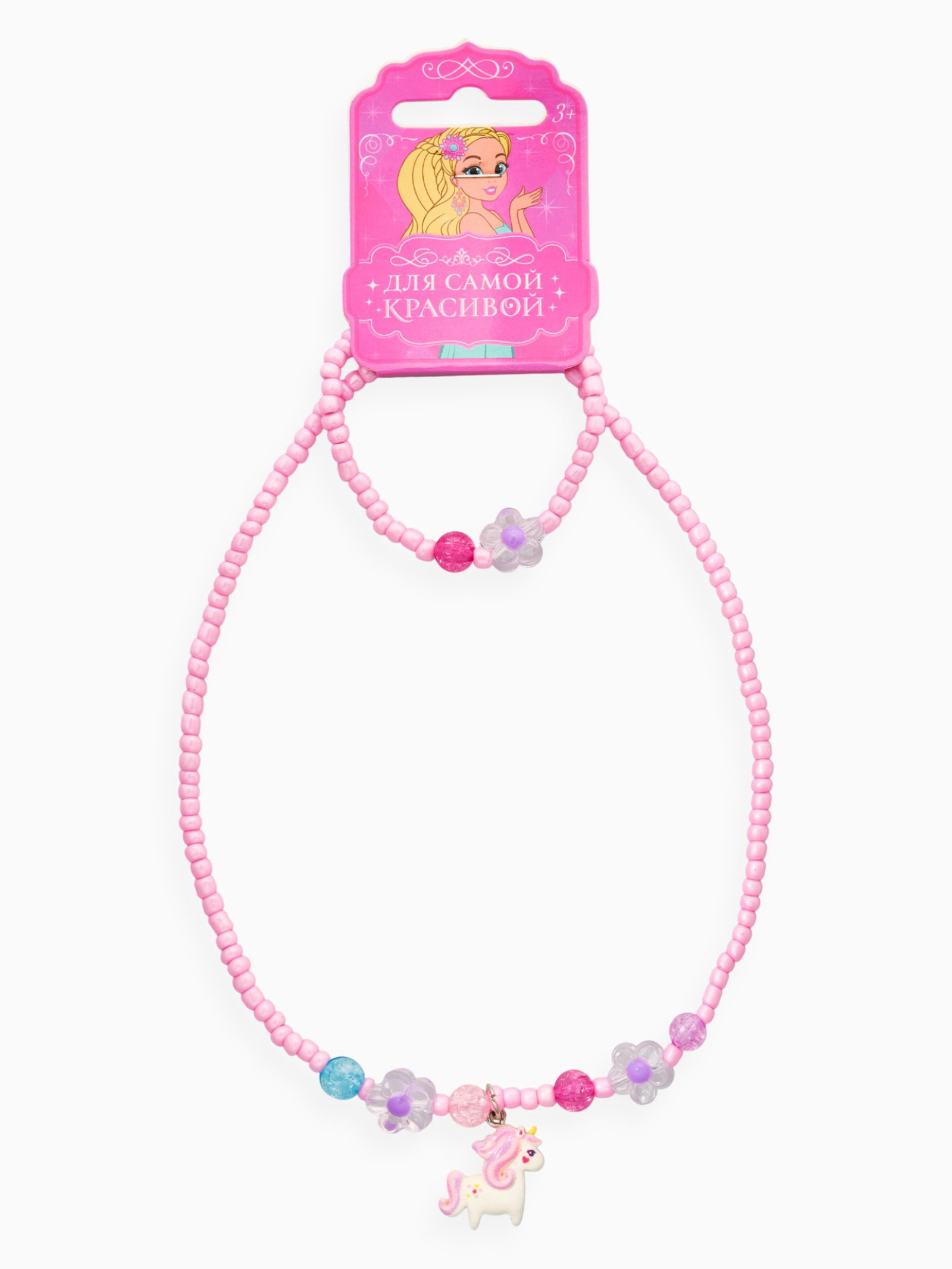 Набор детский "Выбражулька. Единорог, цветы", 2 предмета: бусы, браслет, розовый, 5x40x1 см., Выбражулька, Китай