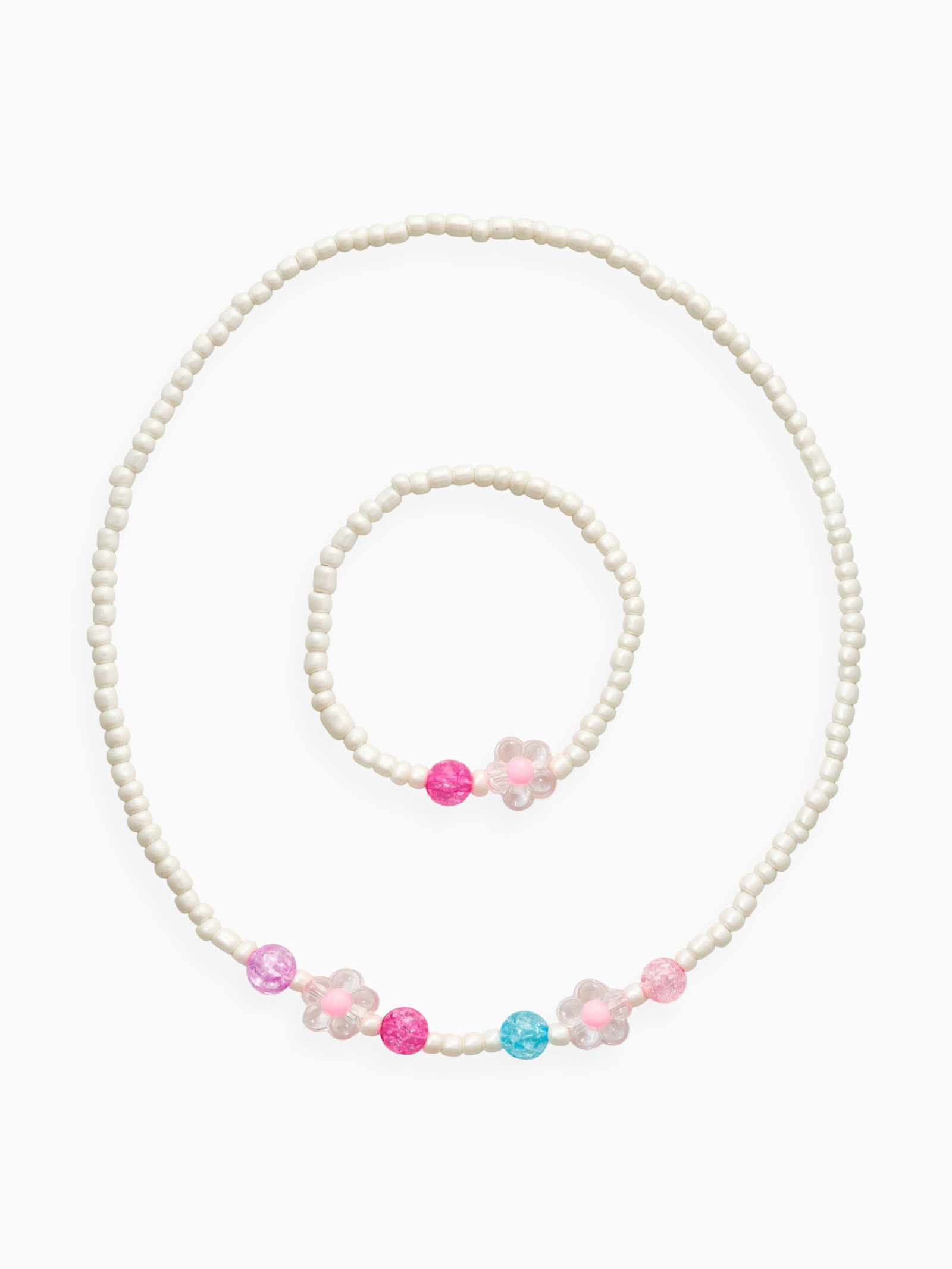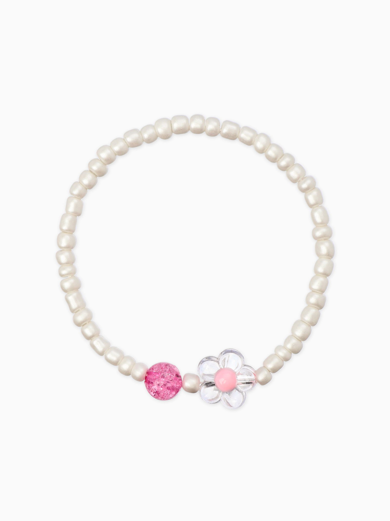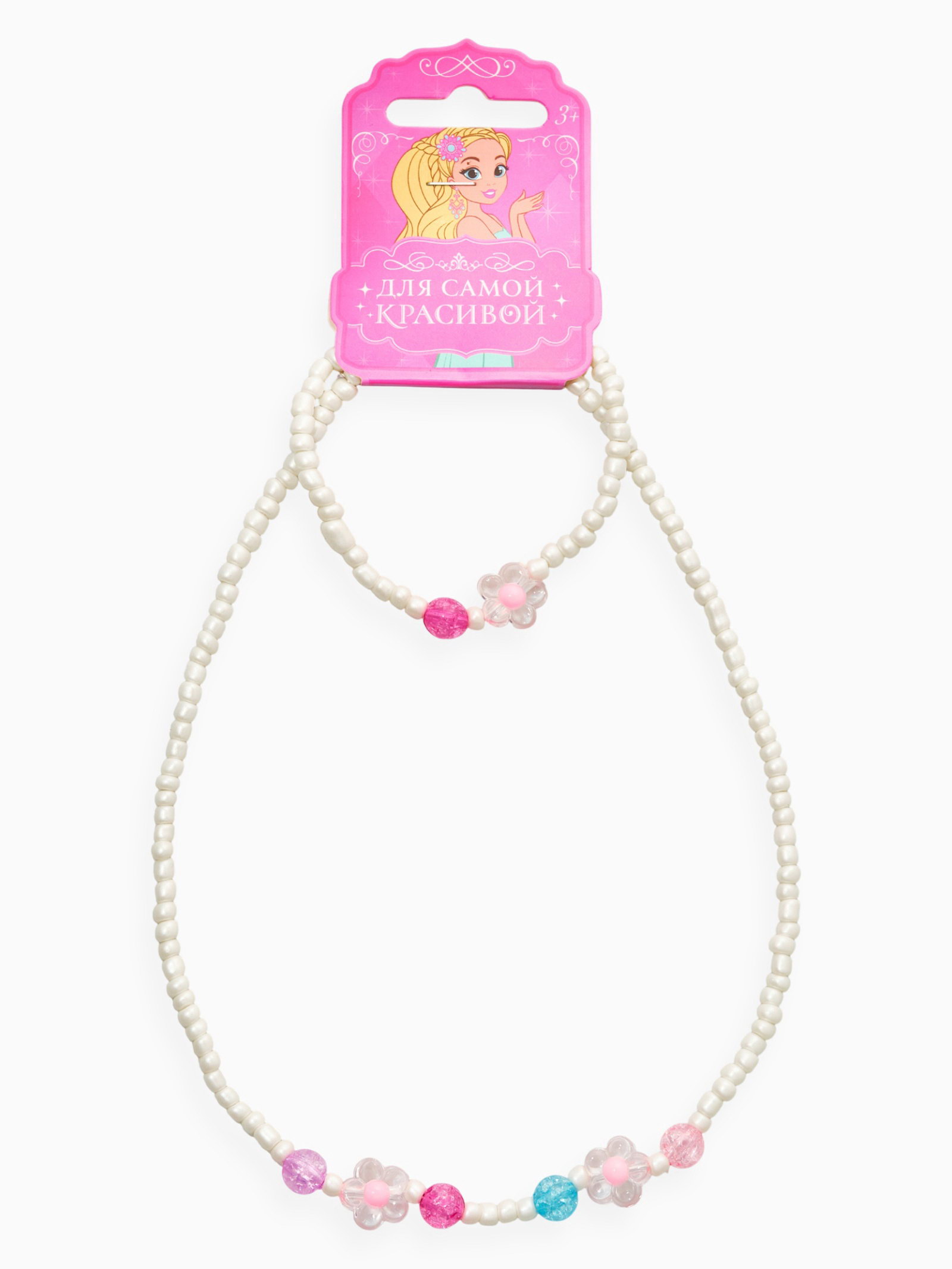 Набор детский "Выбражулька. Цветы, жемчуг", 2 предмета: бусы, браслет, бело-розовый, 5x40x1 см., Выбражулька, Китай