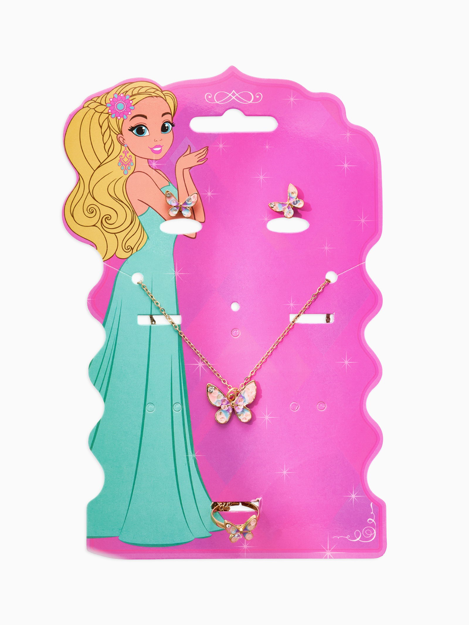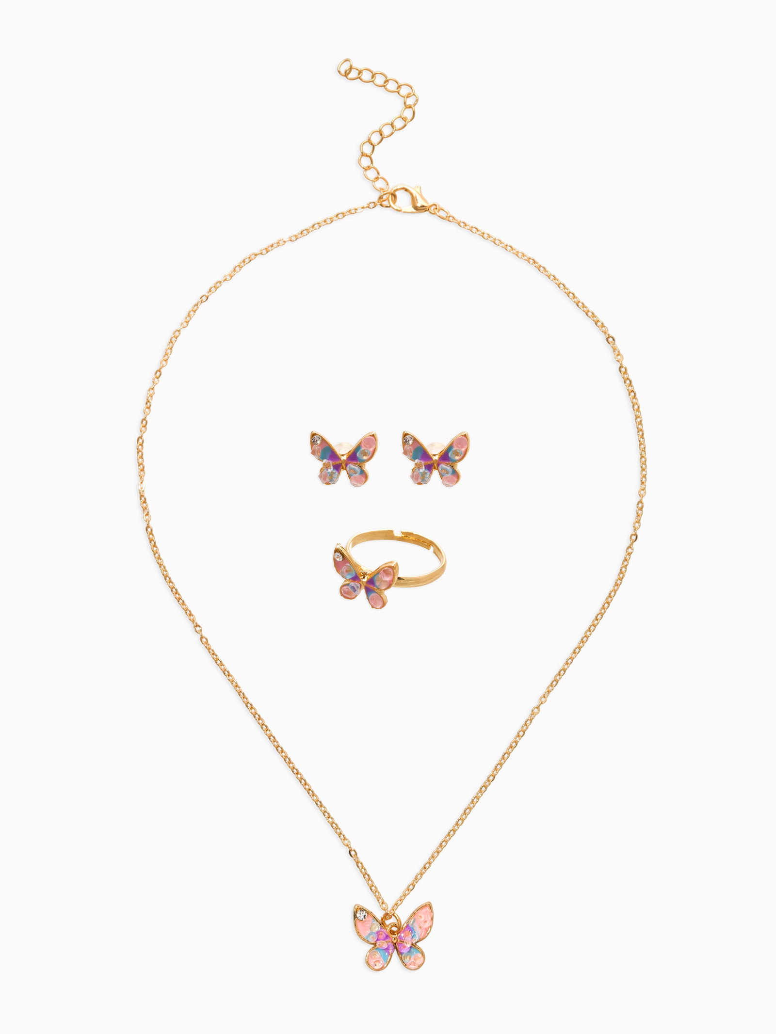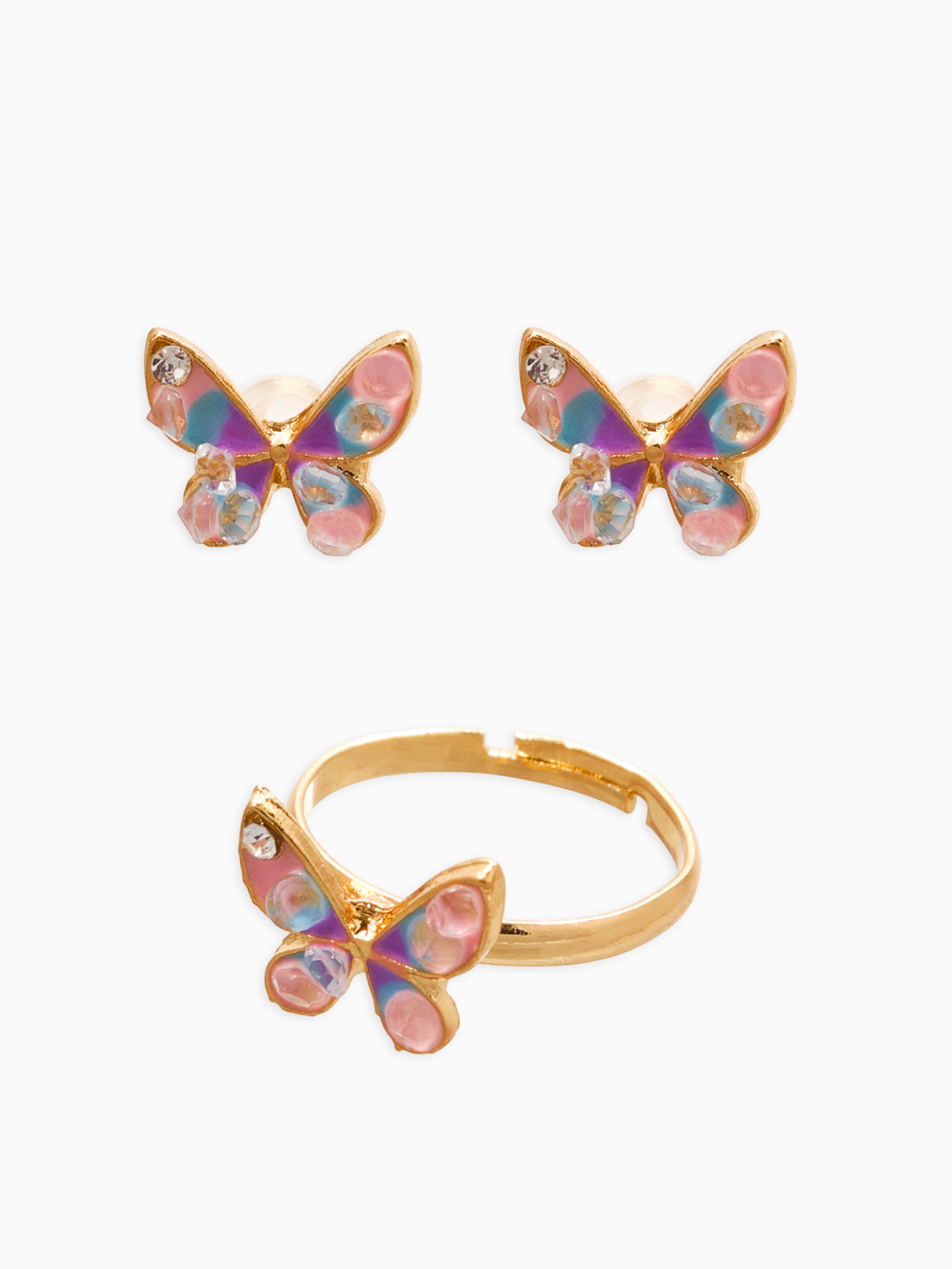 Набор детский "Выбражулька. Бабочка", 3 предмета: кулон, кольцо, серьги, разноцветный в золоте, 1.5x41.5x1 см., Выбражулька, Китай