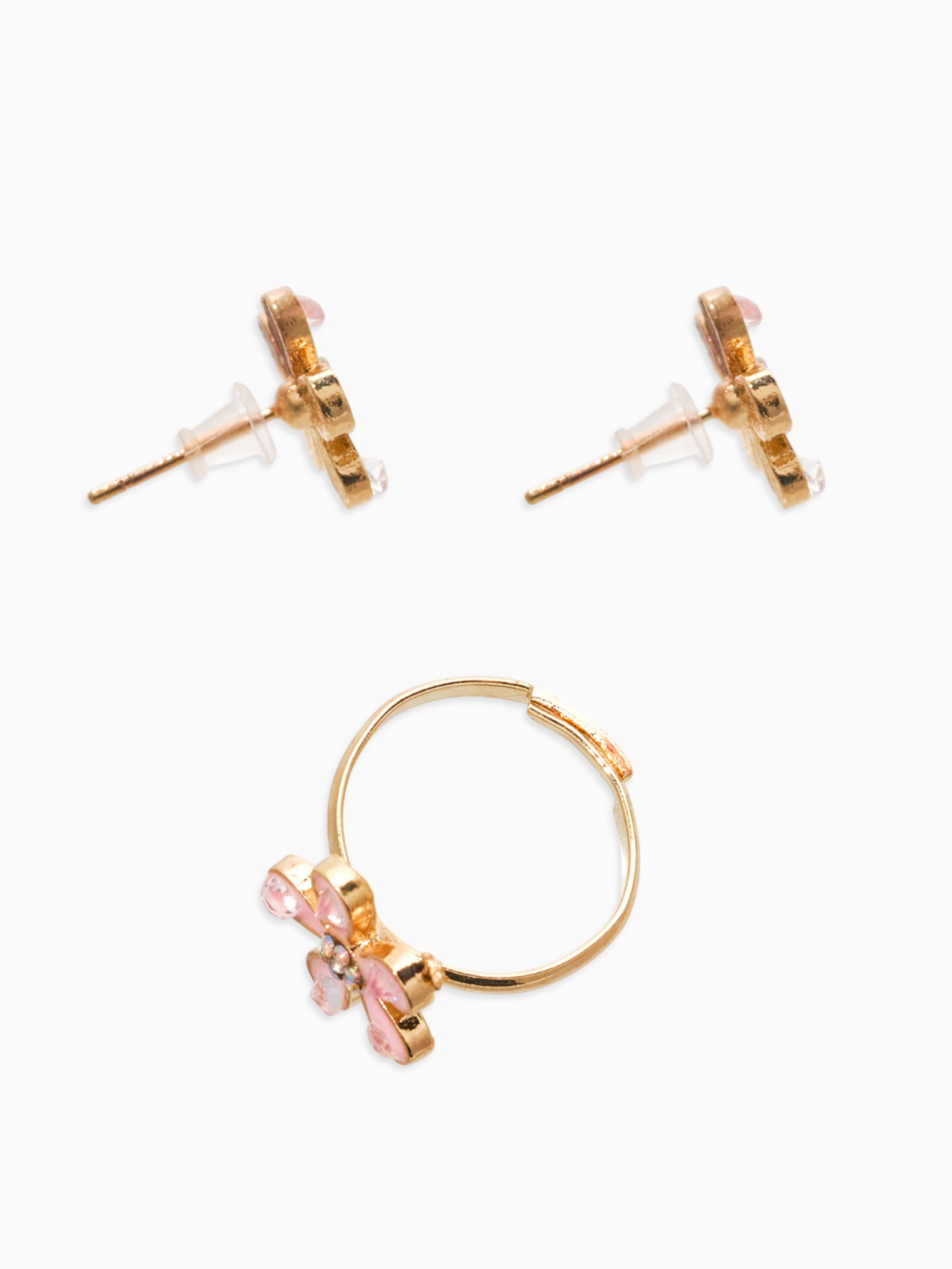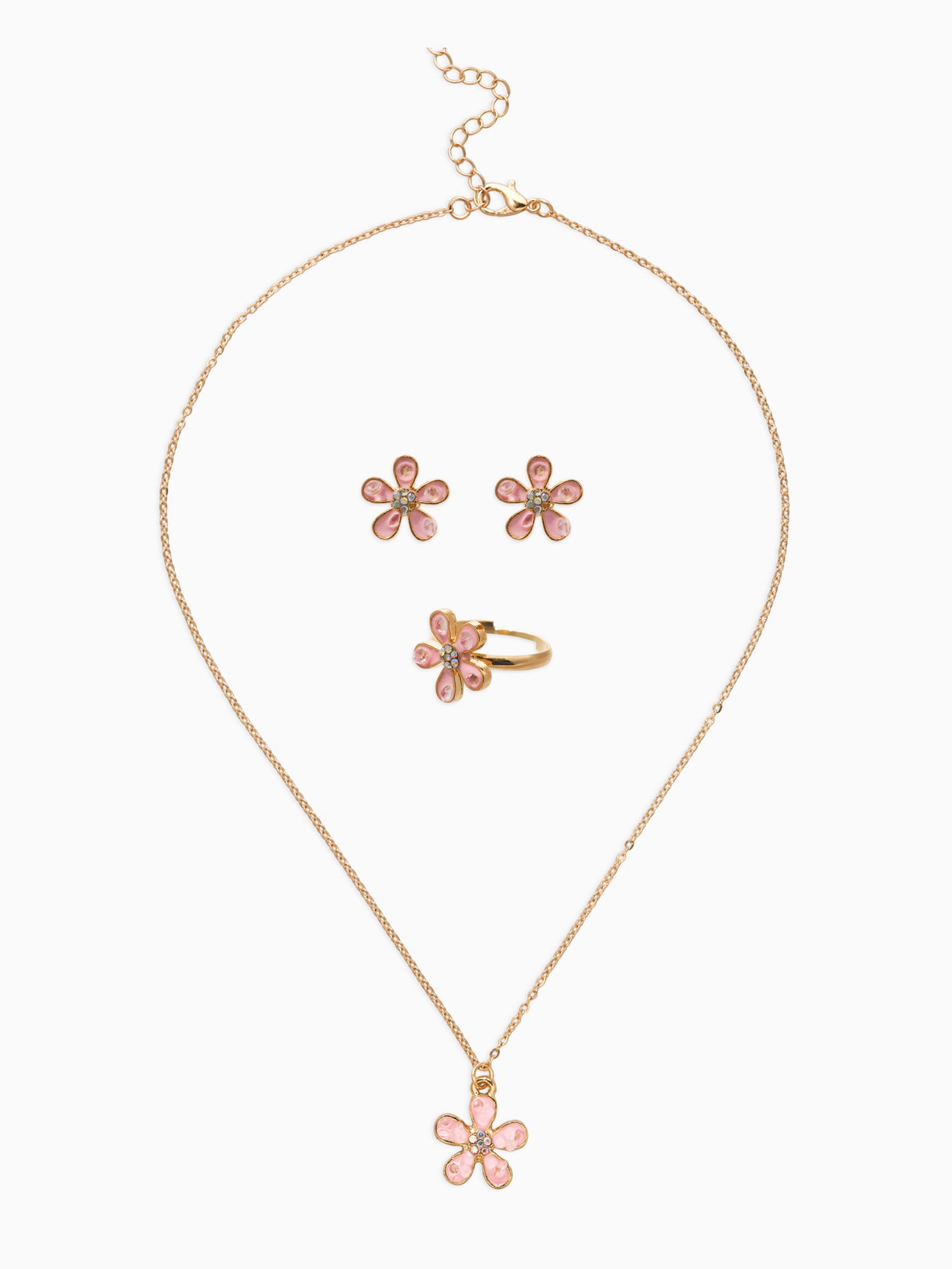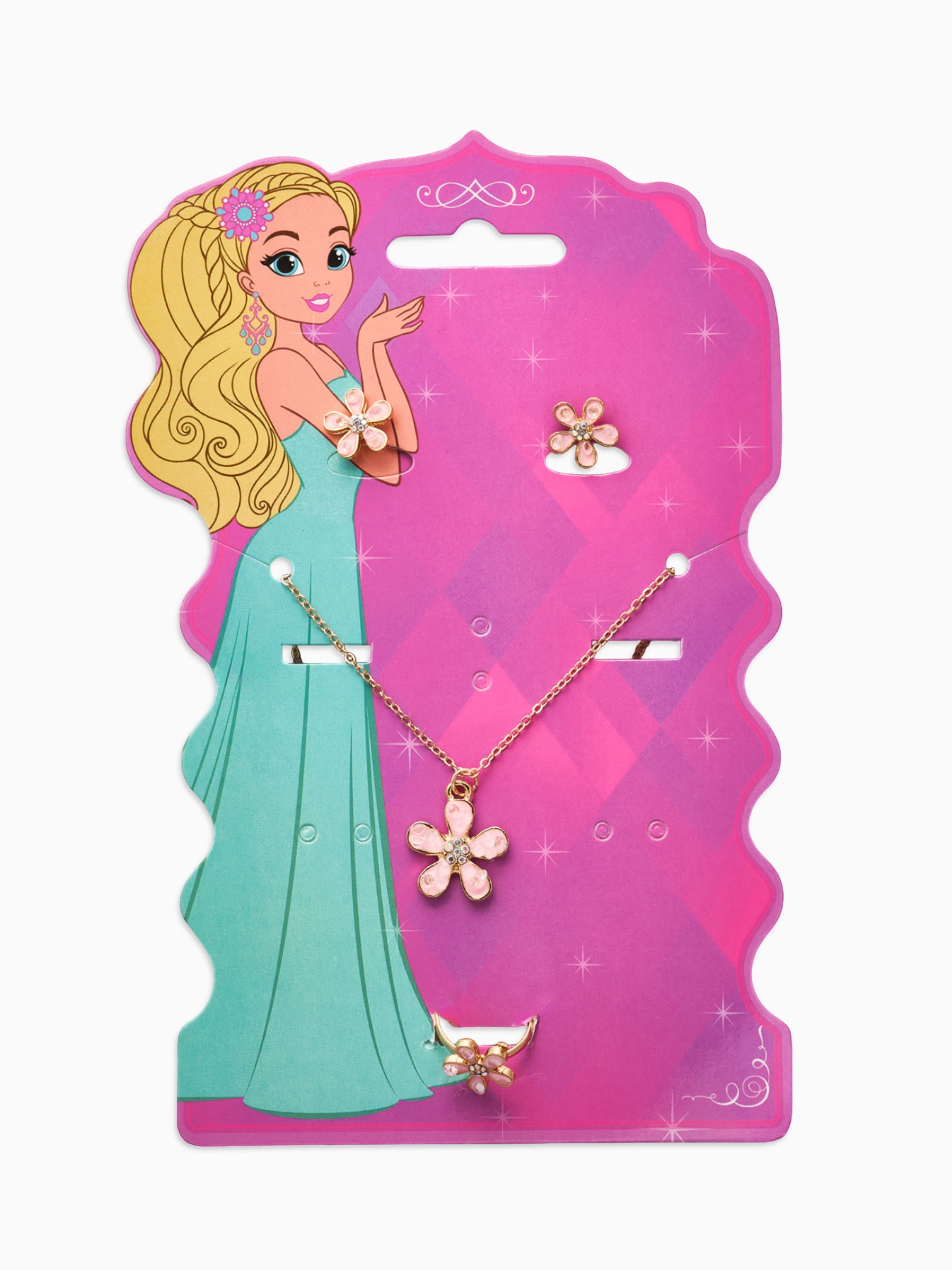 Набор детский "Выбражулька. Цветок", 3 предмета: кулон, кольцо, серьги, розовый в золоте, 1.5x41.5x1 см., Выбражулька, Китай