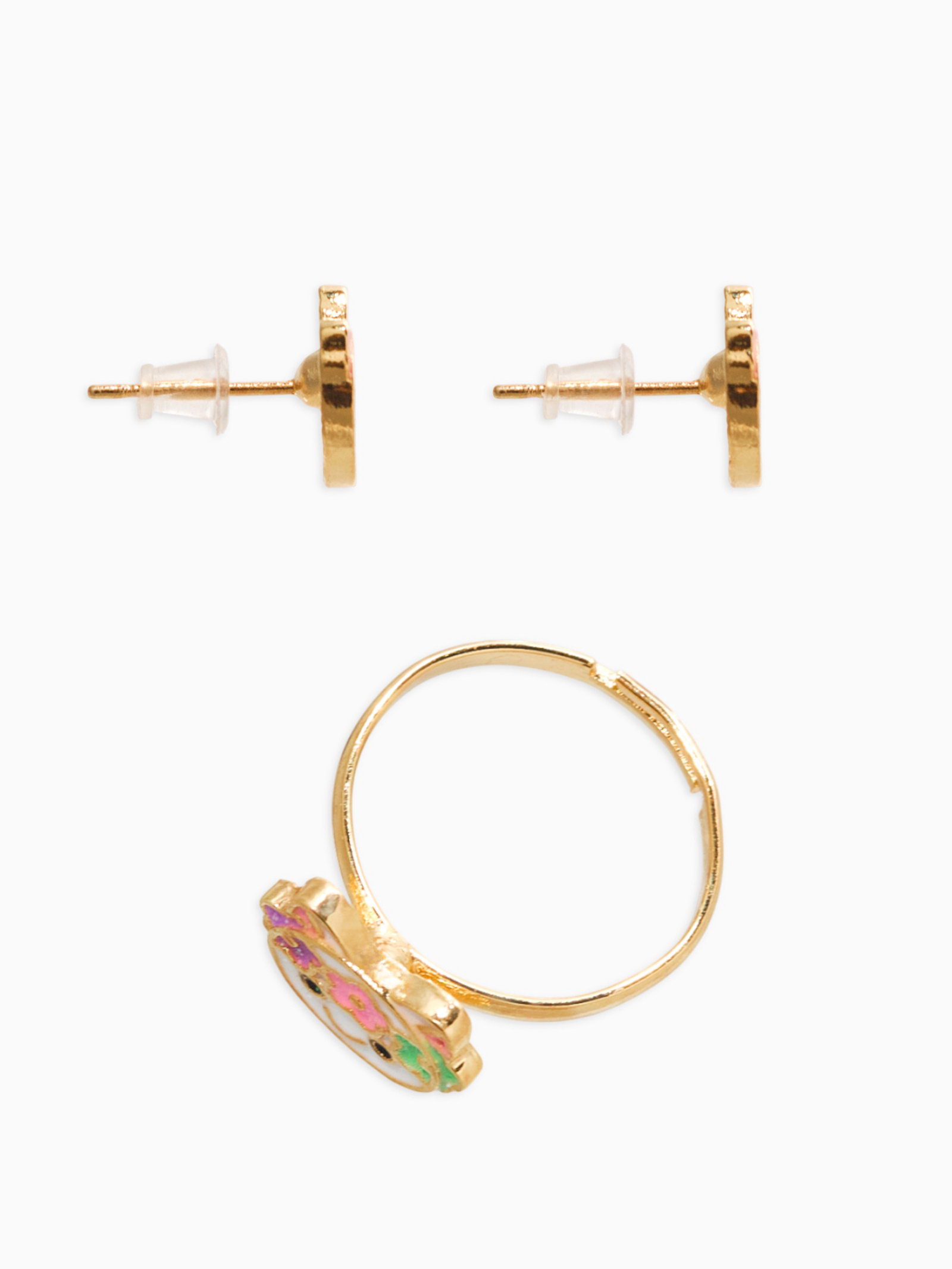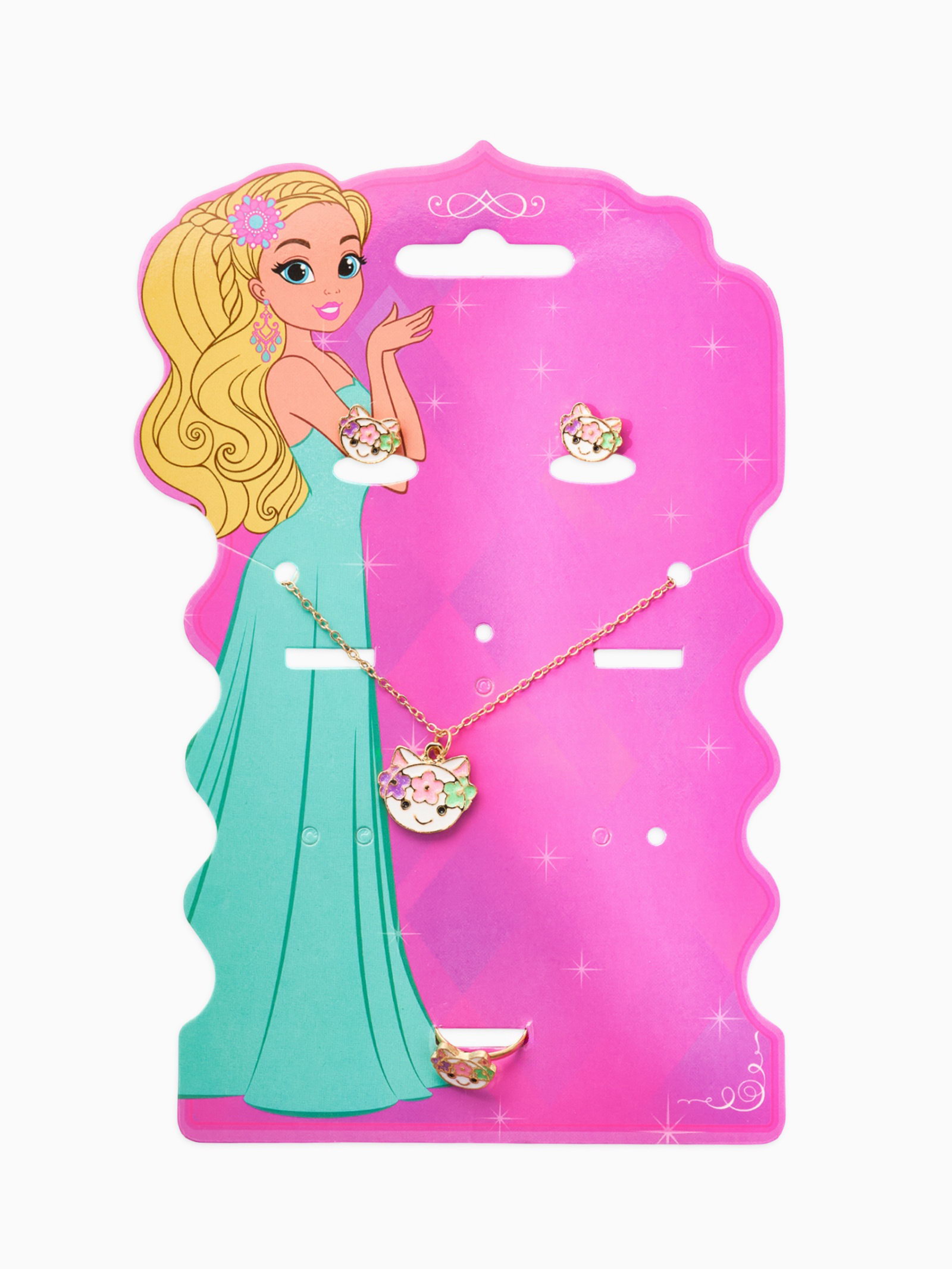 Набор детский "Выбражулька. Котик", 3 предмета: кулон, кольцо, серьги, разноцветный в золоте, 1.5x41.5x1 см., Выбражулька, Китай