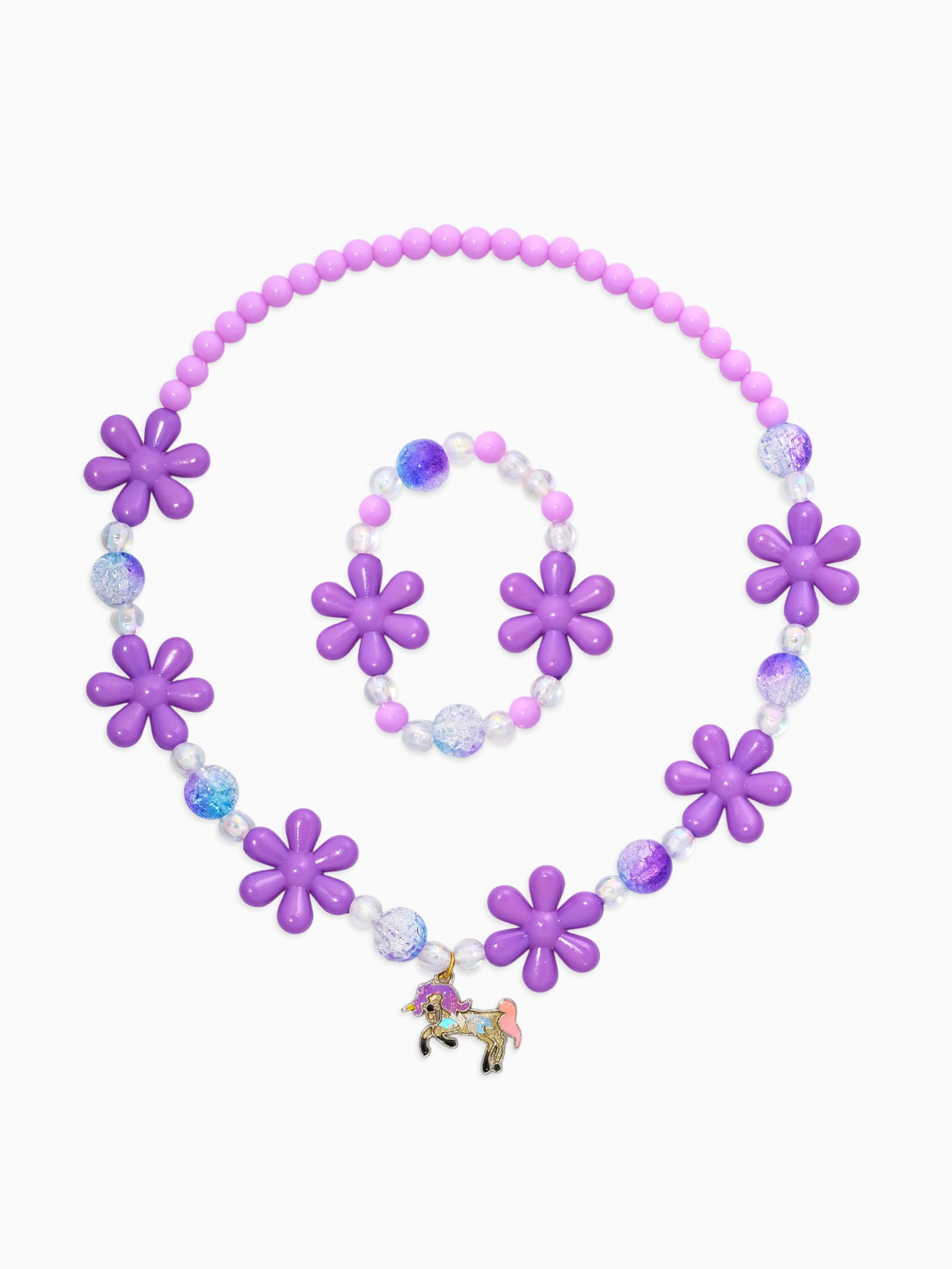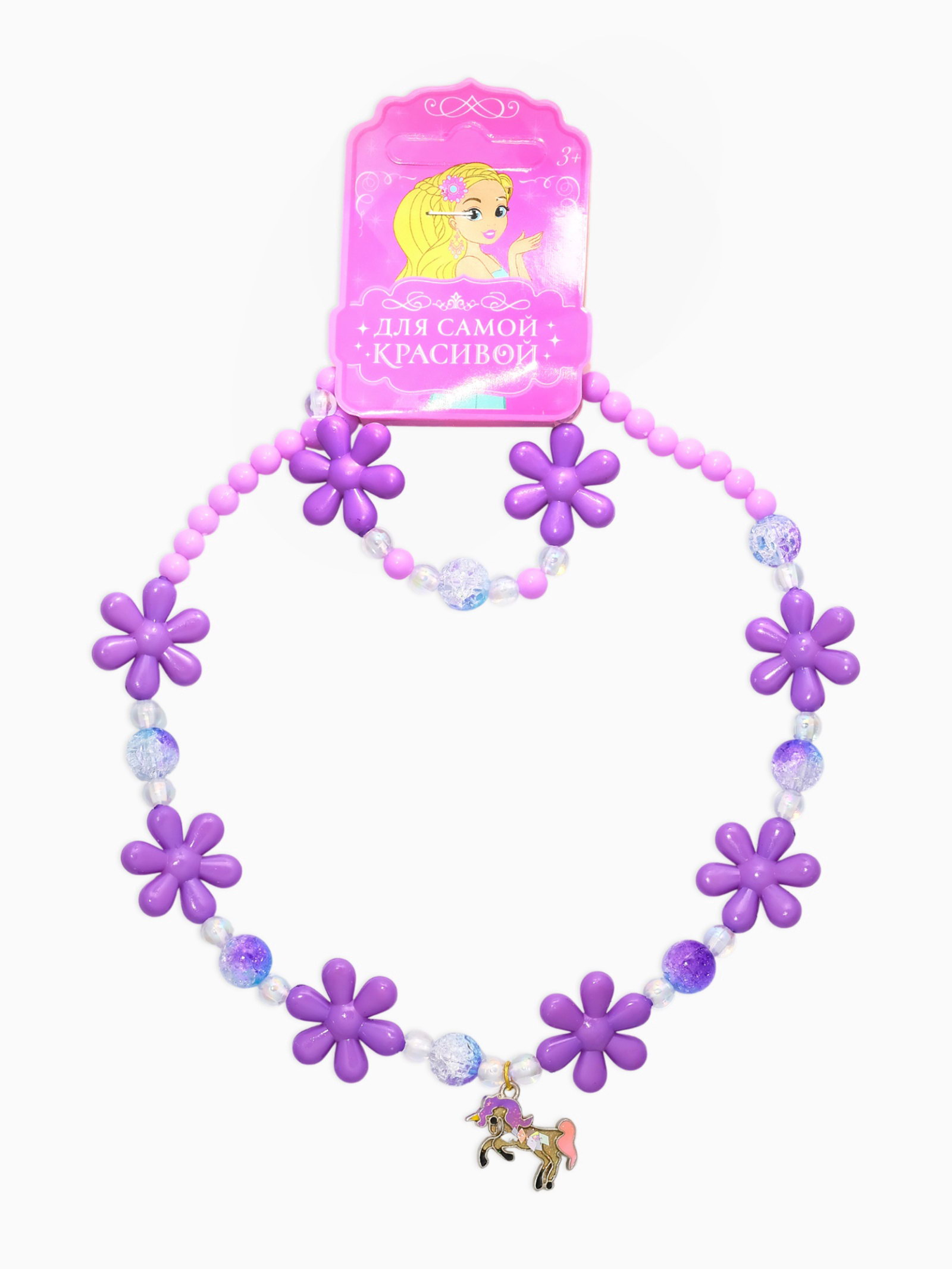Набор детский "Выбражулька. Единорог", 2 предмета: бусы, браслет, фиолетовый, 4.5x42.5x3 см., Выбражулька, Китай