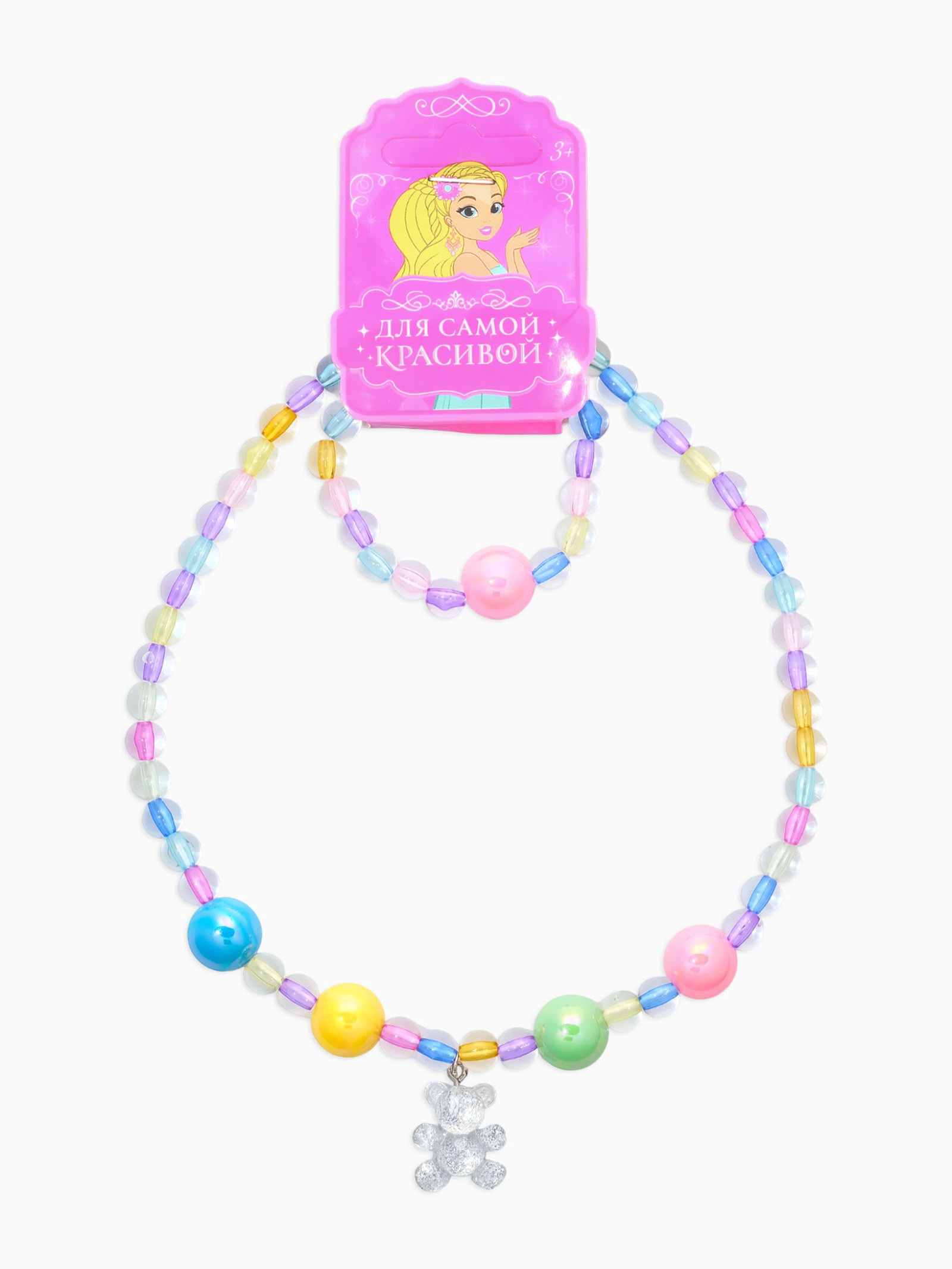 Набор детский "Выбражулька. Мишка мармеладный", 2 предмета: бусы, браслет, цветной, 6x40x1.2 см., Выбражулька, Китай