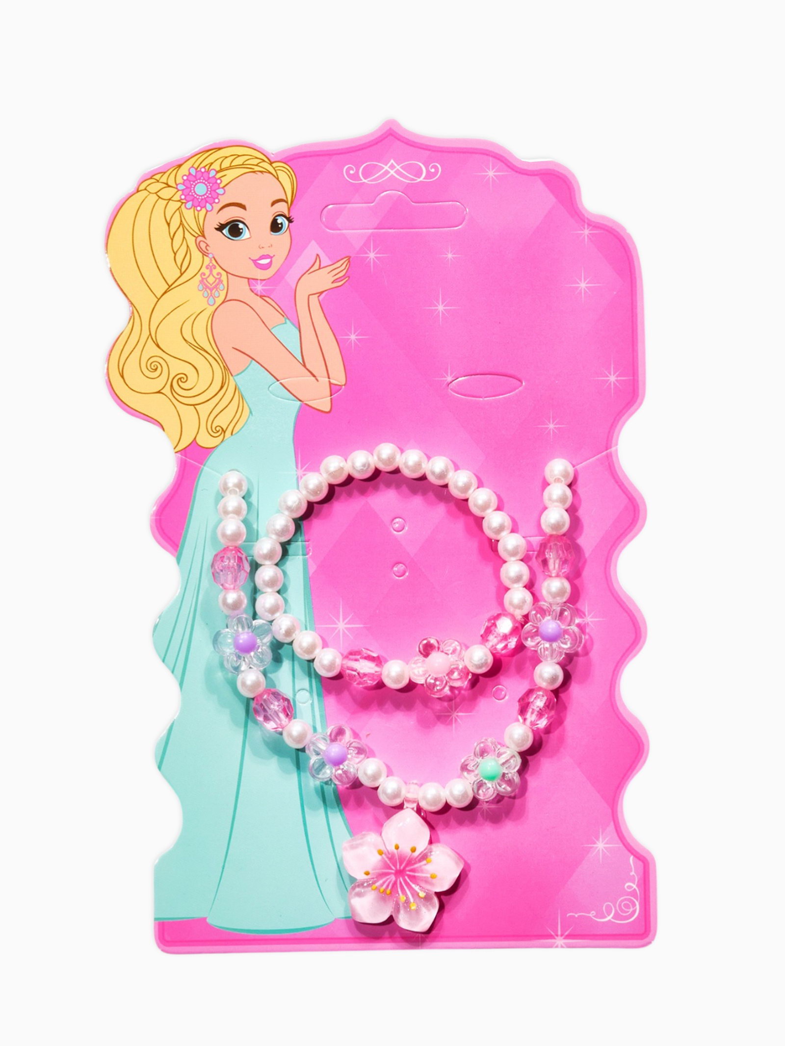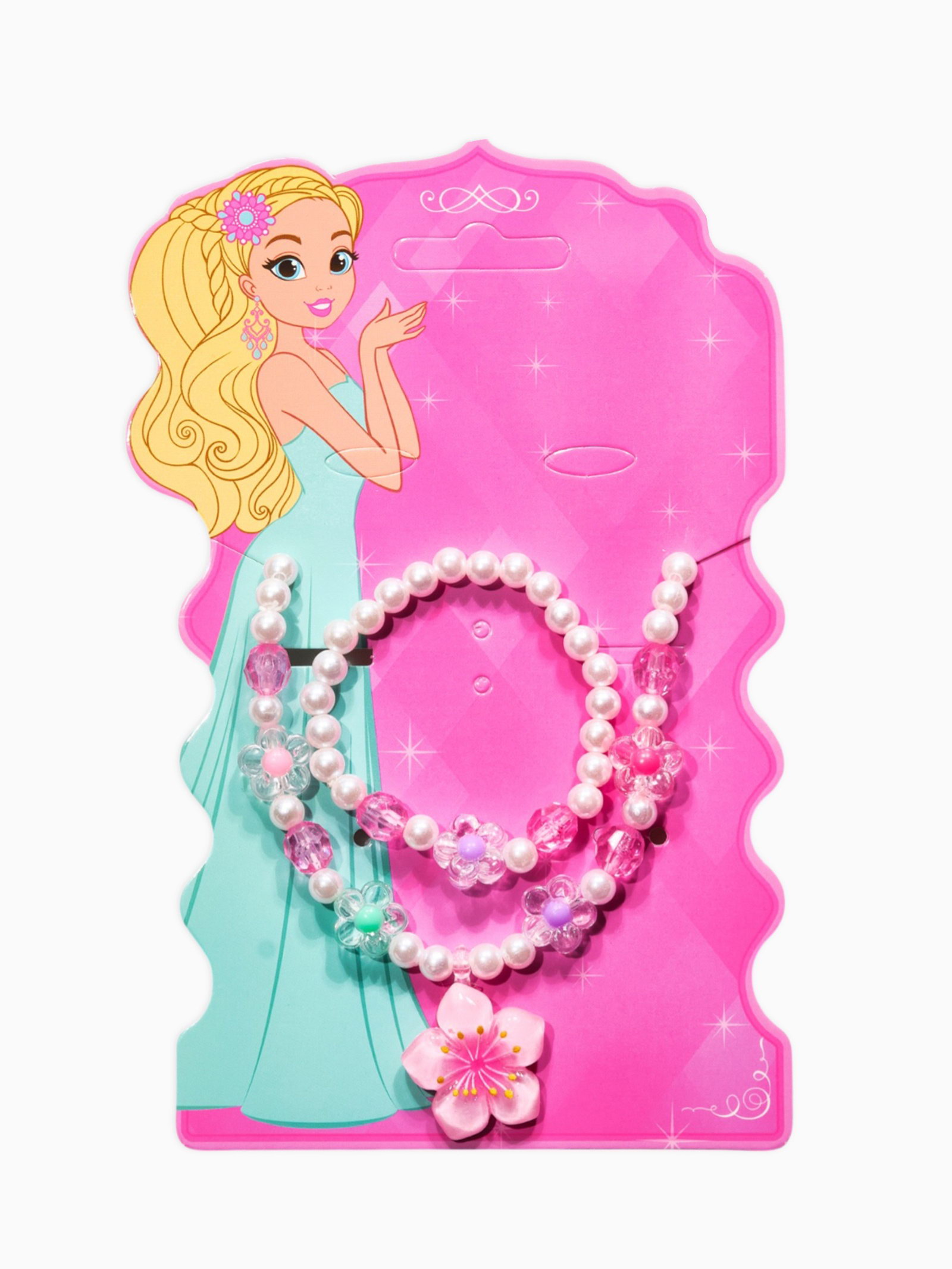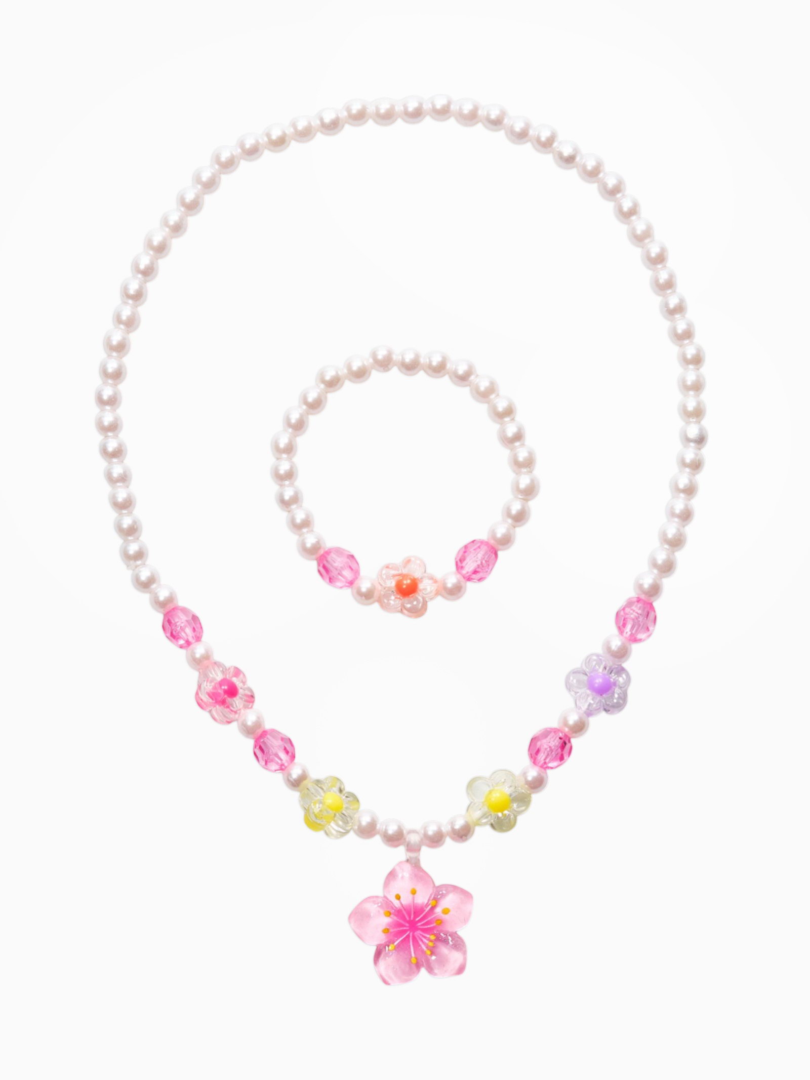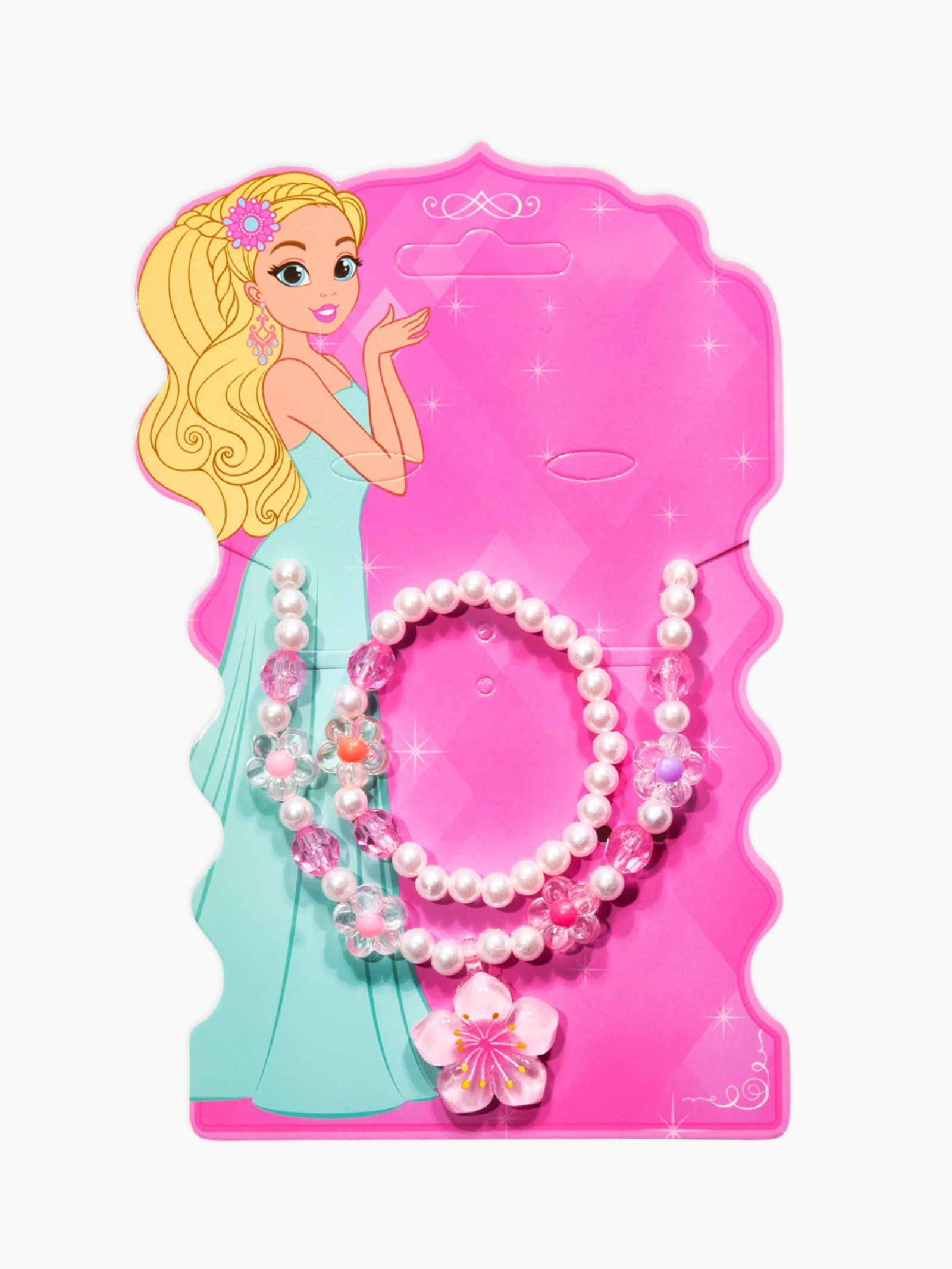 Набор детский "Выбражулька. Цветок и жемчуг", 3 предмета: бусы, браслет, кольцо безразмерное, разноцветный, 6x40x1 см., Выбражулька, Китай