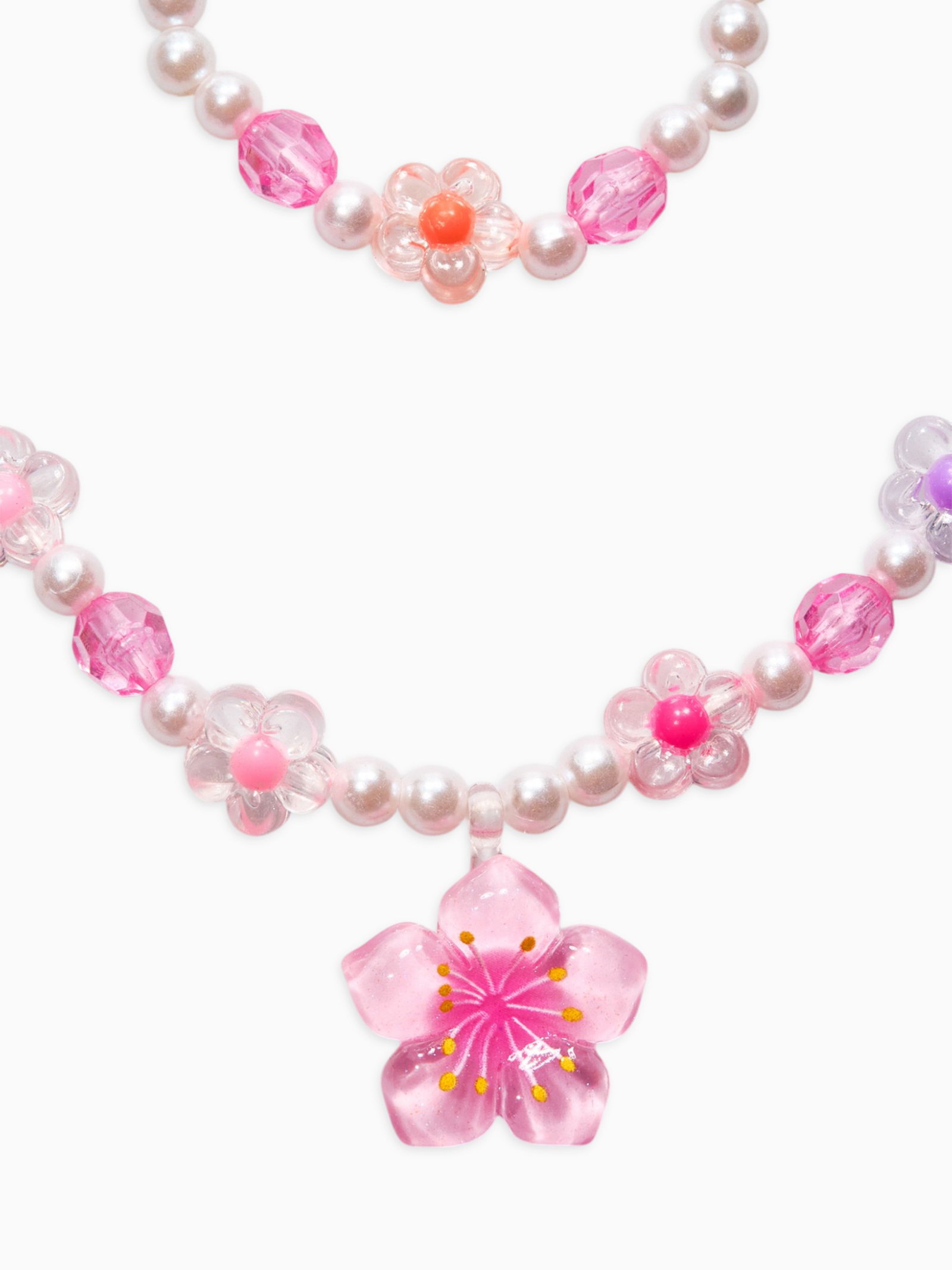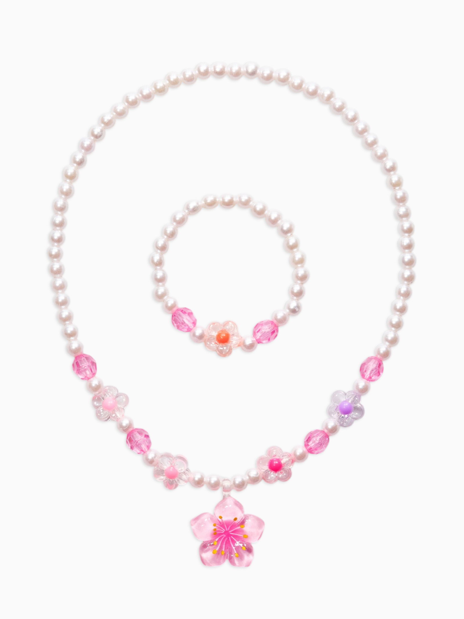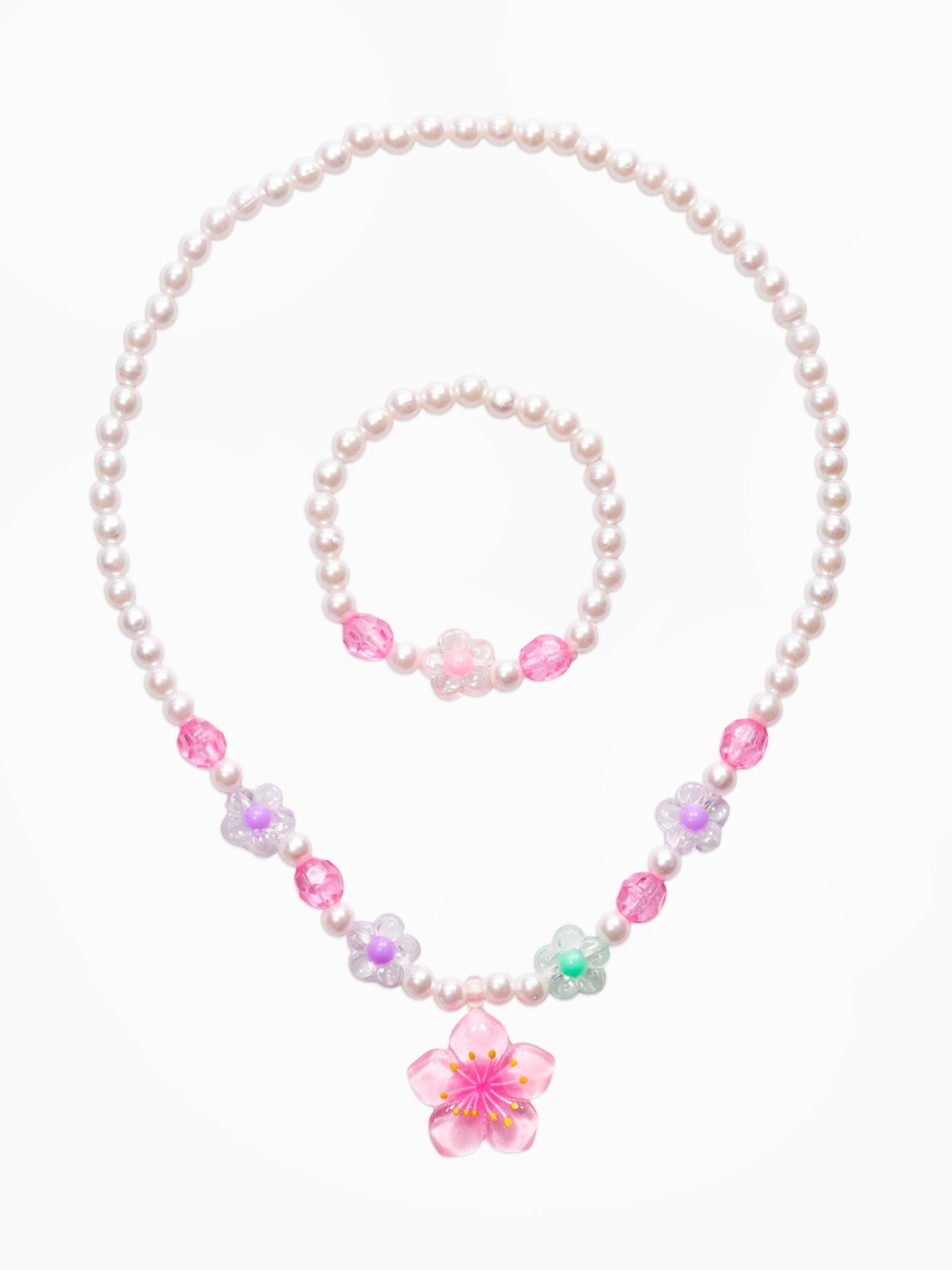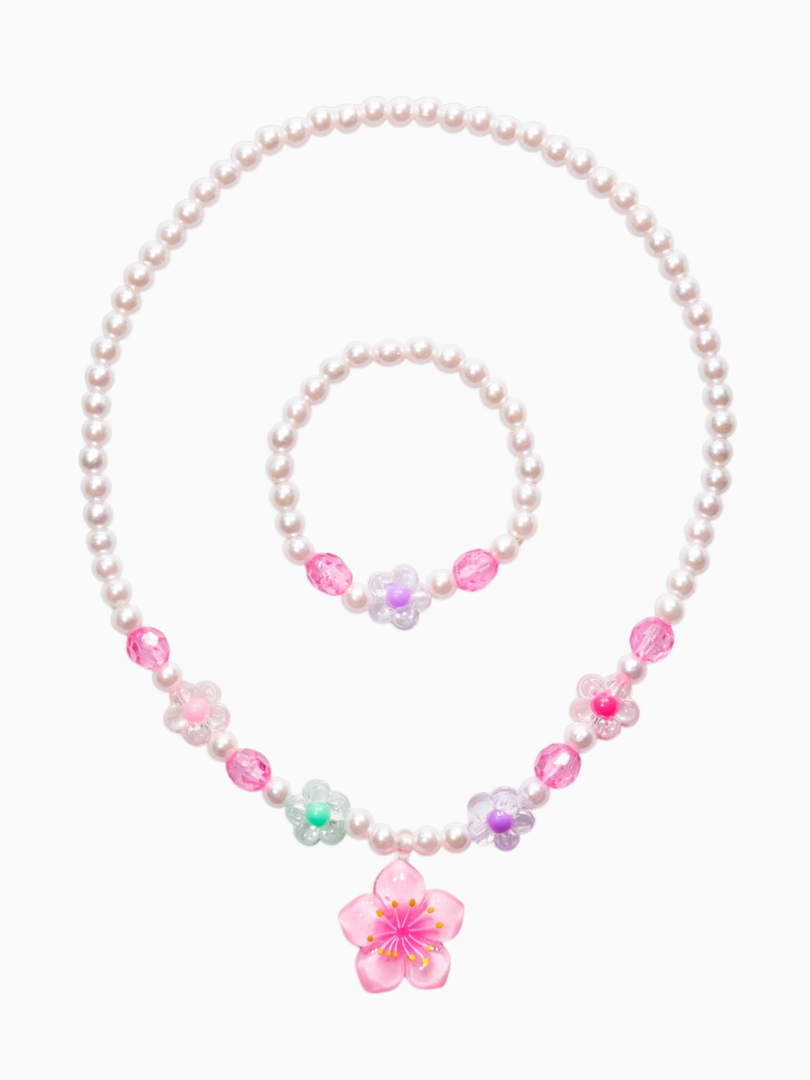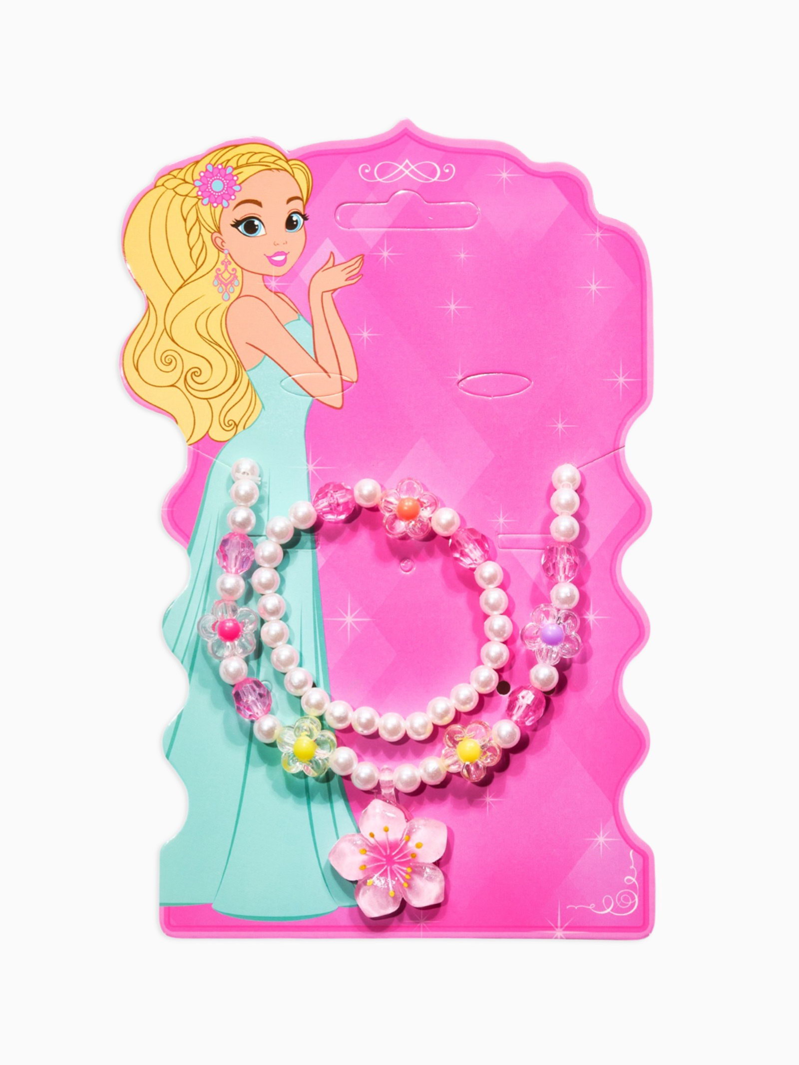 Набор детский "Выбражулька. Цветок и жемчуг", 3 предмета: бусы, браслет, кольцо безразмерное, разноцветный, 6x40x1 см., Выбражулька, Китай