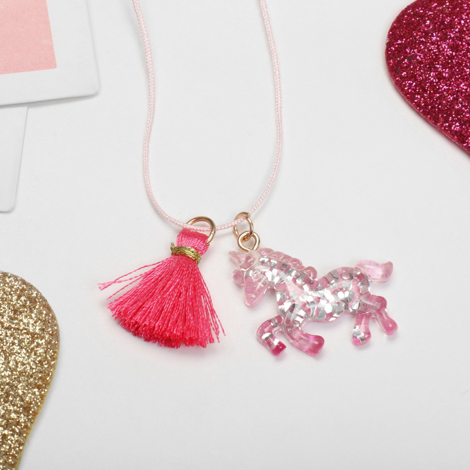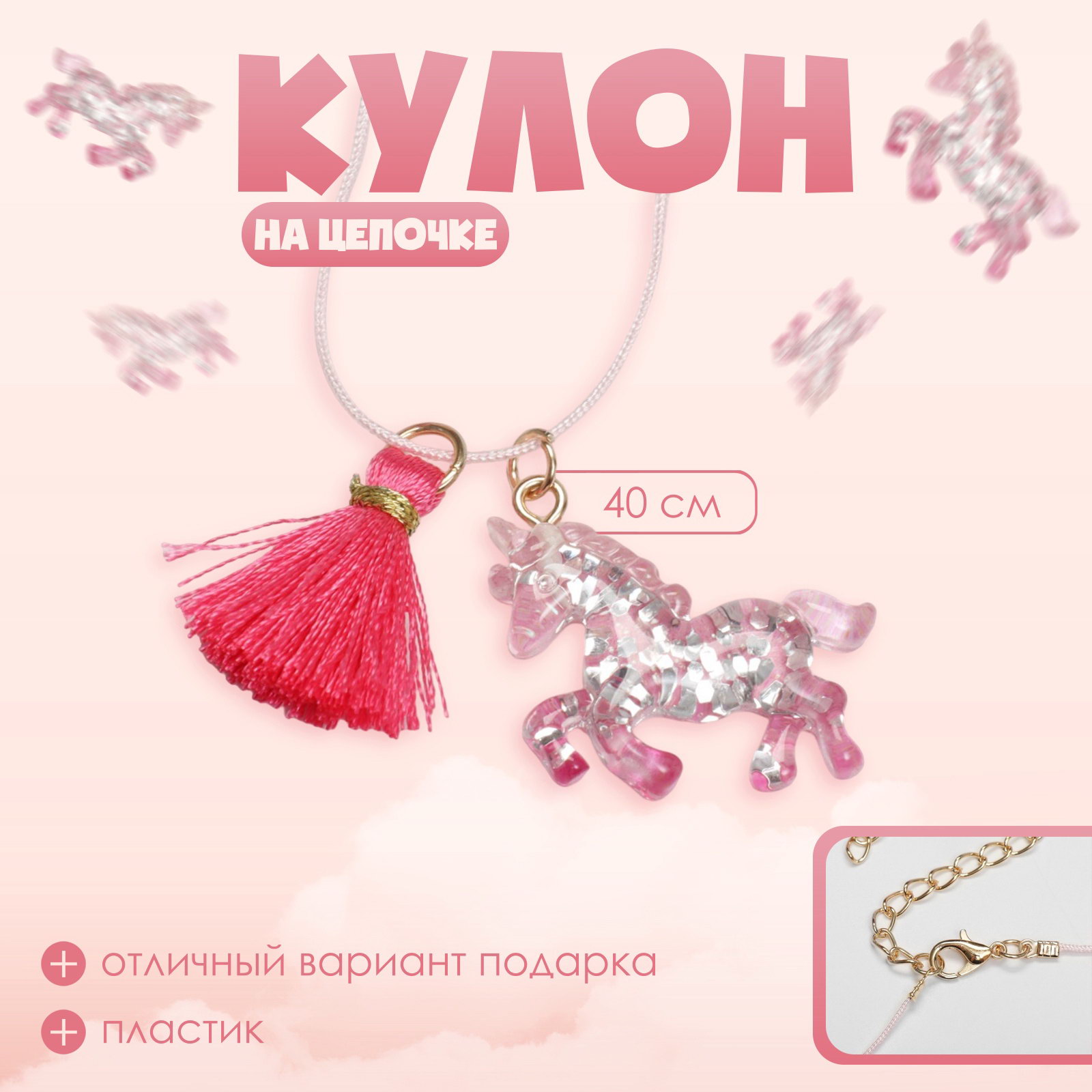 Кулон детский "Единорог", с кисточкой, розовый, 3.5x40x2.5 см., Выбражулька, Китай