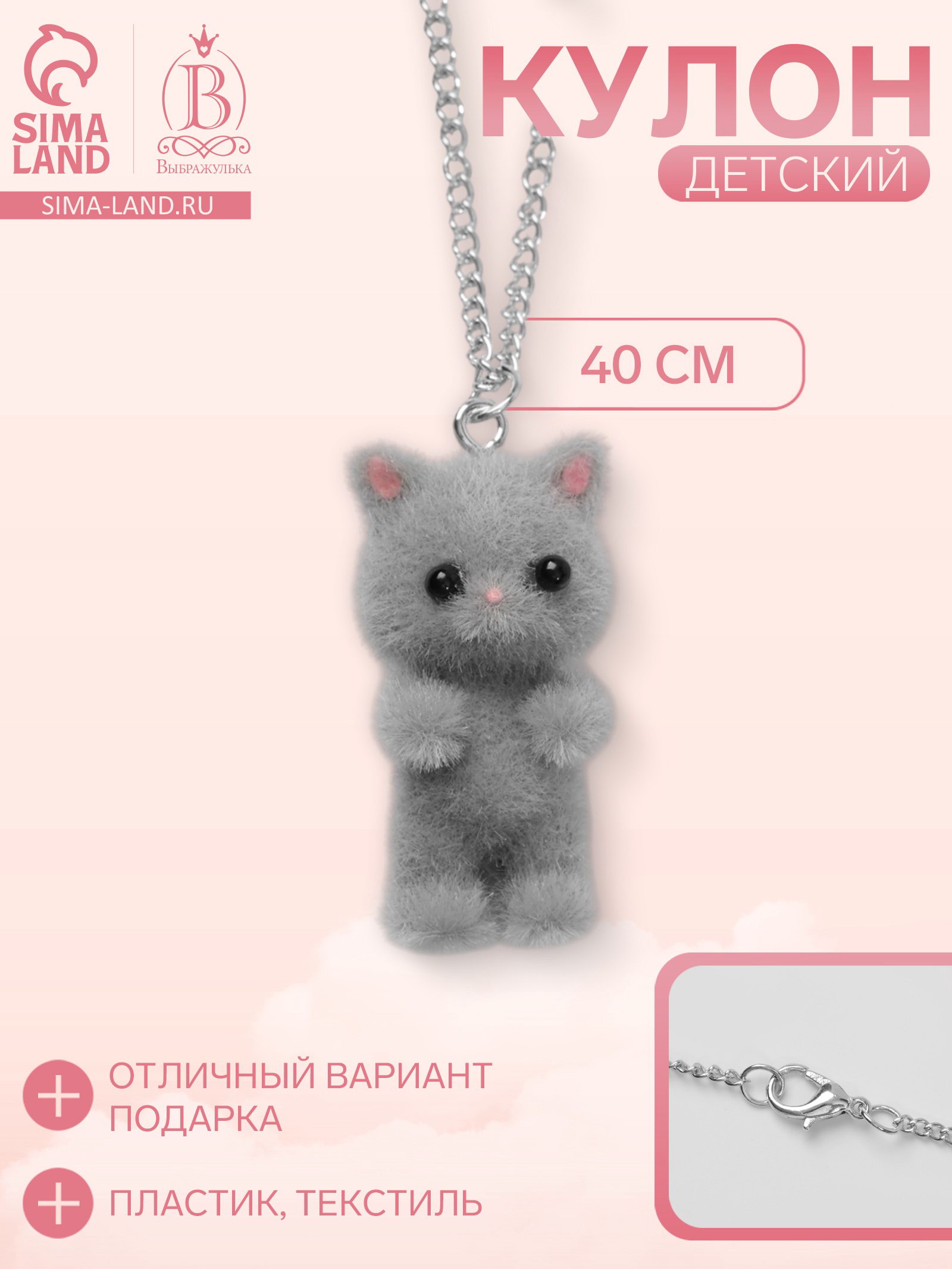 Кулон детский "Выбражулька. Котёнок", серый в серебре, 1.9x40x3.4 см., Выбражулька, Китай