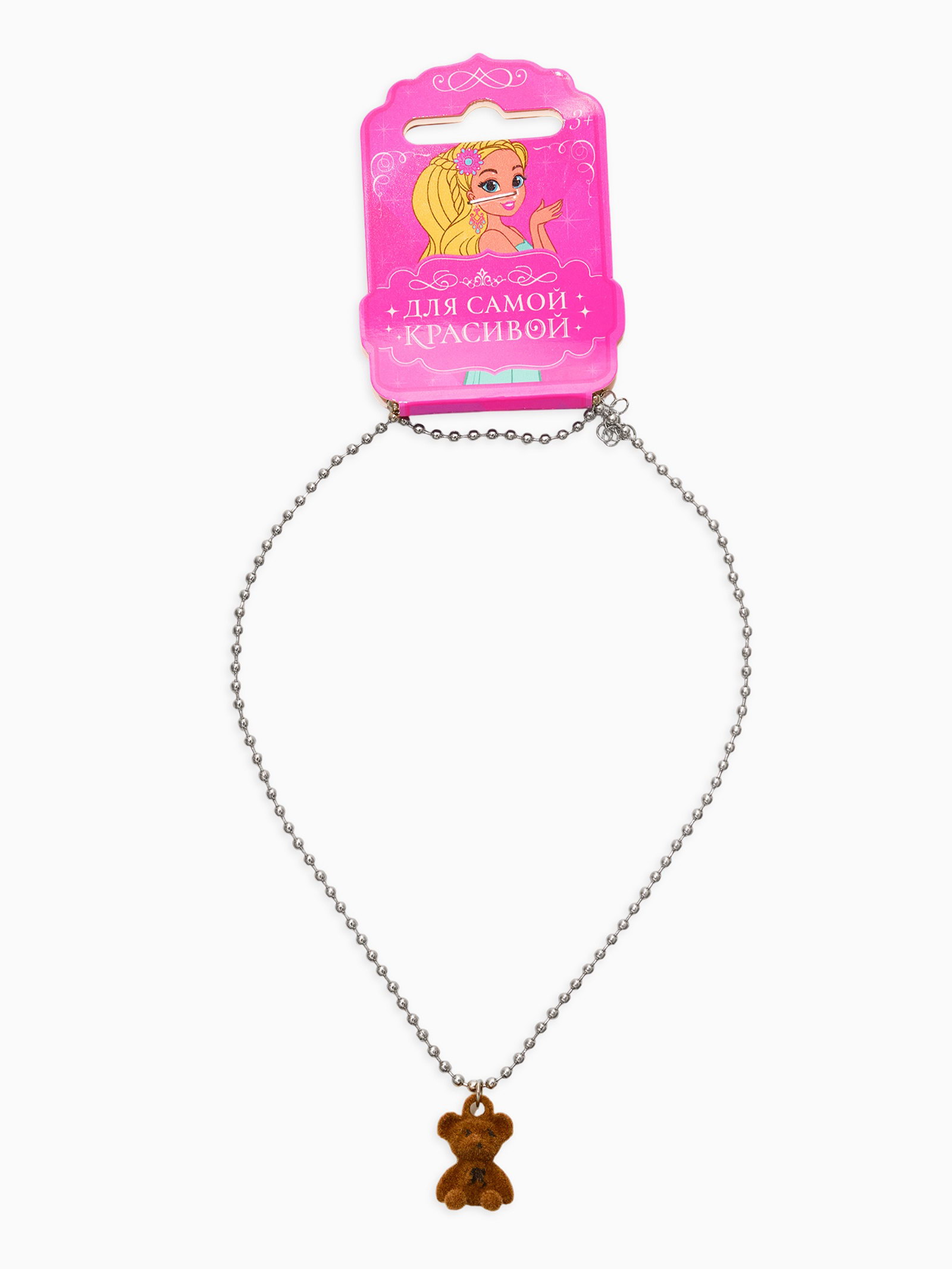 Кулон детский "Выбражулька. Мишка", 40 см, коричневый в серебре, 1.9x40x3 см., Выбражулька, Китай
