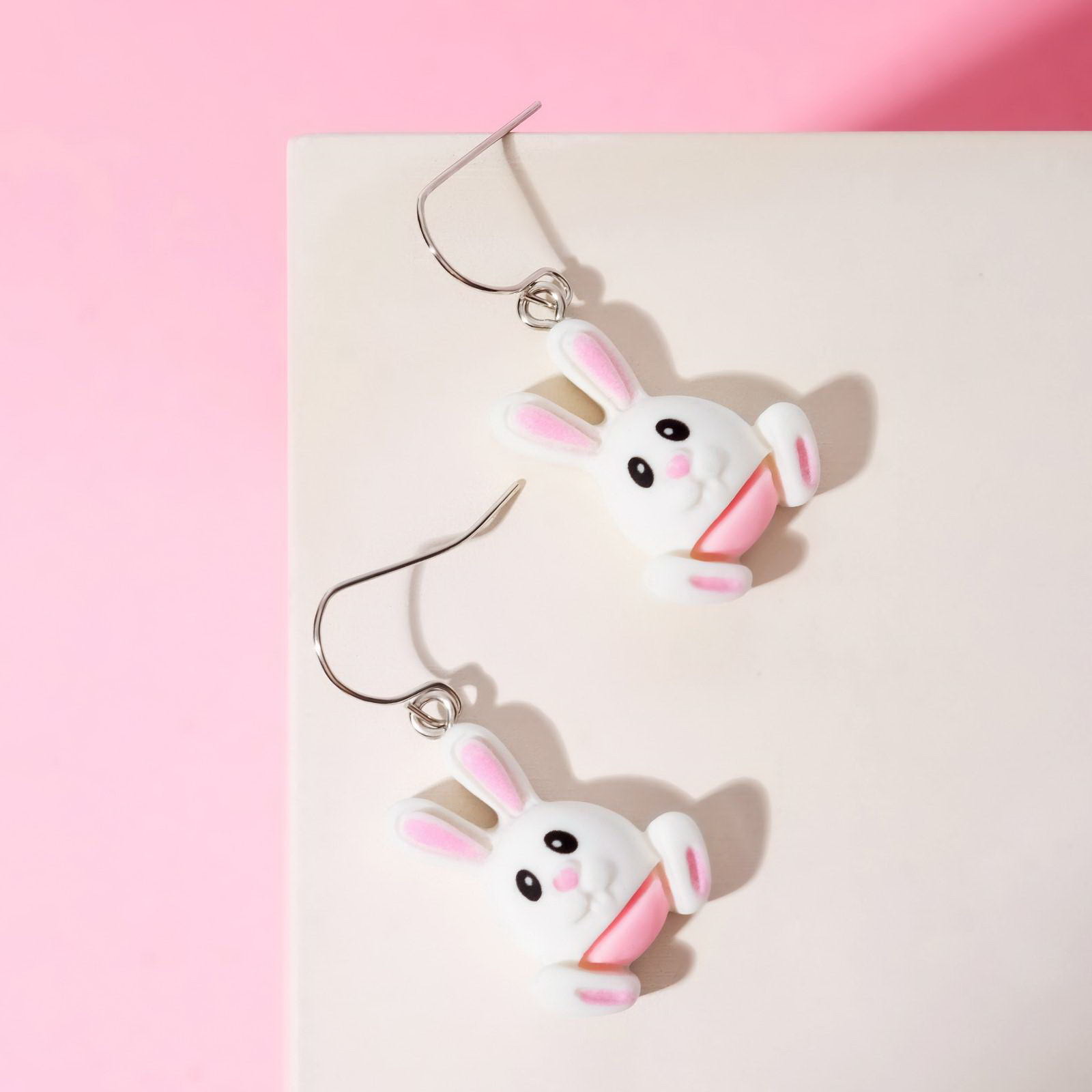 Серьги зайчики, цвет бело-розовый в серебре, 1.5x3x0.5 см., Выбражулька, Китай