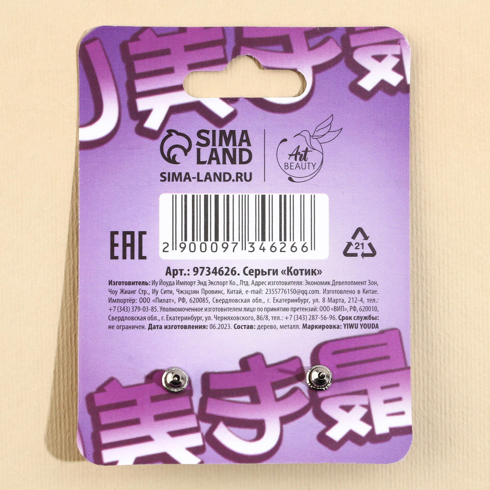 Серьги "Котик" гвоздики, 6x9 см, 1.5x0.5x2 см., Art beauty, Китай