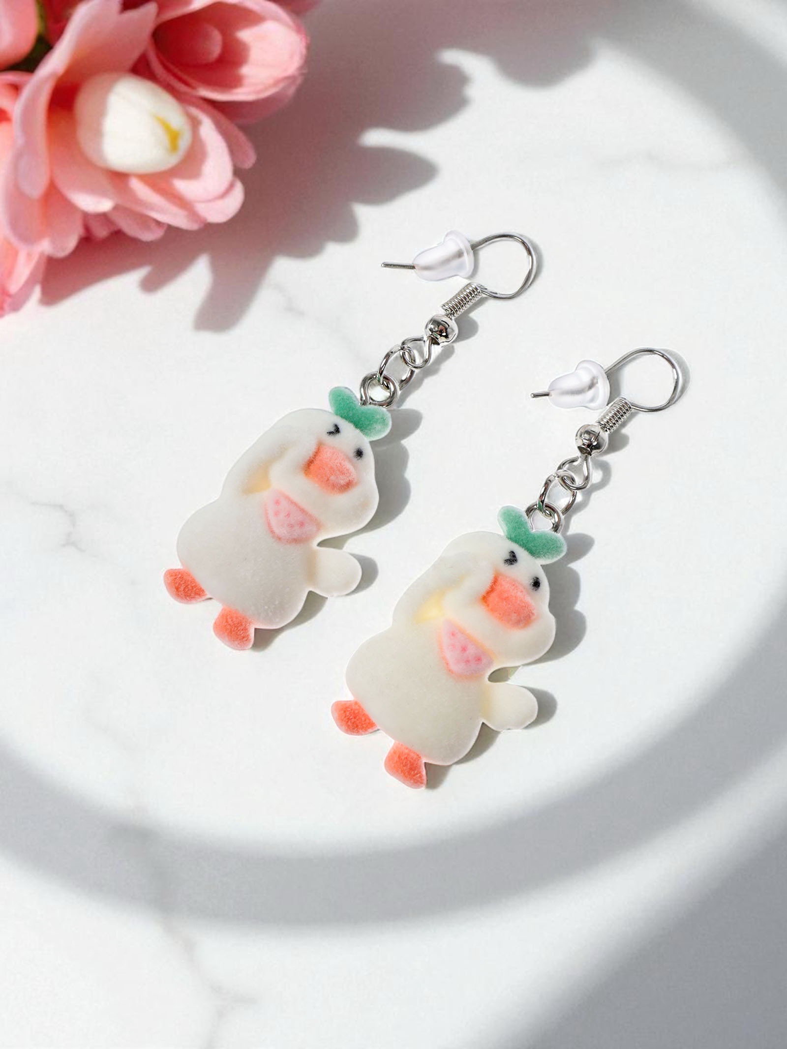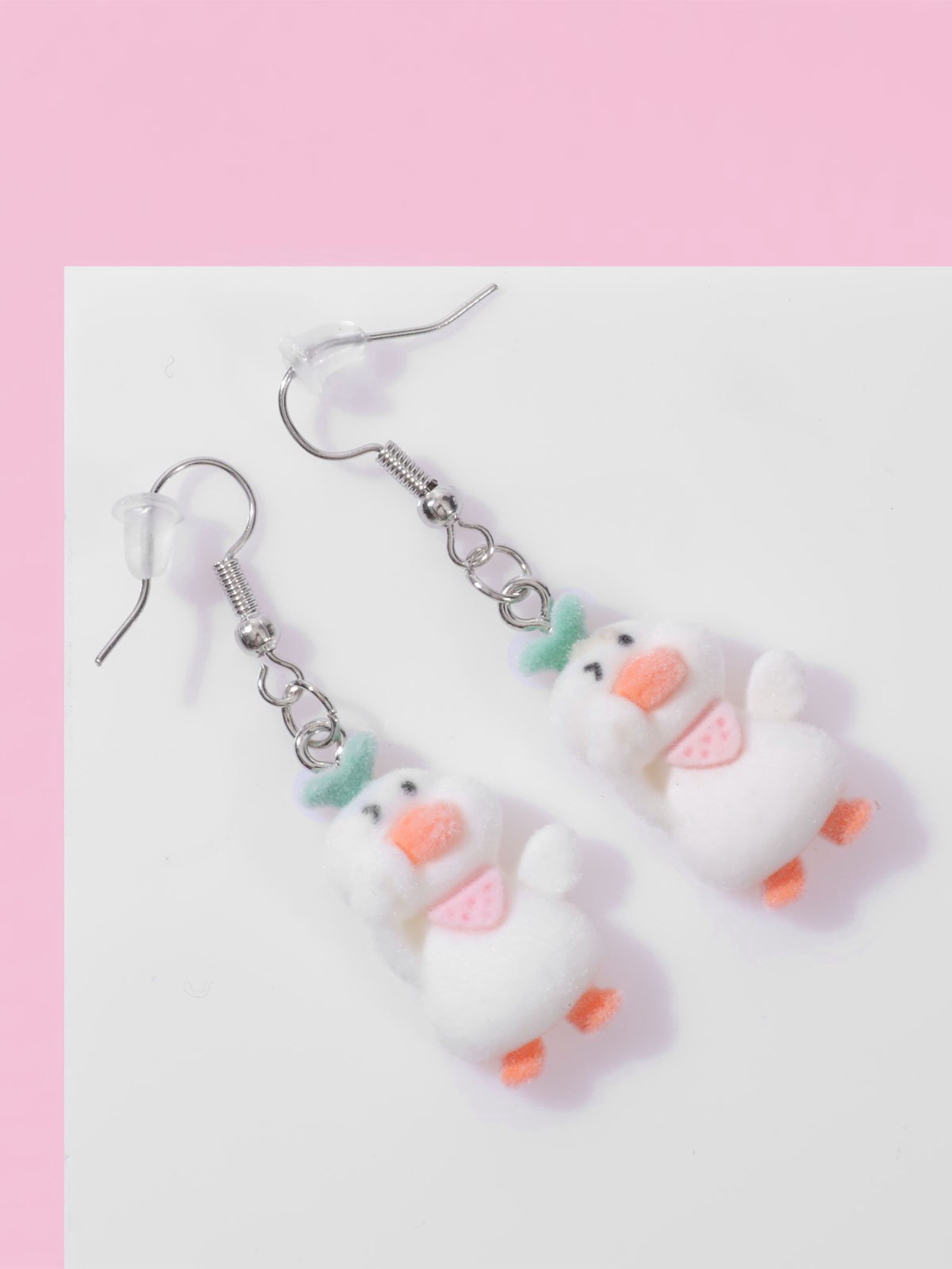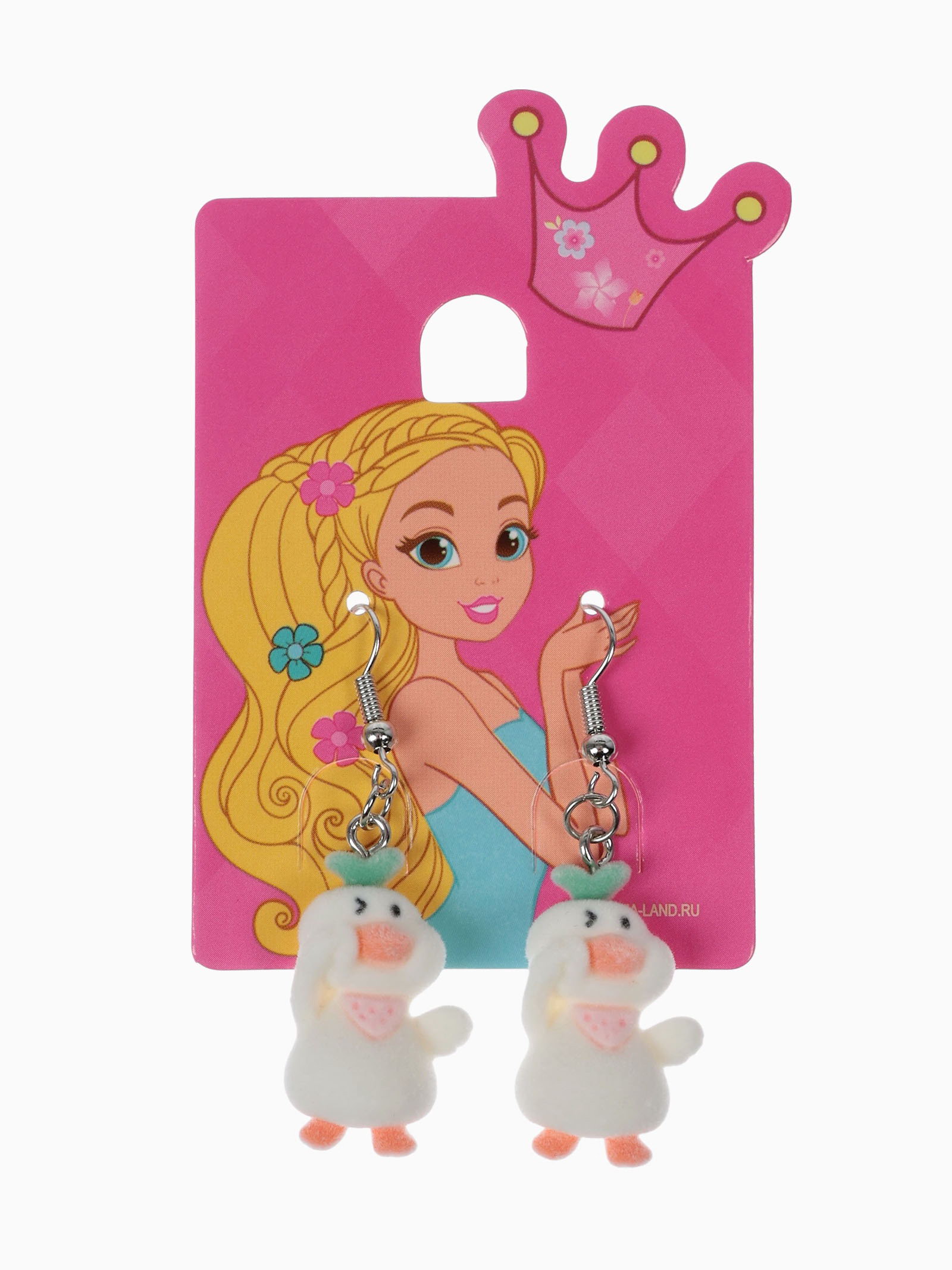 Серьги детские "Гусь", цветные, 1.3x2.5x0.5 см., Выбражулька, Китай