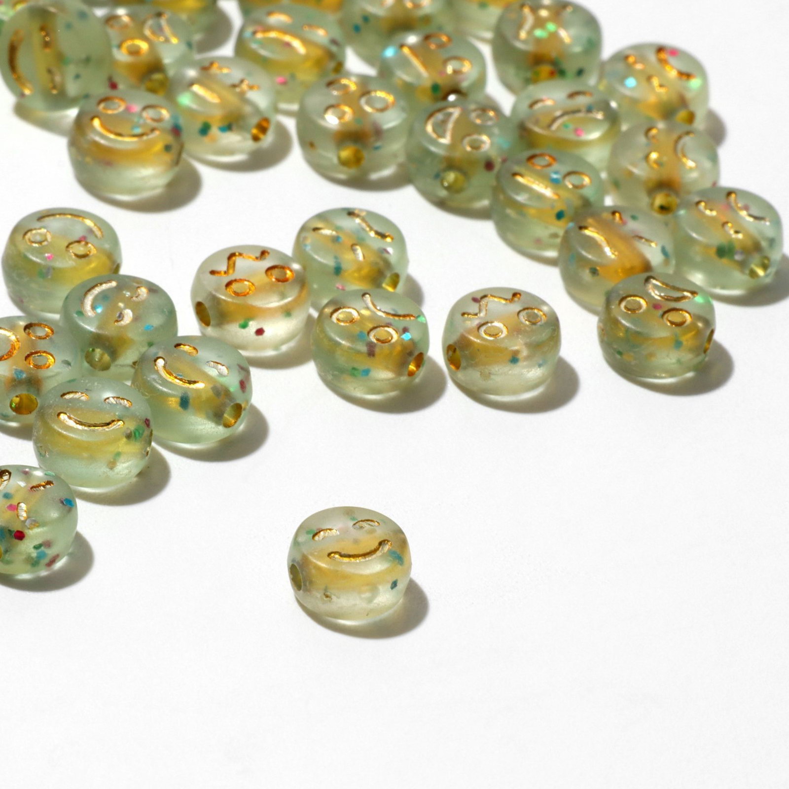 Бусины для творчества из акрила "Смайлы", МИКС, 7x4 мм, набор 10 г, цвет золотой, 0.7x0.7x0.4 см., QF, Китай