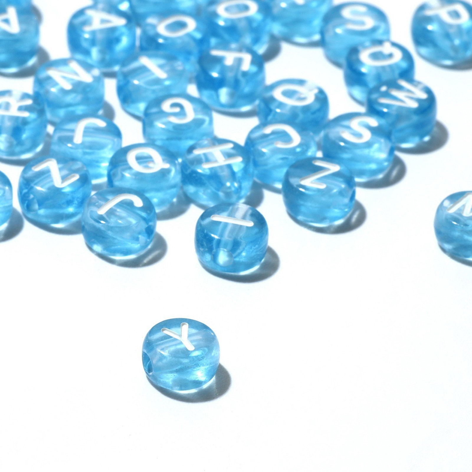 Бусины для творчества из акрила "Буквы английские", МИКС, 7x4 мм, набор 10 г, цвет прозрачно-голубой, 0.7x0.7x0.4 см., QF, Китай