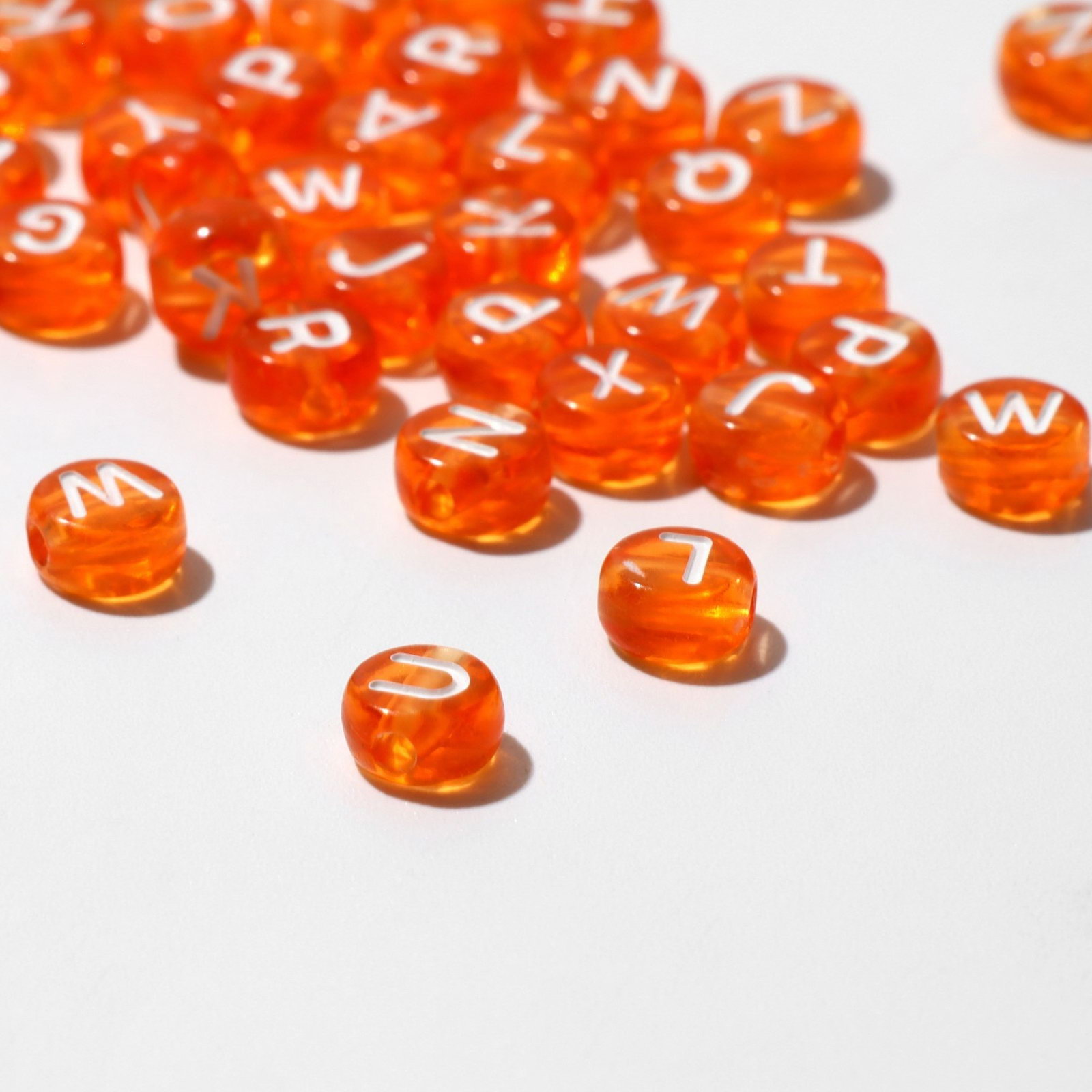 Бусины для творчества из акрила "Буквы английские", МИКС, 7x4 мм, набор 10 г, цвет прозрачно-оранжевый, 0.7x0.7x0.4 см., QF, Китай