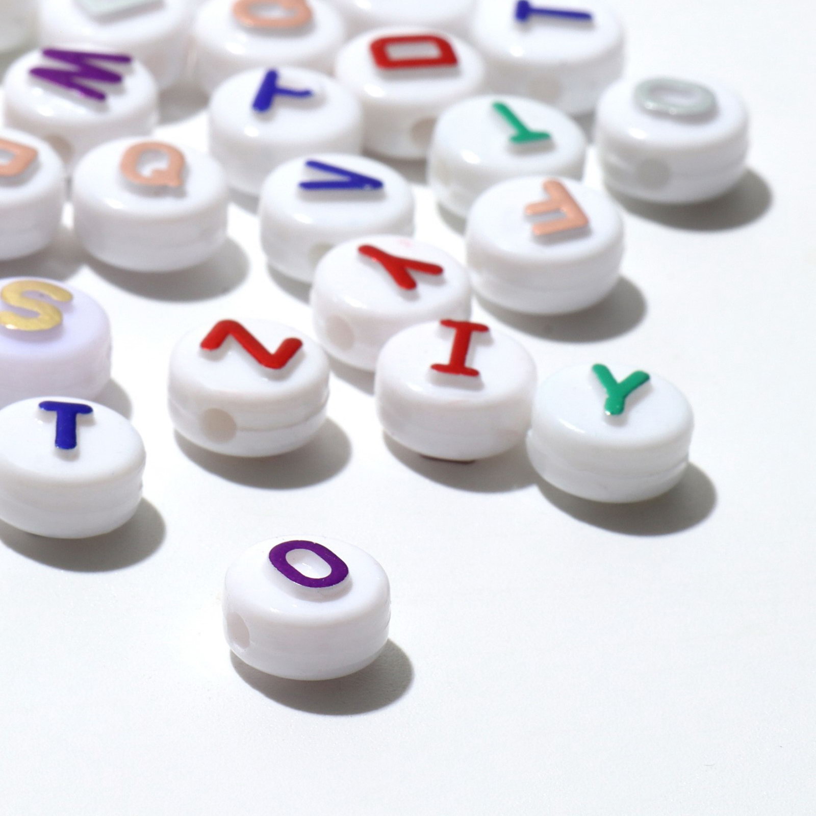 Бусины для творчества из акрила "Буквы английские", 10x6 мм, набор 10 г, цвет блестящий МИКС, 1x1x0.6 см., QF, Китай