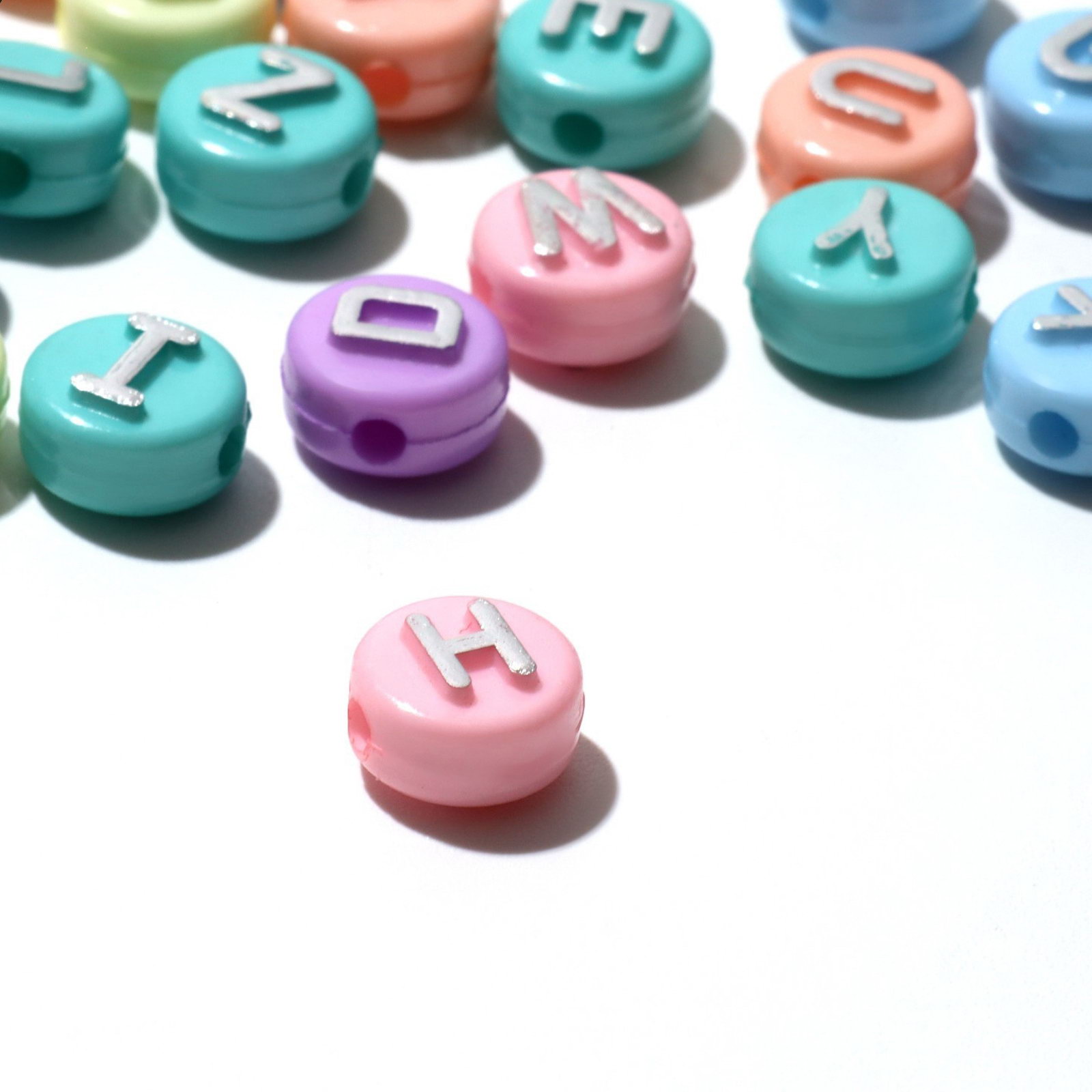 Бусины для творчества из акрила "Буквы английские", 10x6 мм, набор 10 г, цвет серебристый МИКС, 1x1x0.6 см., QF, Китай