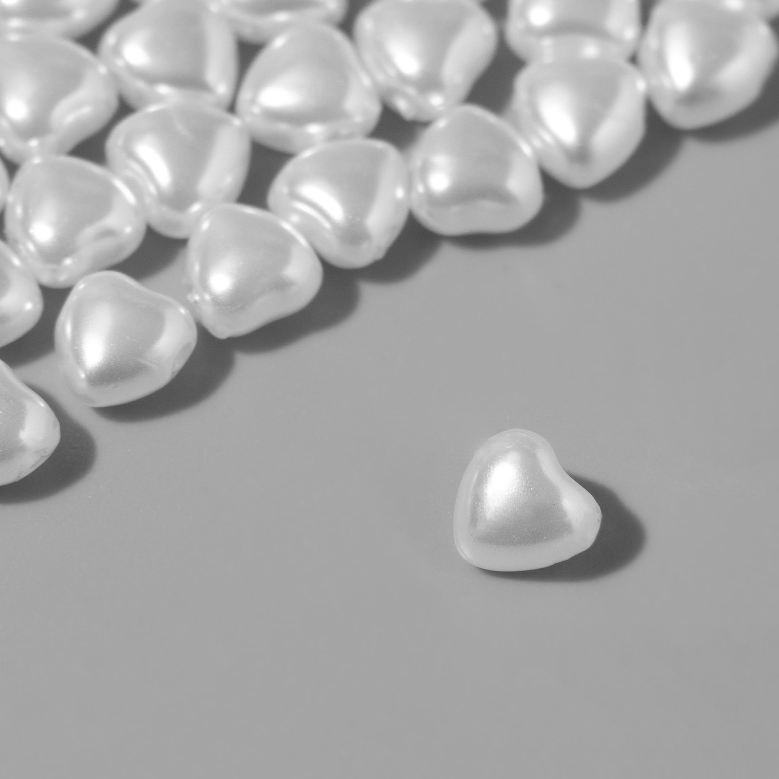 Бусины пластиковые на нити "Жемчуг", сердце 0.6x0.6x0.5 см, набор 180 шт, цвет белый, 0.6x126x0.5 см., QF, Китай