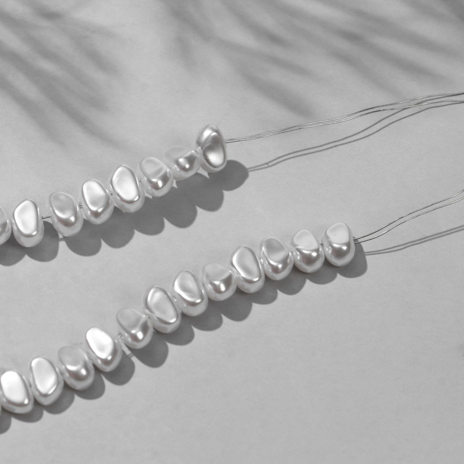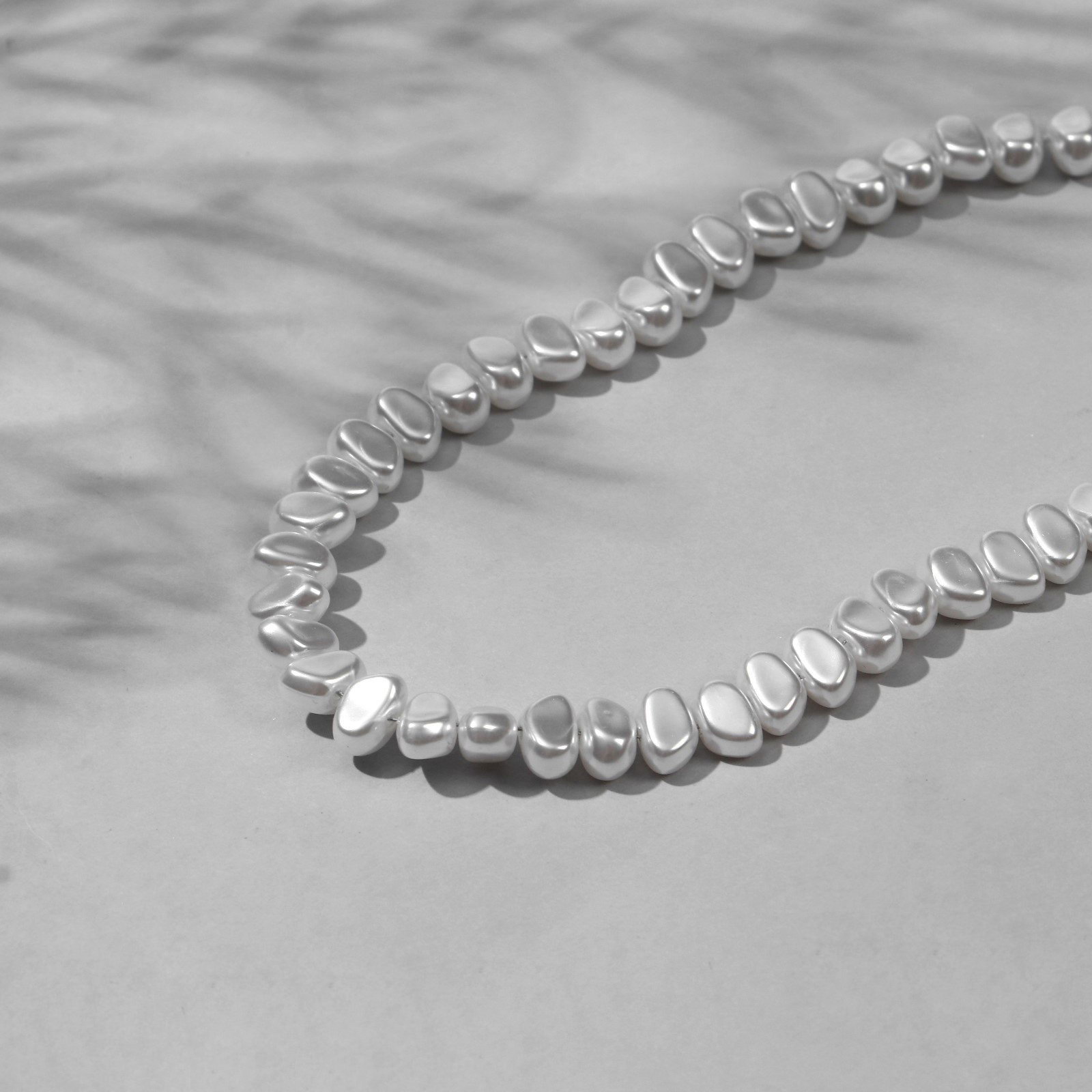 Бусины пластиковые на нити "Жемчуг", 0.9x0.6x0.4 см, набор 160 шт, цвет белый, 0.9x110x0.6 см., QF, Китай