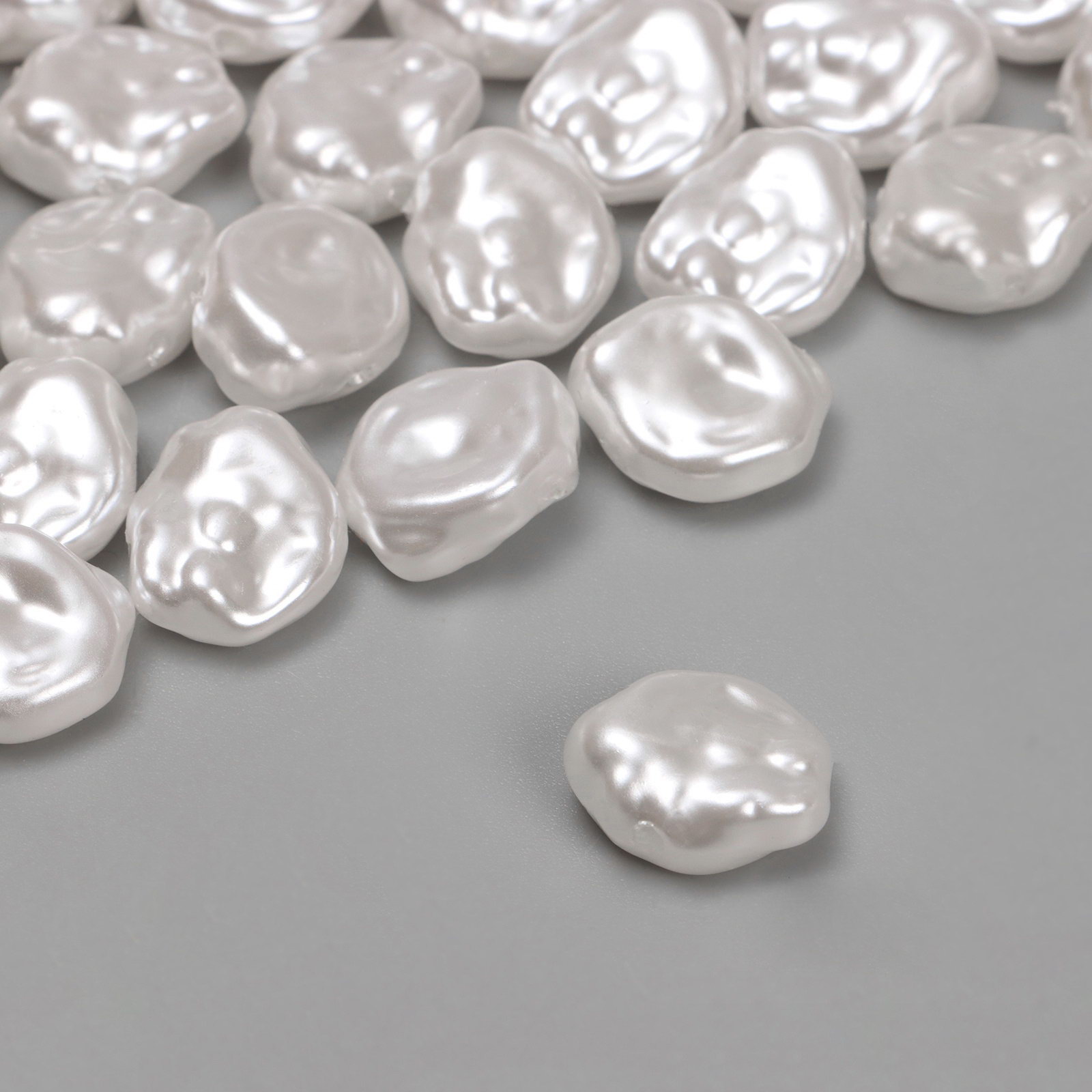 Бусины пластиковые на нити "Жемчуг", 1.2x1x0.5 см, набор 120 шт, цвет белый, 1x1.2x0.5 см., QF, Китай