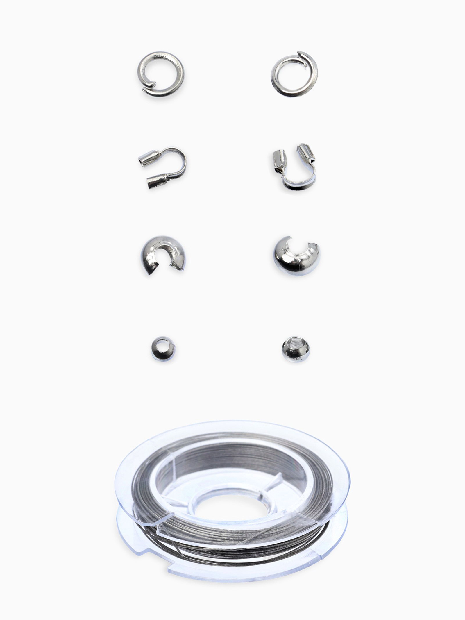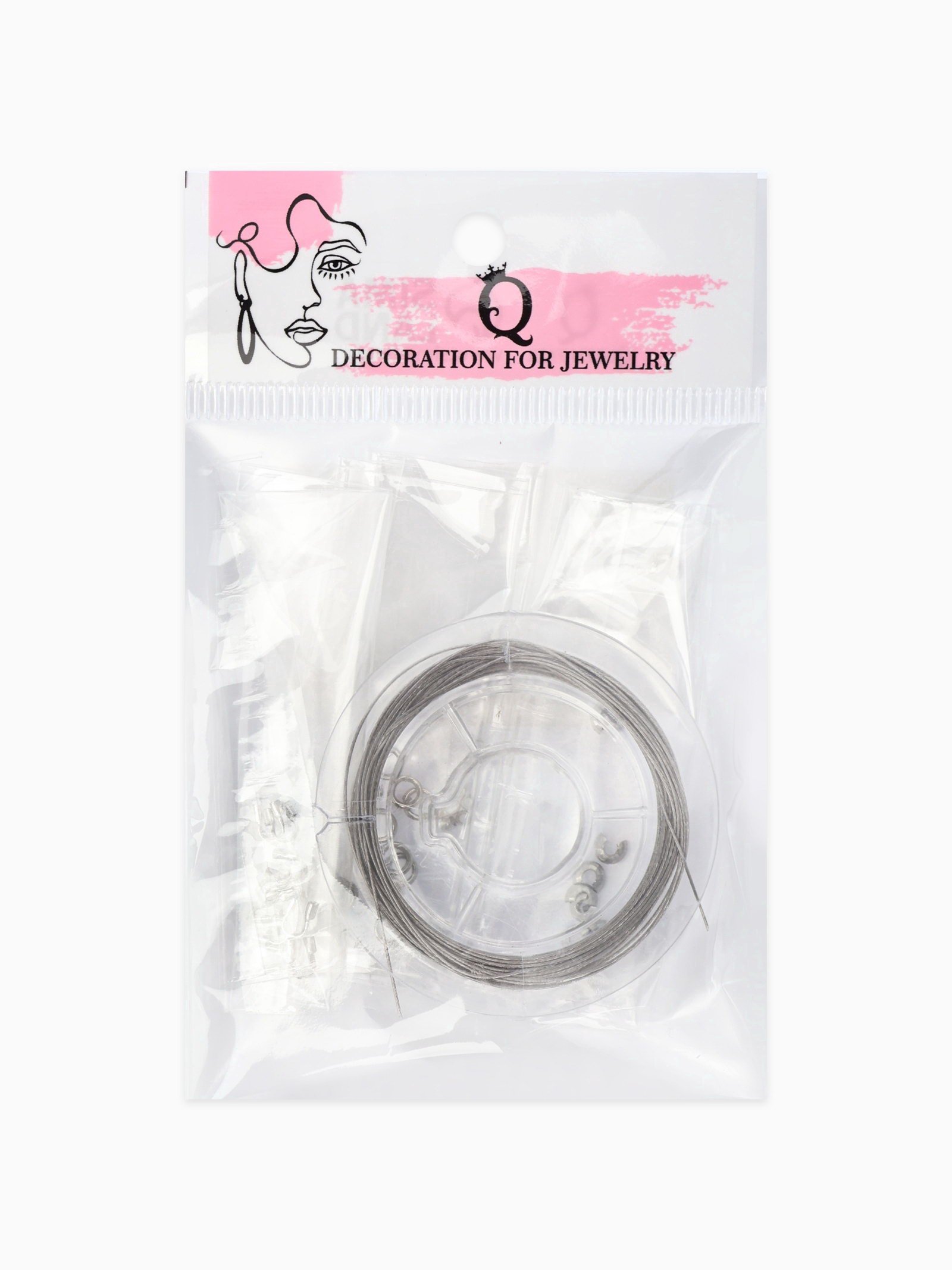 Набор для создания украшений "База", тросик, кримпы, шапочка, протектор, кольца, 61 предмет, цвет серебро, 7x7x0.5 см., QF, Китай