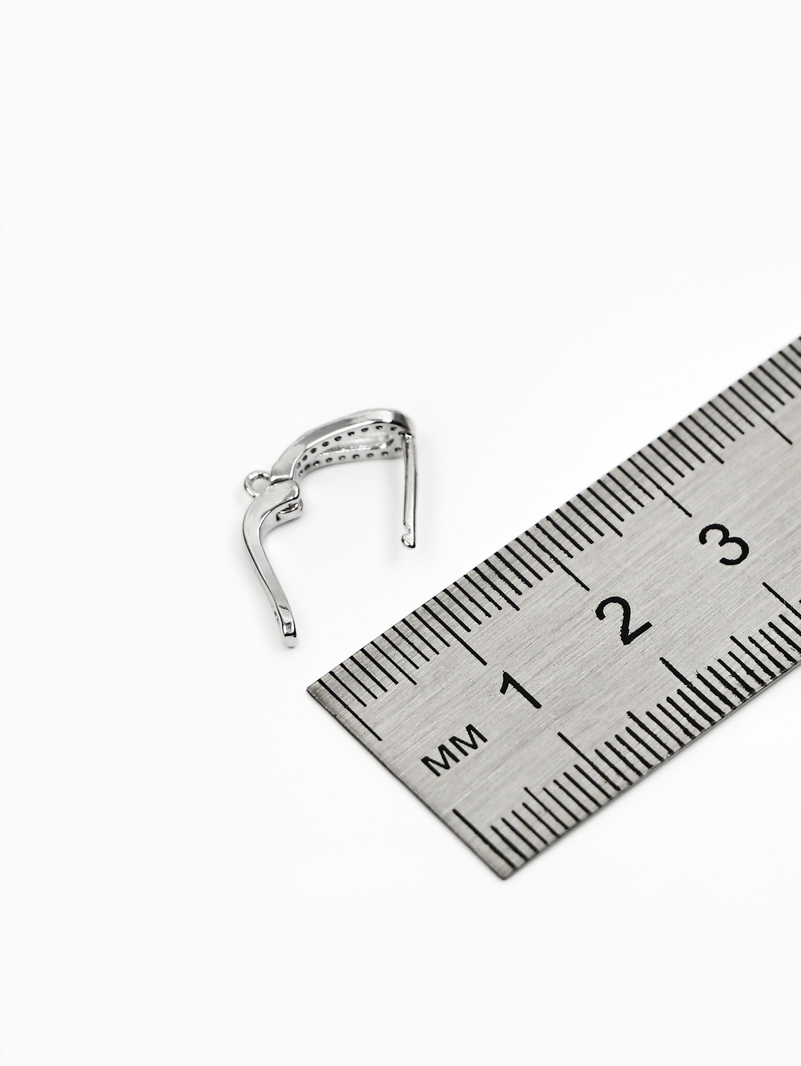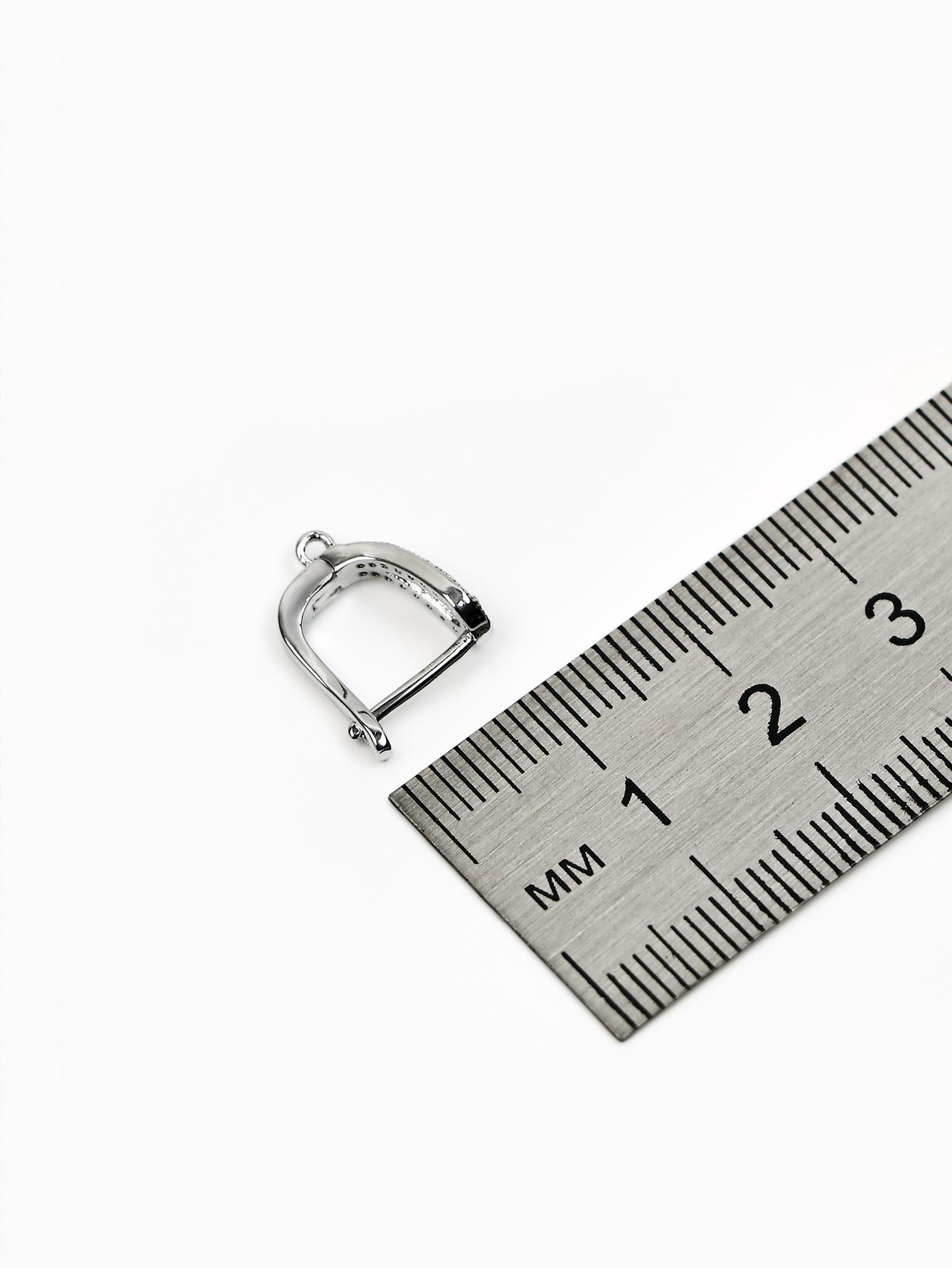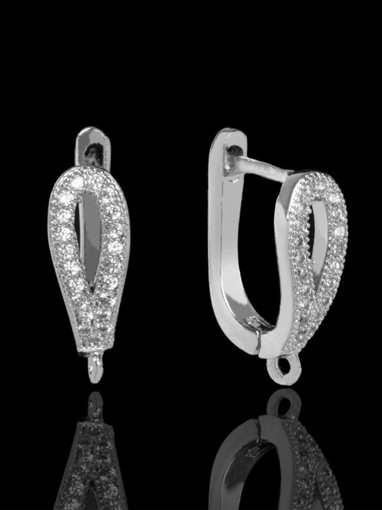 Швензы с английской застежкой с цирконом "Капля", белые в серебре, 1.2x1.3x0.2 см., QF, Китай